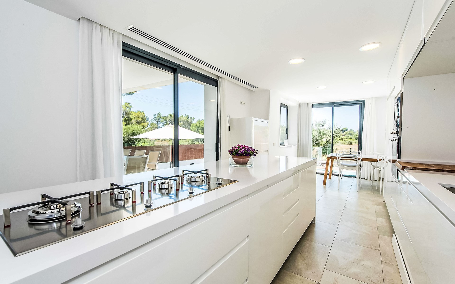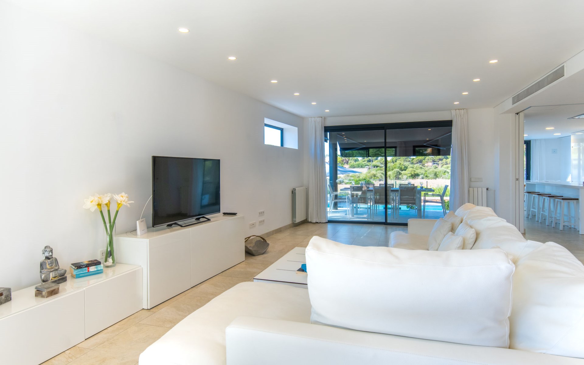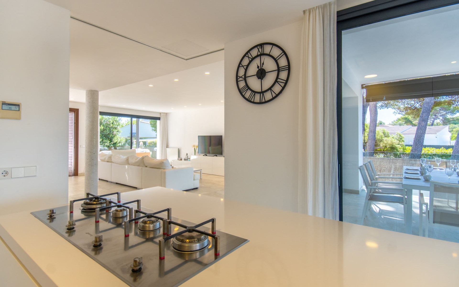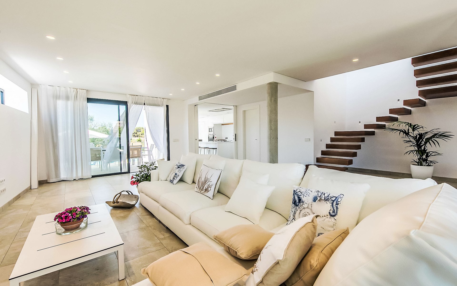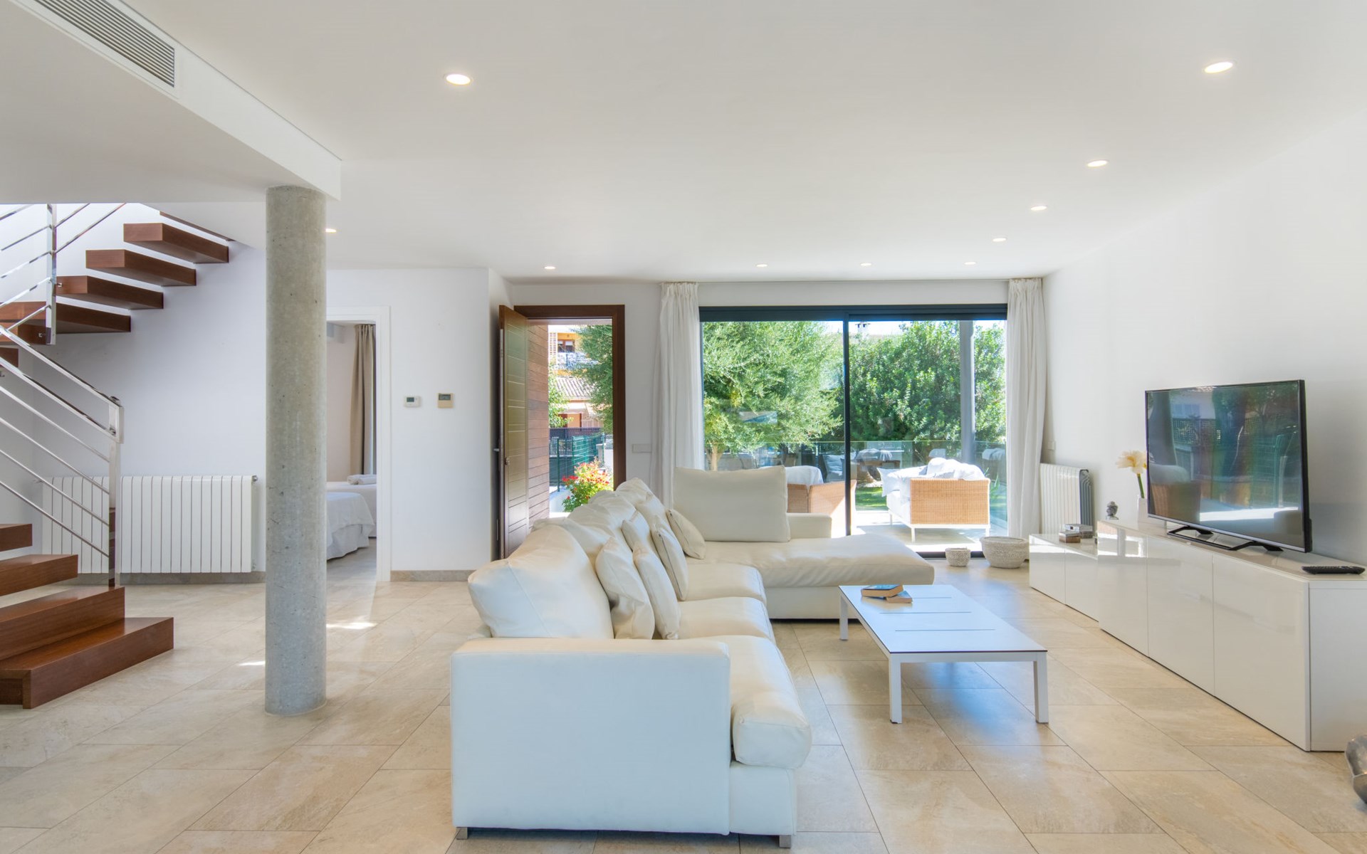 Can Picafort: Zeer groot, moderne, comfortabel huis "Marianne", van 2 verdiepingen, bouwjaar 2016. In de plaats, 250 m van het centrum van Son Baulo, rustige ligging villa wijk, 450 m van zee, 450 m van het strand. Voor alleengebruik: tuin met gazon, openluchtzwembad (8 x 4 m, seizoensgebonden beschikbaarheid: 01.Apr. - 31.Okt.) met zout-elektrolyse. Buitendouche, terras, tuinmeubelen, barbecue. In het huis: centrale verwarming, air-conditioning, wasmachine. Parkeerplaats bij het huis. Winkel 400 m, supermarkt 800 m, restaurant 400 m, bushalte 1.6 km, zandstrand 400 m. Golfterrein (18 holes) 6 km, manege 500 m, kinderspeelplaats 300 m. Attracties in de buurt: Playa y parque natural Son Real 600 m. Groepen jongeren uitsluitend op aanvraag.