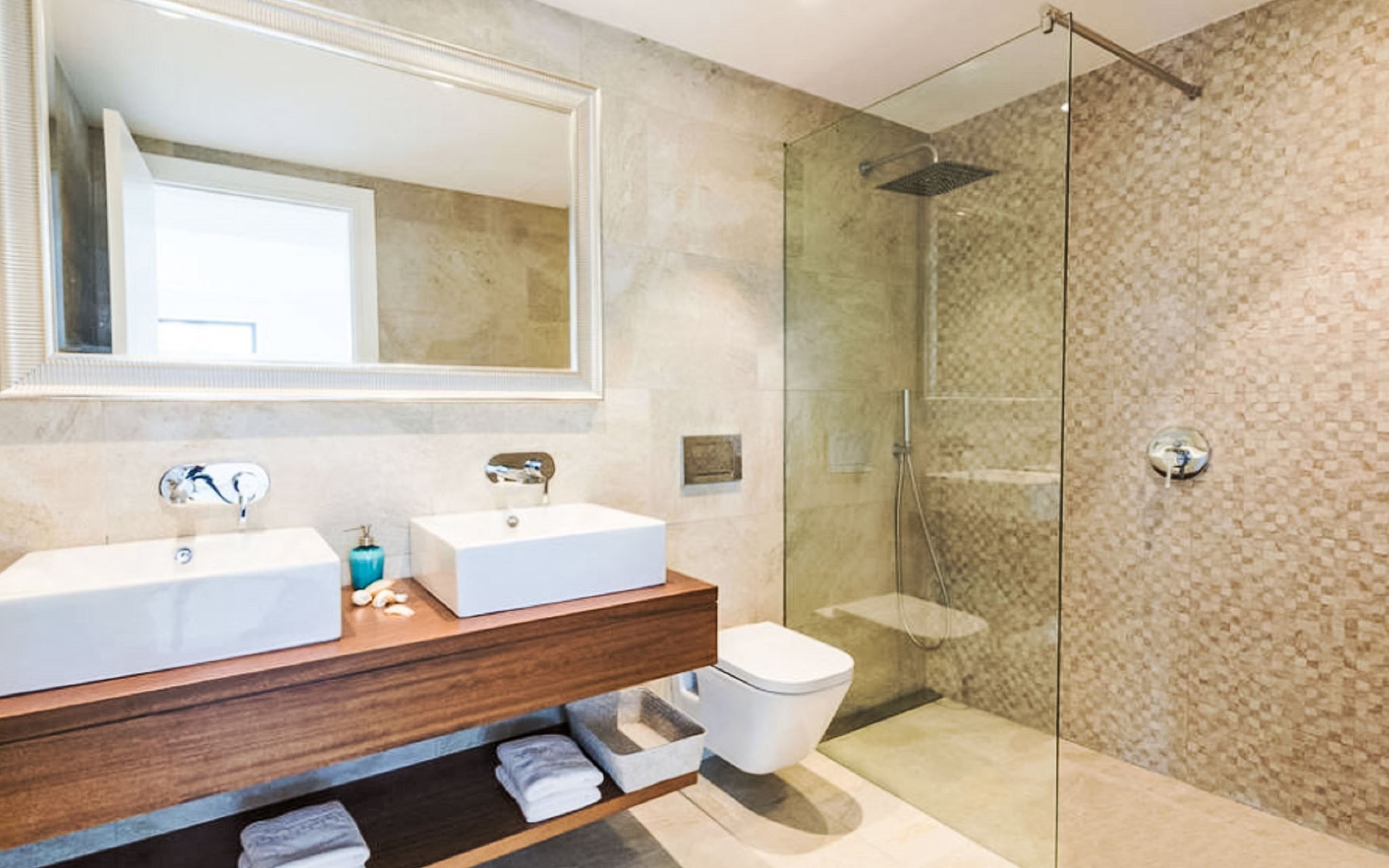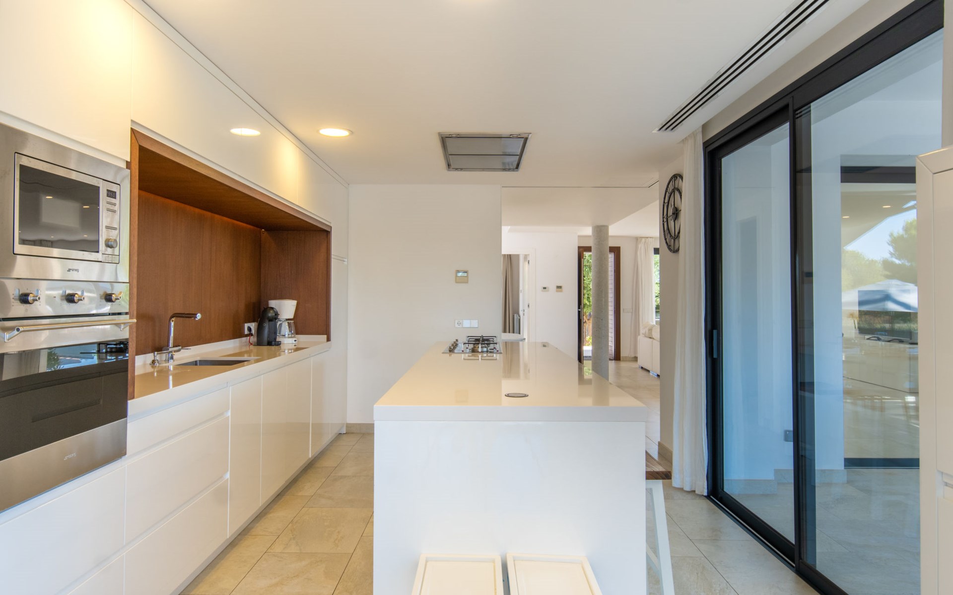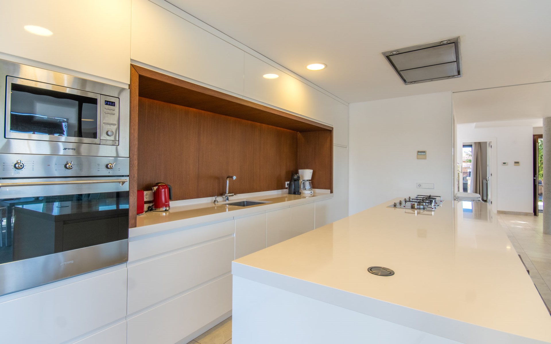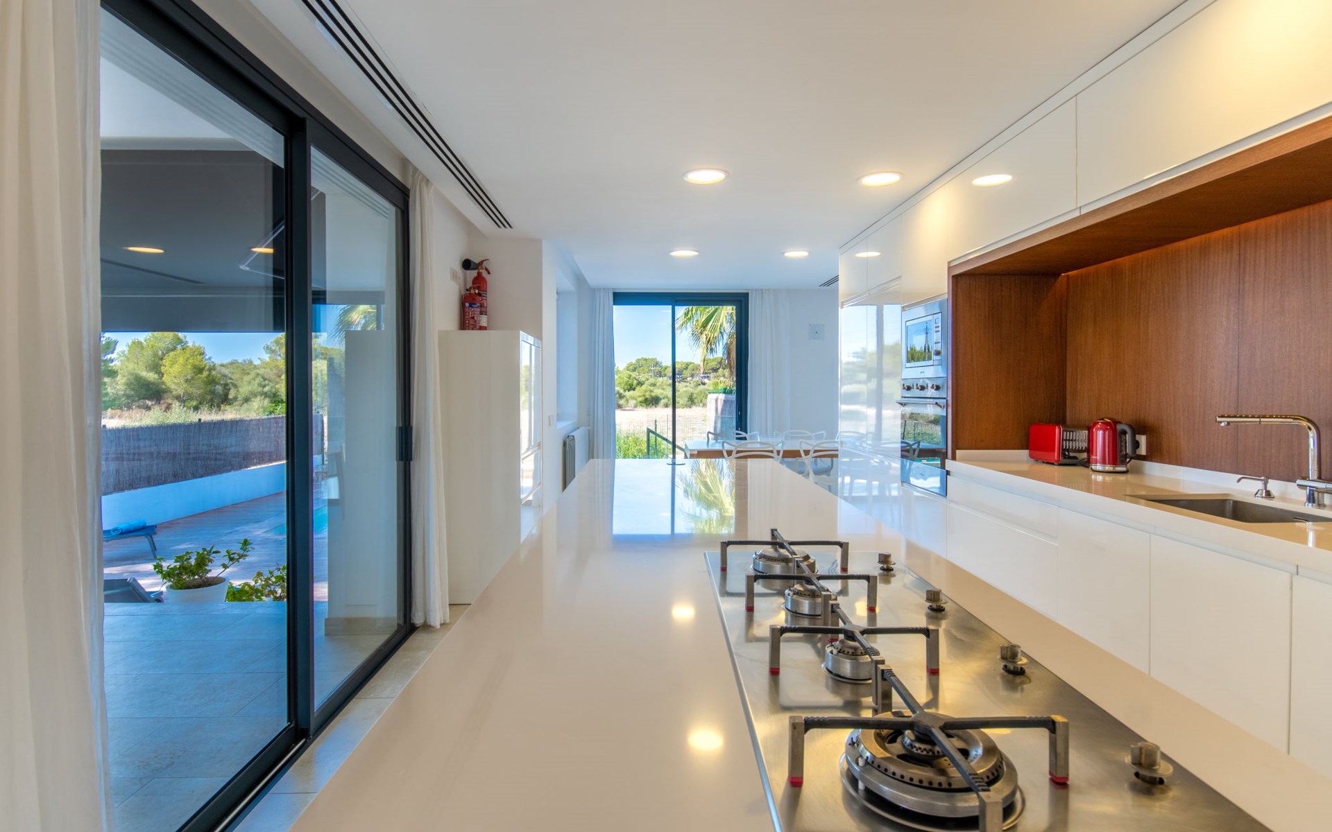 Can Picafort: Zeer groot, moderne, comfortabel huis "Marianne", van 2 verdiepingen, bouwjaar 2016. In de plaats, 250 m van het centrum van Son Baulo, rustige ligging villa wijk, 450 m van zee, 450 m van het strand. Voor alleengebruik: tuin met gazon, openluchtzwembad (8 x 4 m, seizoensgebonden beschikbaarheid: 01.Apr. - 31.Okt.) met zout-elektrolyse. Buitendouche, terras, tuinmeubelen, barbecue. In het huis: centrale verwarming, air-conditioning, wasmachine. Parkeerplaats bij het huis. Winkel 400 m, supermarkt 800 m, restaurant 400 m, bushalte 1.6 km, zandstrand 400 m. Golfterrein (18 holes) 6 km, manege 500 m, kinderspeelplaats 300 m. Attracties in de buurt: Playa y parque natural Son Real 600 m. Groepen jongeren uitsluitend op aanvraag.