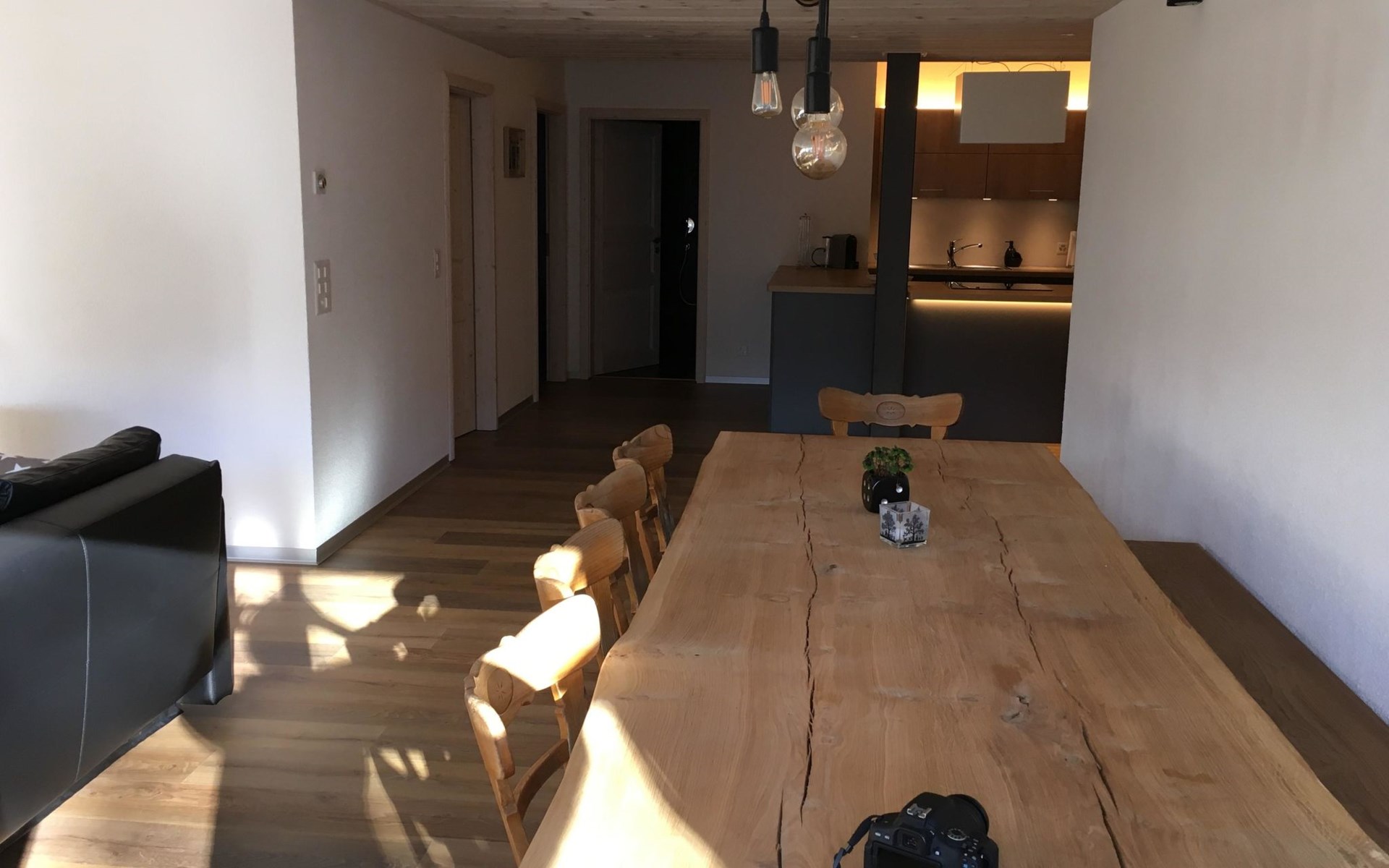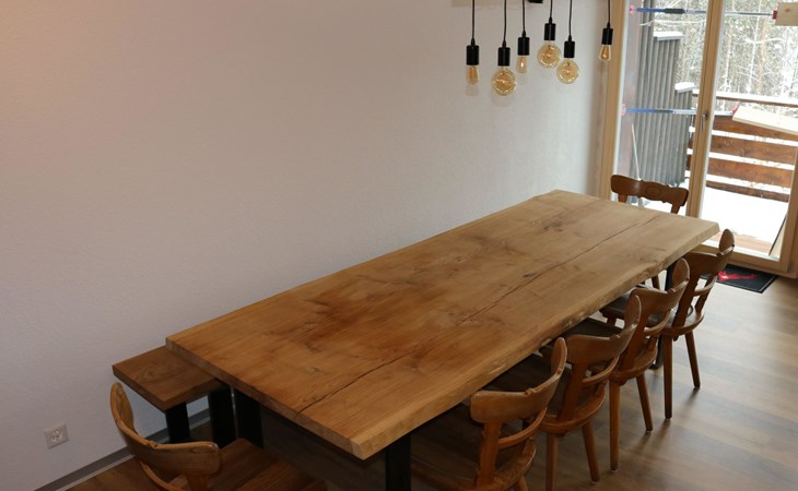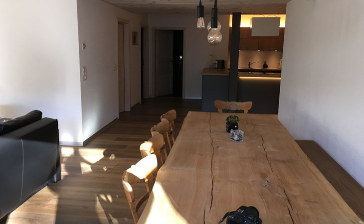Complete renovation of the apartment was carried out and completed in 2017. It has two bedrooms with a total of six beds. In addition, the apartment offers enough space for up to eight people. The sofa bed can be booked on request. The master bedroom has a double-bed and the other bedroom has two bunkbeds. The apartment has a spacious living room and dining area with open-plan kitchen. The dinner table has place for 12 people and the kitchen is equipped to accommodate the same amount. The kitchen is also equipped with raclette and fondue set, Nespresso coffee machine, egg-cooker, kettle, blender, toaster etc. The large bathroom has a bath, walk-in shower, toilet, plenty of storage space and a towel warmer.There is unheated indoor play area available for children. The apartment is on the ground floor and easily accessible. The parking space is in front of the door and the storage room right next to the front door. Public transport included in the Simmental and Saanenland with the SIMMENTAL CARD: Overnight guests in the Lenk-Simmental holiday region travel free of charge on public transport for excursions with a valid guest card.
