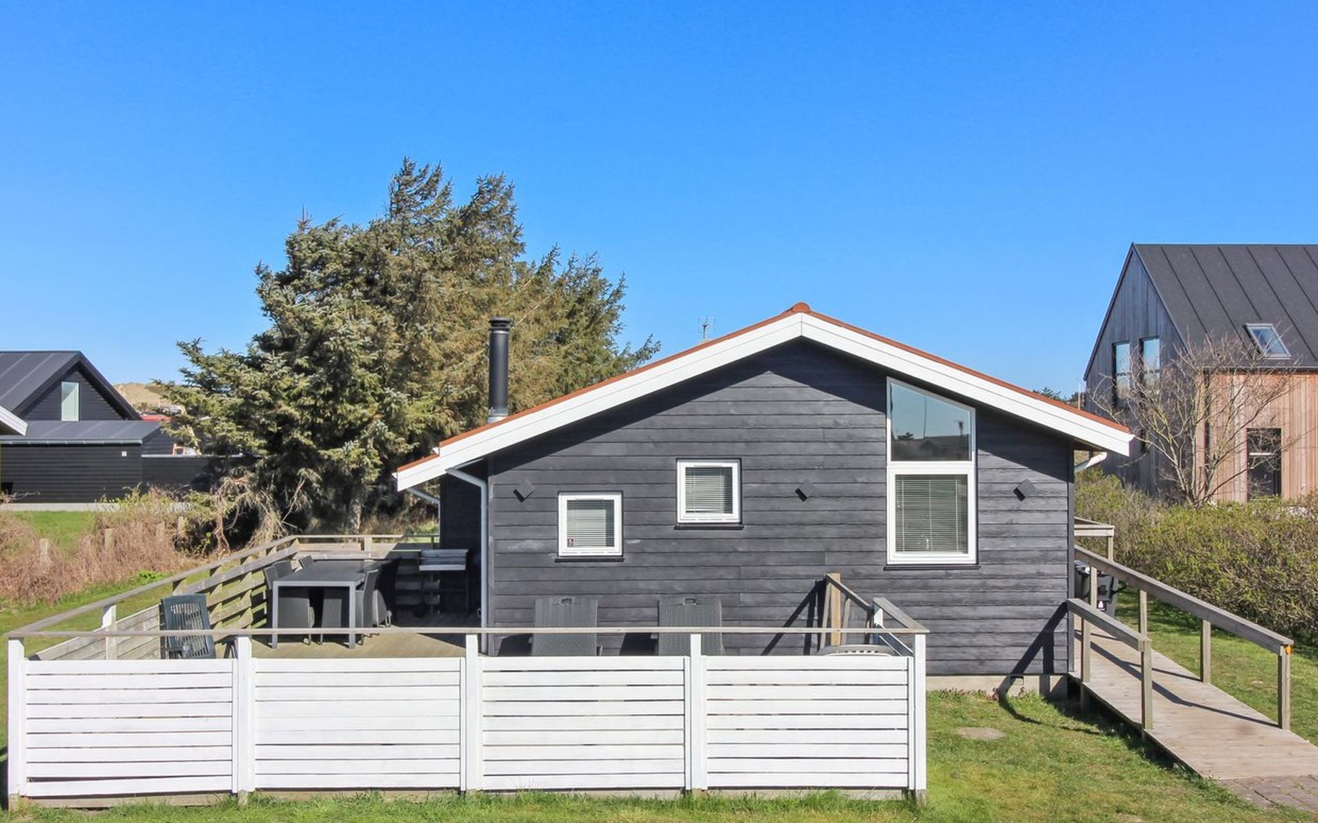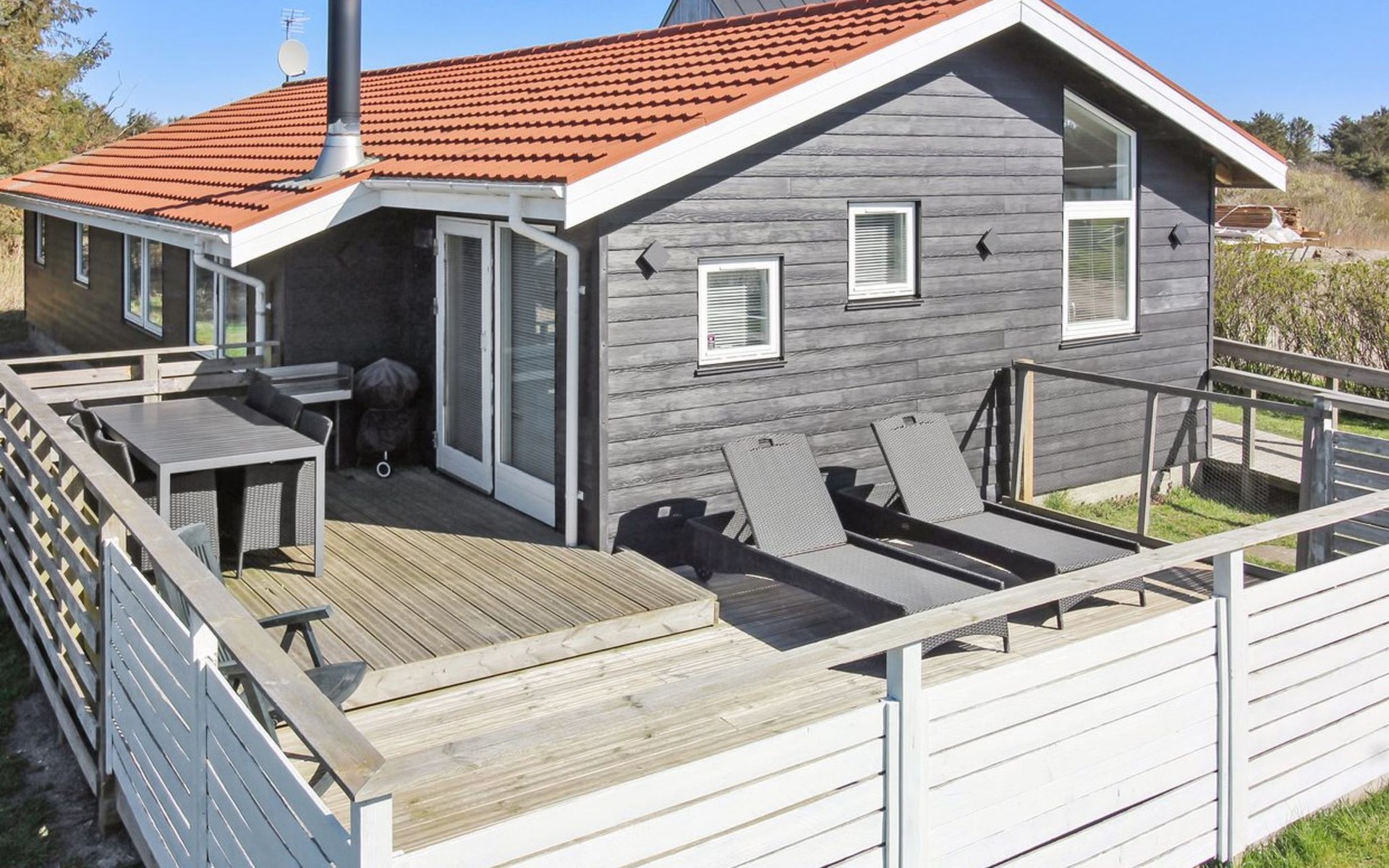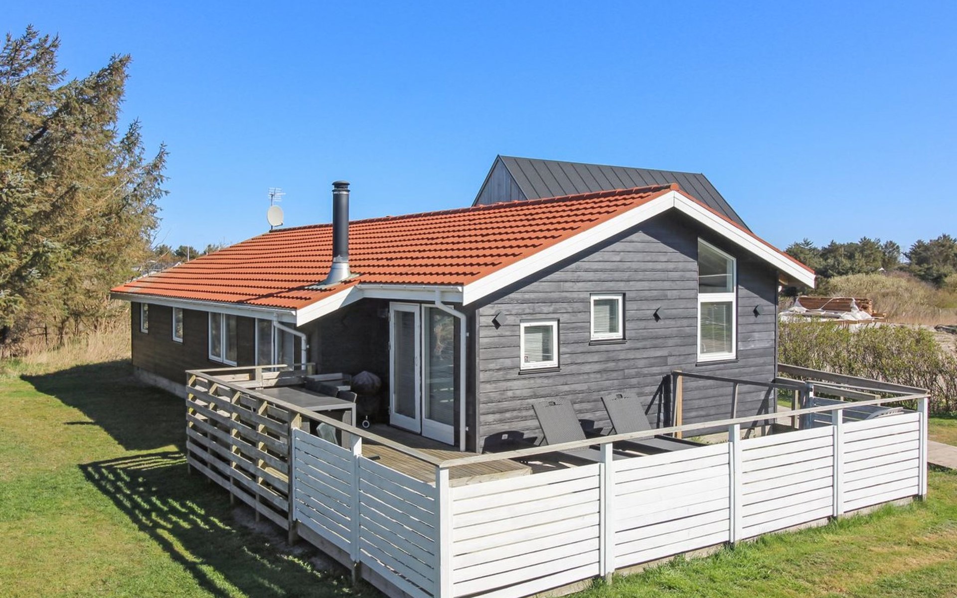 Eengezinswoning, bouwjaar 2001. 450 m van zee. Voor alleengebruik: wild terrein 1.150 m2. Terras (35 m2). In het huis: sauna, wasmachine, droger. Parkeerplaats bij het huis. Levensmiddelenwinkel 400 m. De eigenaar accepteert geen jeugdgroepen.