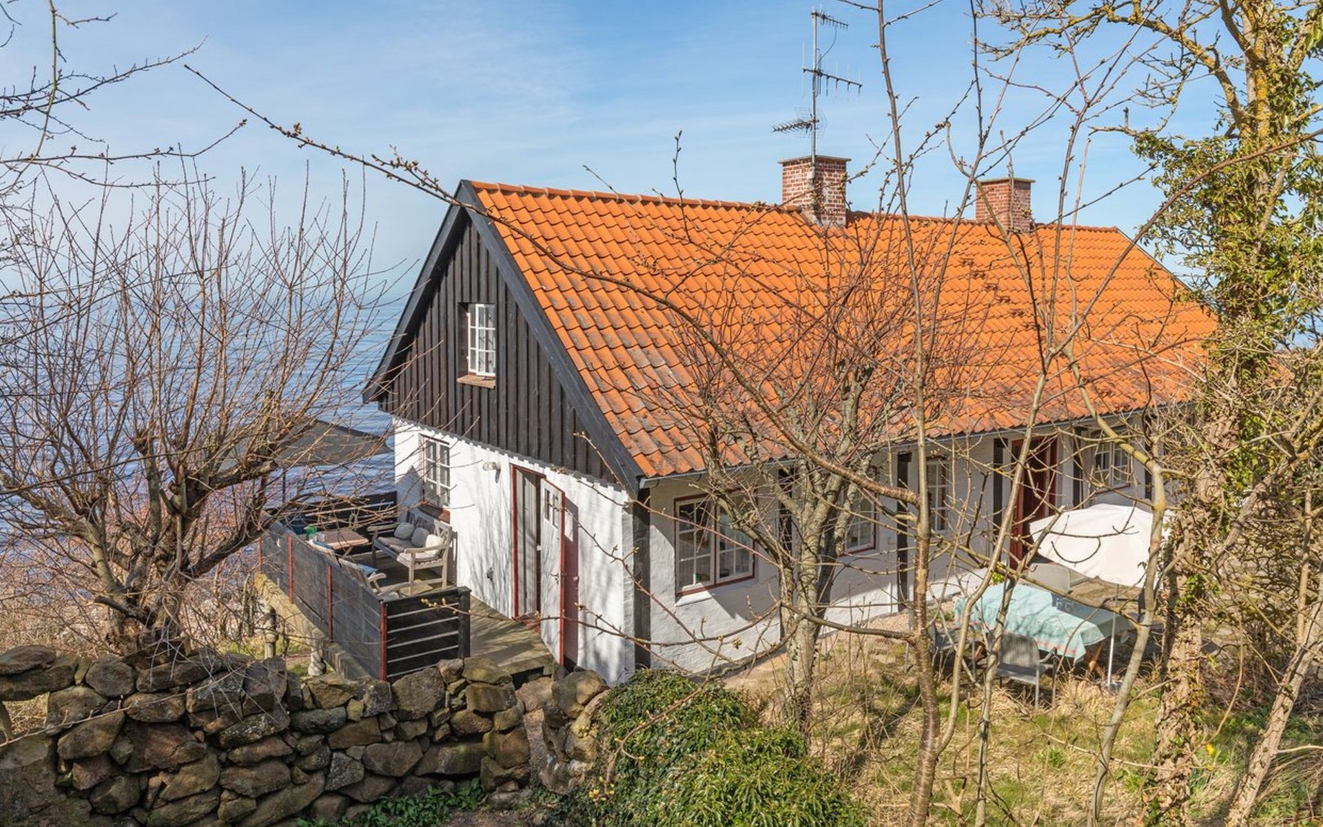 Eengezinswoning, bouwjaar 1827. 15 m van zee. Voor alleengebruik: wild terrein 1.662 m2. Barbecue. In het huis: sauna, wasmachine. Parkeerplaats bij het huis. Levensmiddelenwinkel 5 km. Golfterrein 10 km. De eigenaar accepteert geen jeugdgroepen.