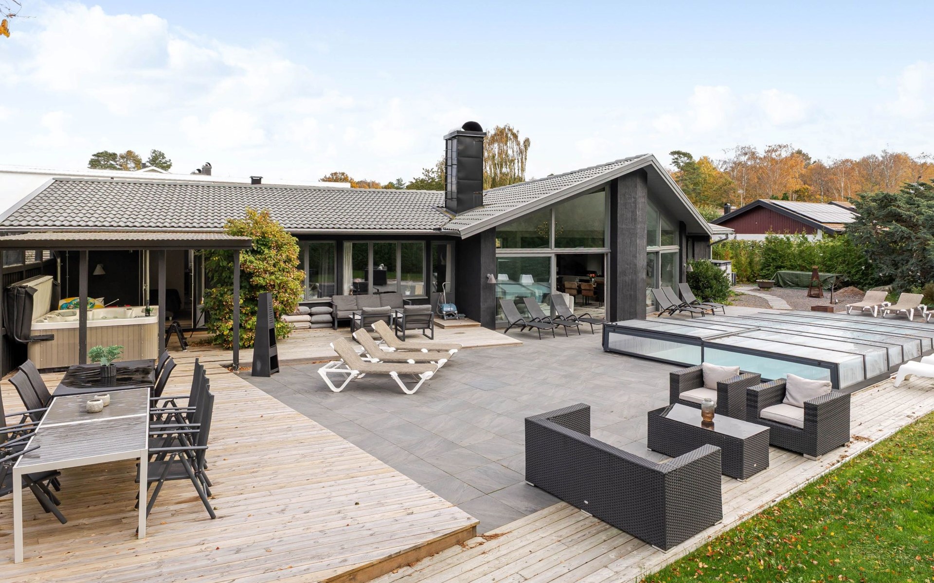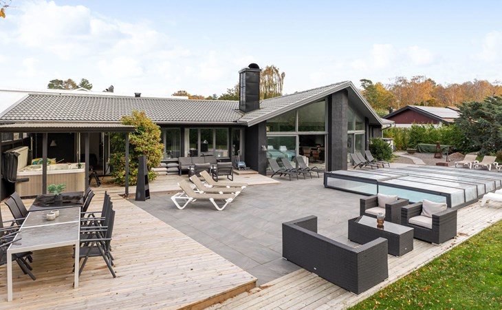 Groot, moderne, mooi villa "Frösakull Paradiset". 10 km van het centrum van Halmstad, 101 km van het centrum van Helsingborg, 800 m van zee. Voor alleengebruik: wild terrein, mooie, verzorgde tuin op verschillende niveaus bloemen en bomen, openluchtzwembad hoekig, verwarmd (6 x 4 m, seizoensgebonden beschikbaarheid: 30.Mei. - 30.Sep.). Hot tub, parkeerplaats (voor 2 auto's) bij het huis. Winkel 1 km, levensmiddelenwinkel 1 km, supermarkt 1 km, winkelcentrum 5 km, restaurant 1 km, bar 1 km, bakkerij 1 km, bushalte 100 m, treinstation "Halmstad Central Station" 10 km, veerboot "Helsingborg" 101 km. Golfterrein (36 holes) 6 km. Attracties in de buurt: Tylösand 1 km, Ringenäs Golf Club 500 m, Grötvik 1.4 km, Halmstad City 8 km, Hallarna Shopping Center 18 km.