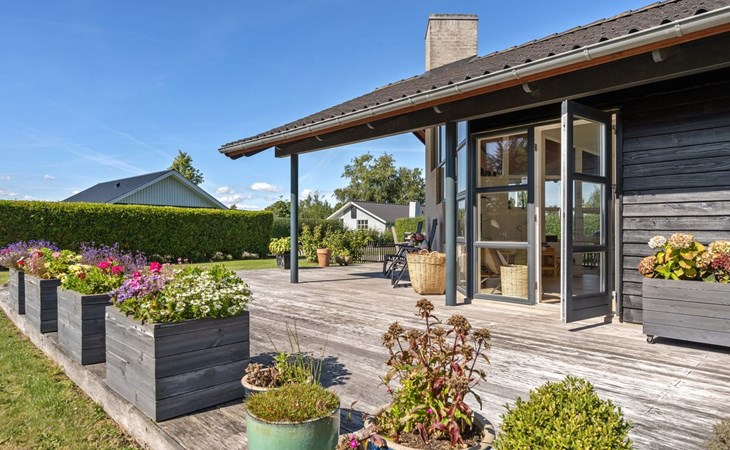 Eengezinswoning, bouwjaar 2007. 350 m van zee. Voor alleengebruik: terrein 823 m2, verzorgde tuin. Barbecue. In het huis: sauna, trampoline, wasmachine, droger. Parkeerplaats bij het huis. Levensmiddelenwinkel 1.2 km. Golfterrein 15.8 km. De eigenaar accepteert geen jeugdgroepen.