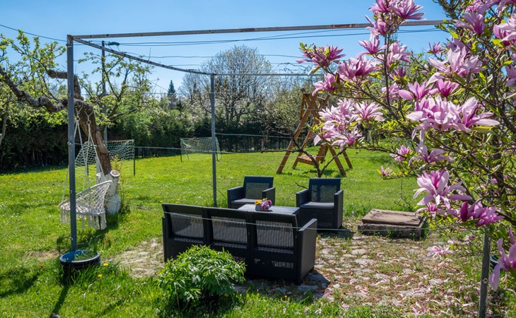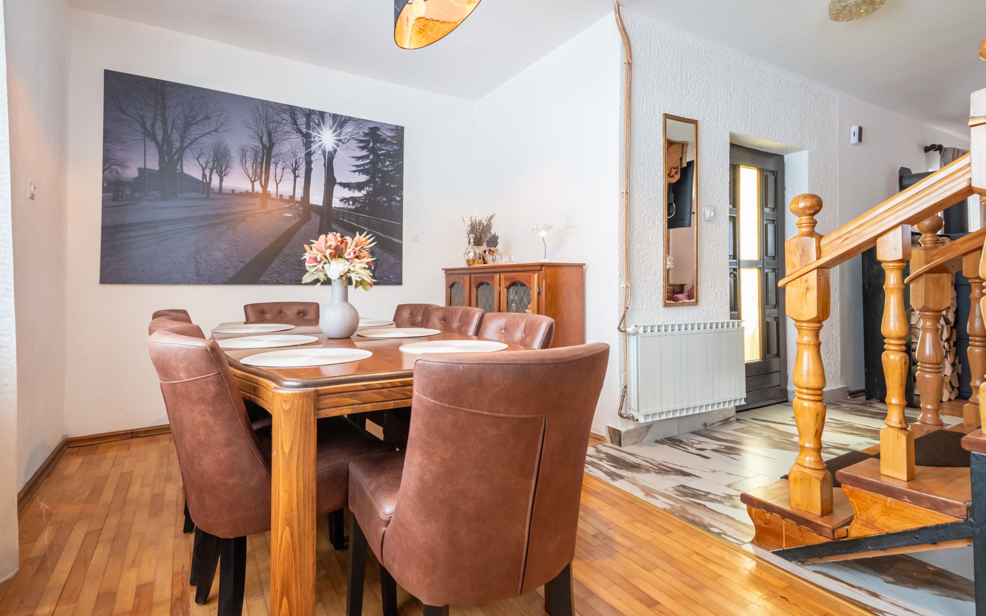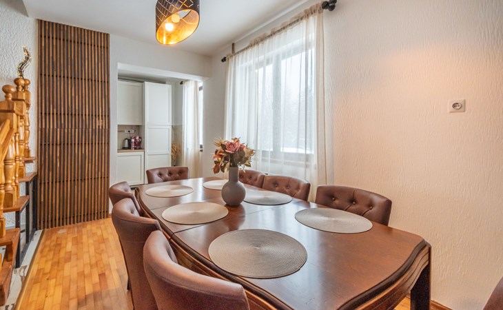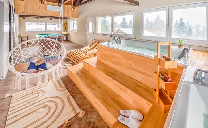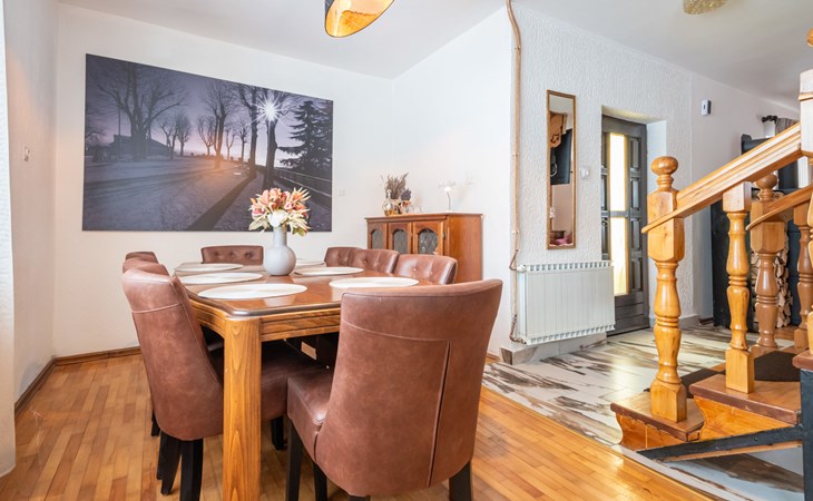 Parg 5 km van Čabar: Comfortabele eengezinswoning "Relax & Play", van 2 verdiepingen, gerenoveerd in 2023, omgeven door bomen en weiden. 43 km van het centrum van Delnice, 73 km van het centrum van Rijeka, 73 km van het centrum van Ljubljana, geïsoleerde, rustige, verhoogde ligging, 500 m van de bosrand, 5.2 km van de rivier, aan een doodlopende weg, te midden van groen. Voor alleengebruik: terrein 3.000 m2, mooie, verzorgde tuin 2.000 m2 (omheind) met bloemen en bomen, weide 600 m2 (omheind), overdekt zwembad hoekig, verwarmd, geen inkijk (8 x 3 m, 140 cm diepte, seizoensgebonden beschikbaarheid: 01.Jan. - 31.Dec.). WC bij het zwembad, patio, terras, tuinmeubelen, stookplaats, grill. In het huis: internetaansluiting, sauna, hot tub (alles incl.), ontspanningsruimte, biljart, speelkamer, tafelvoetbal, centrale verwarming, wasmachine, droger, verwarming alleen beschikbaar van 01.Okt. - 15.Mei.. Parkeerplaats (voor 3 auto's) bij het huis op het terrein. Winkel 3.8 km, supermarkt 5 km, restaurant 13 km, bakkerij 5 km, bushalte 4.1 km. Wandelroutes 200 m vanaf het huis, fietspad 250 m, Vismogelijkheden 5 km. Attracties in de buurt: Križna jama cave 28 km, Postojnska jama cave 52 km, Risnjak national park 33 km, Zeleni vir 51 km, CROmedo Bear Photo Hunting 500 m. Bekende meren kunnen gemakkelijk worden bereikt: Cerkniško jezero lake 38 km, Bloško jezero lake 35 km. Groepen jongeren uitsluitend op aanvraag.