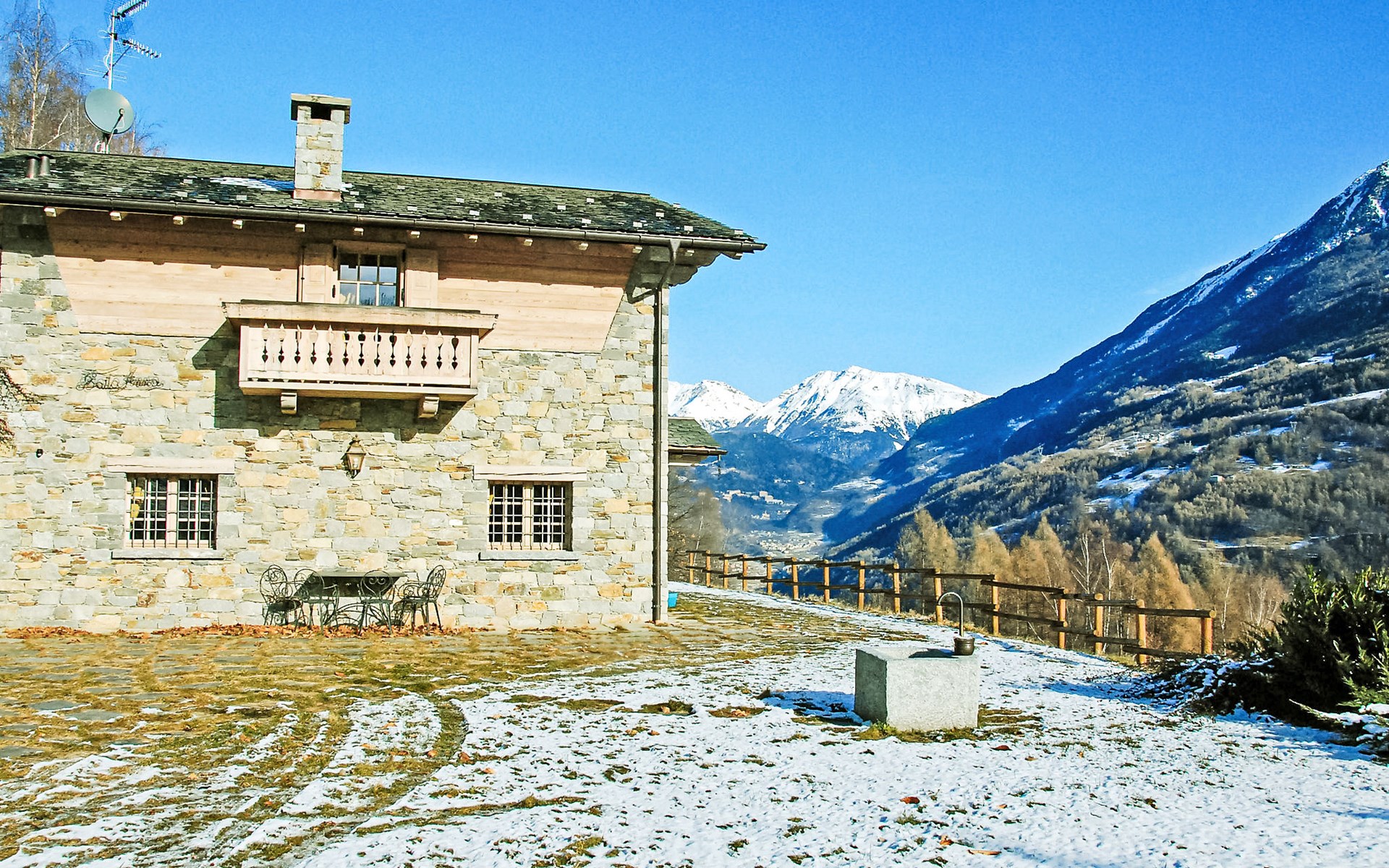 Moderne, mooi, rustieke chalet "Chalet Anna", 880 m boven zeeniveau, bouwjaar 2003, omgeven door bomen en weiden. 30 km van het centrum van Bormio, 30 km van het centrum van Aprica, buiten de plaats, 3 km van het centrum van Grosotto, rustige, zonnige, verhoogde ligging tegen een helling, 30 km van het skigebied, op het zuiden. Voor alleengebruik: tuin 2.000 m2 (omheind), ligweide. Tuinmeubelen, grill. In het huis: berging voor ski's, centrale verwarming, wasserette. Boodschappenpakket mogelijk bij aankomst. In de winter sneeuwkettingen aanbevolen. Overdekte parkeerplaats (voor 2 auto's). Levensmiddelenwinkel 3 km, supermarkt 3 km, restaurant 3 km, bushalte 3 km. Attracties in de buurt: Train Bernina Express:Tirano-St Moritz 15 km, Livigno 65 km, Saint Moritz 70 km. Auto noodzakelijk.