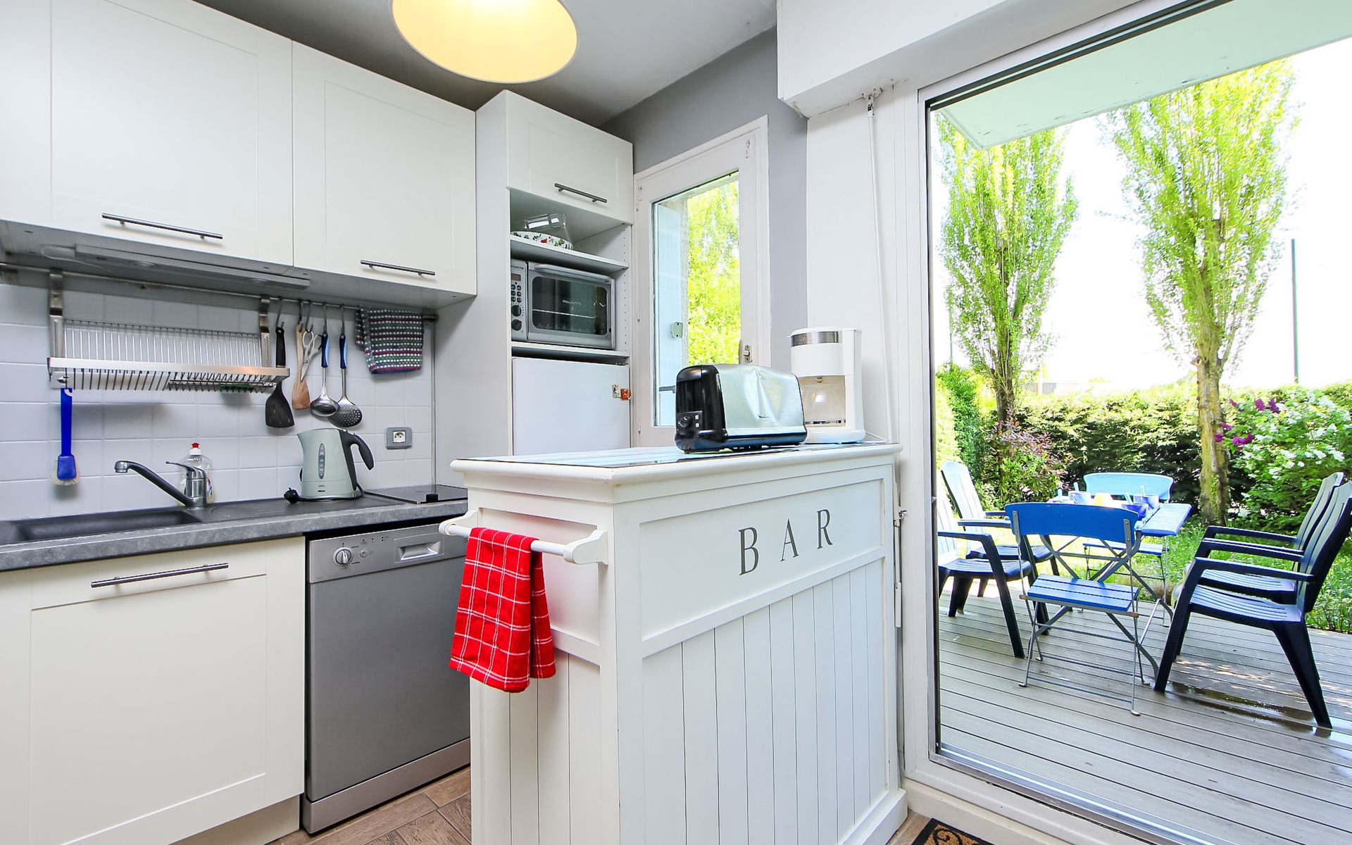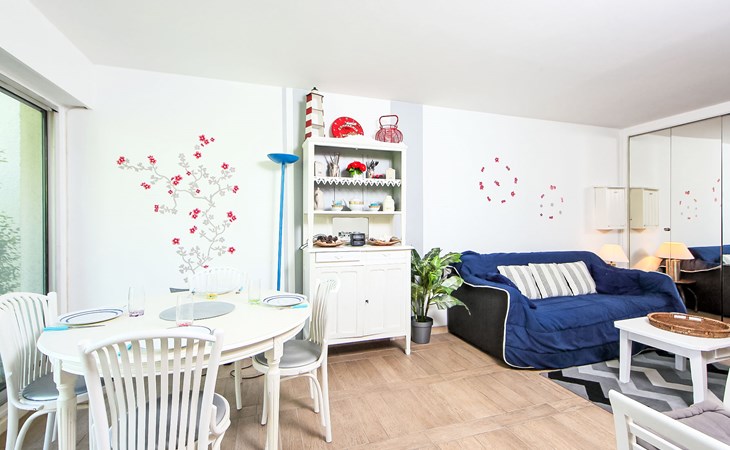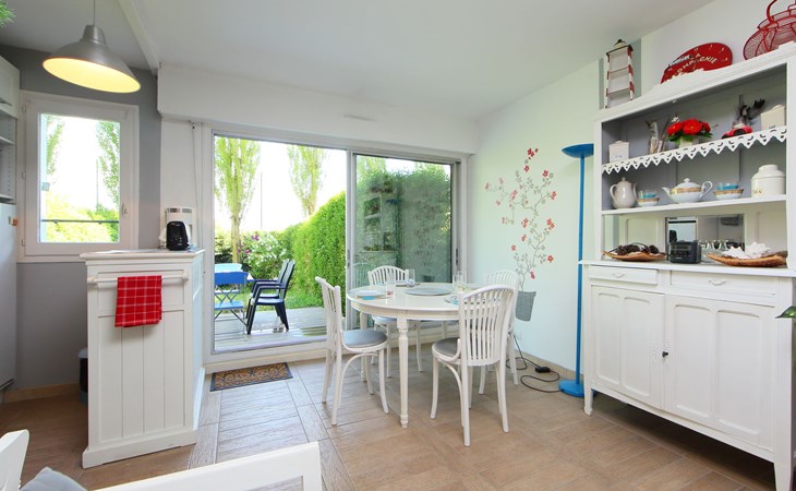 Residentie "Le Garden", van 3 verdiepingen. In de plaats, 600 m van het centrum van Cabourg, 500 m van zee, 500 m van het strand. In het huis: lift. Openbare parkeerplaatsen in de straat. Winkel 600 m, levensmiddelenwinkel 1 km, supermarkt 1 km, restaurant, bar, bakkerij, café 600 m, bushalte "Plage" 150 m, thermaalbad "Thalazur" 500 m. Jachthaven 2.7 km, golfterrein (9 holes) 1.7 km, midgetgolf 1.6 km, manege 2.3 km. Attracties in de buurt: Hippodrome 1 km.