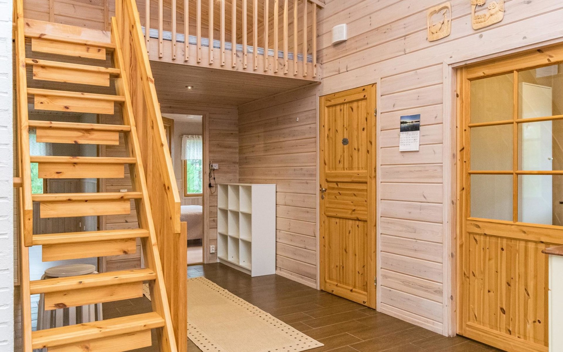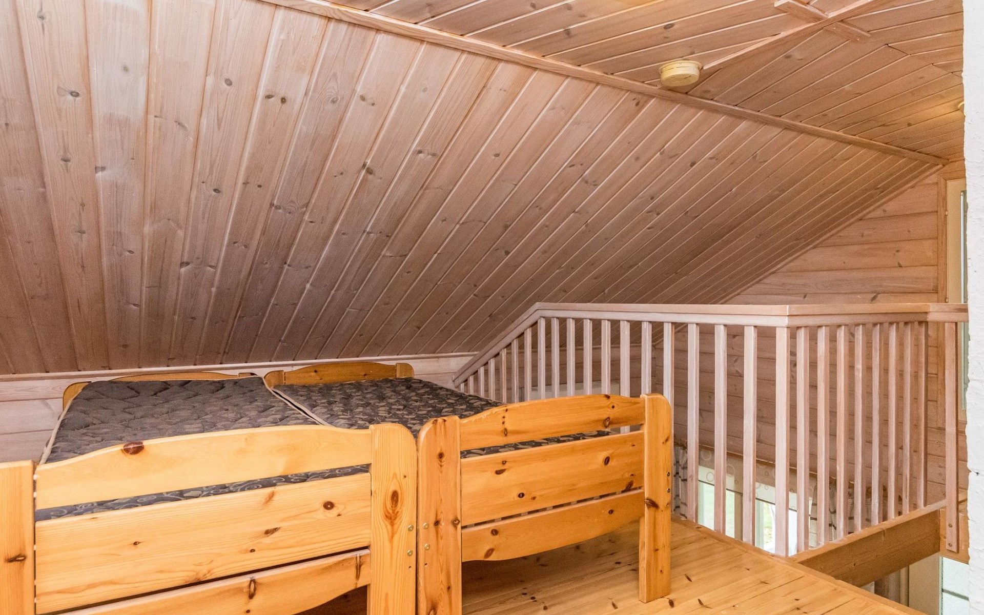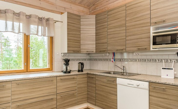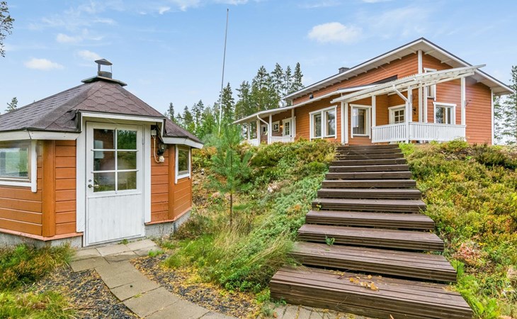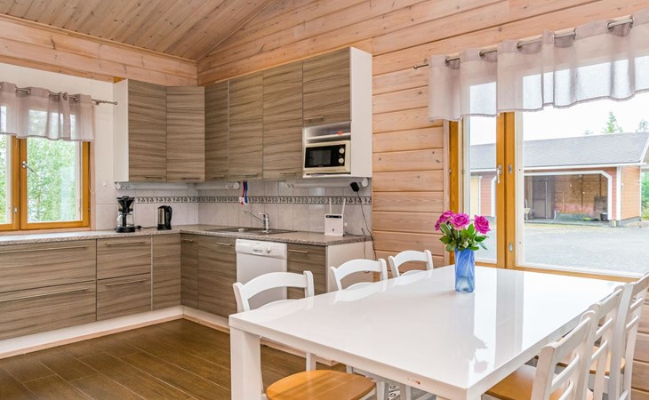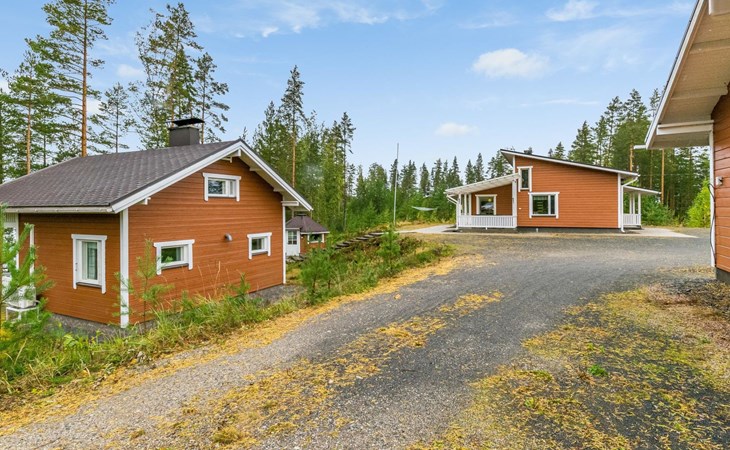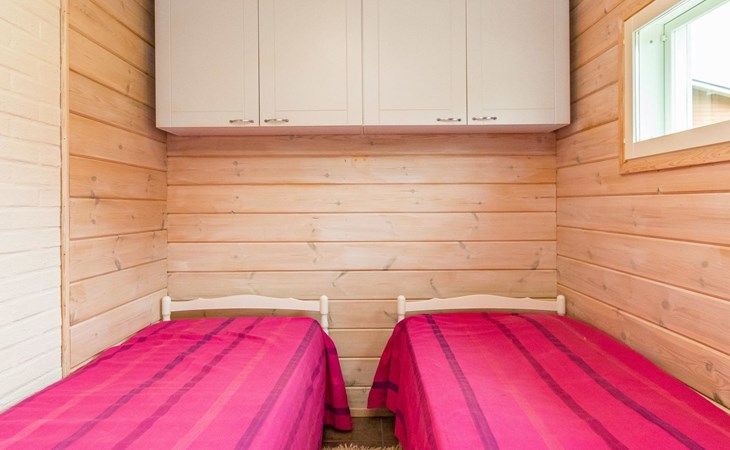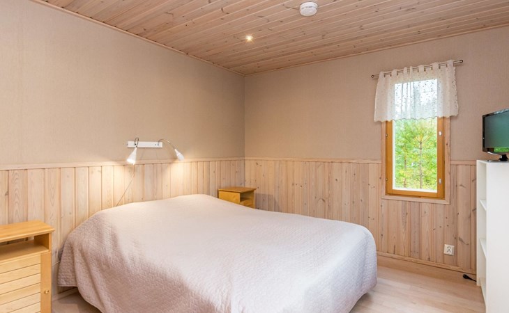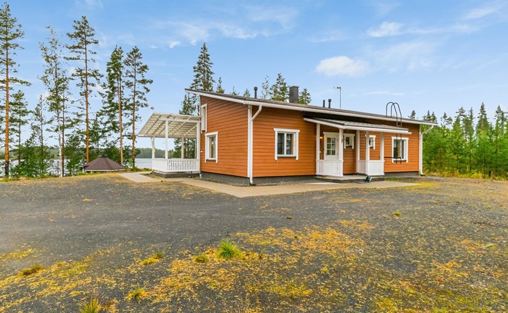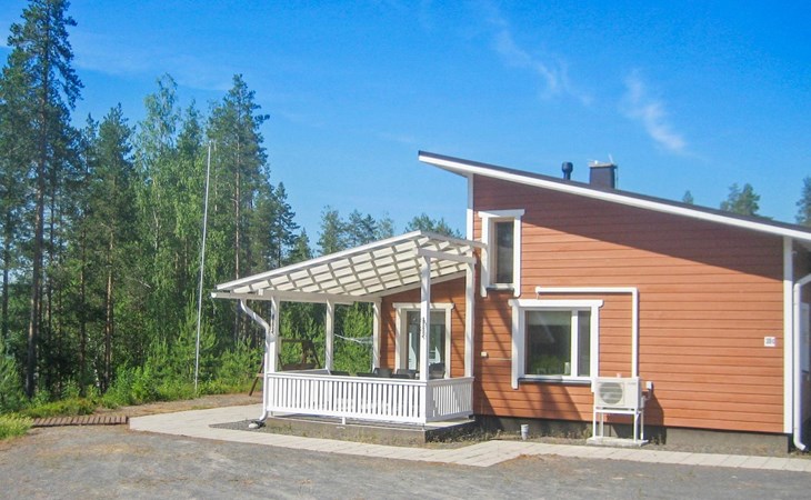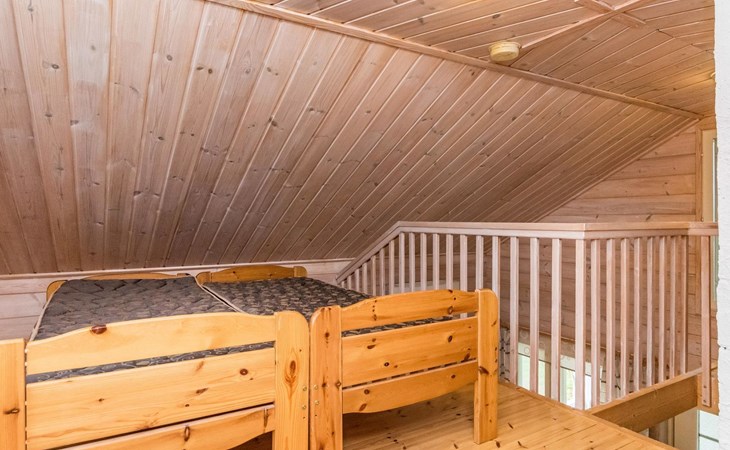 Wooden holiday home 2013, kitchen, living room with sofa bed for two, two bedrooms, one with double bed and another with two beds, dressing room / utility room, washroom, sauna (electric sauna stove), separate WC, loft, covered terrace.