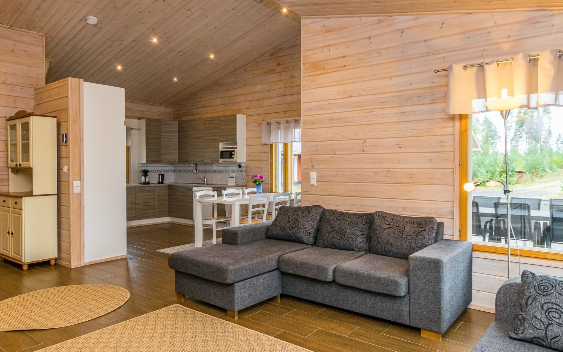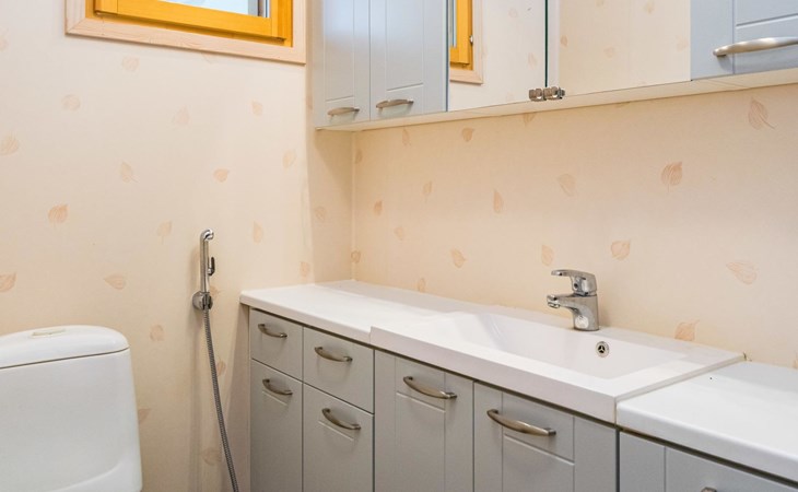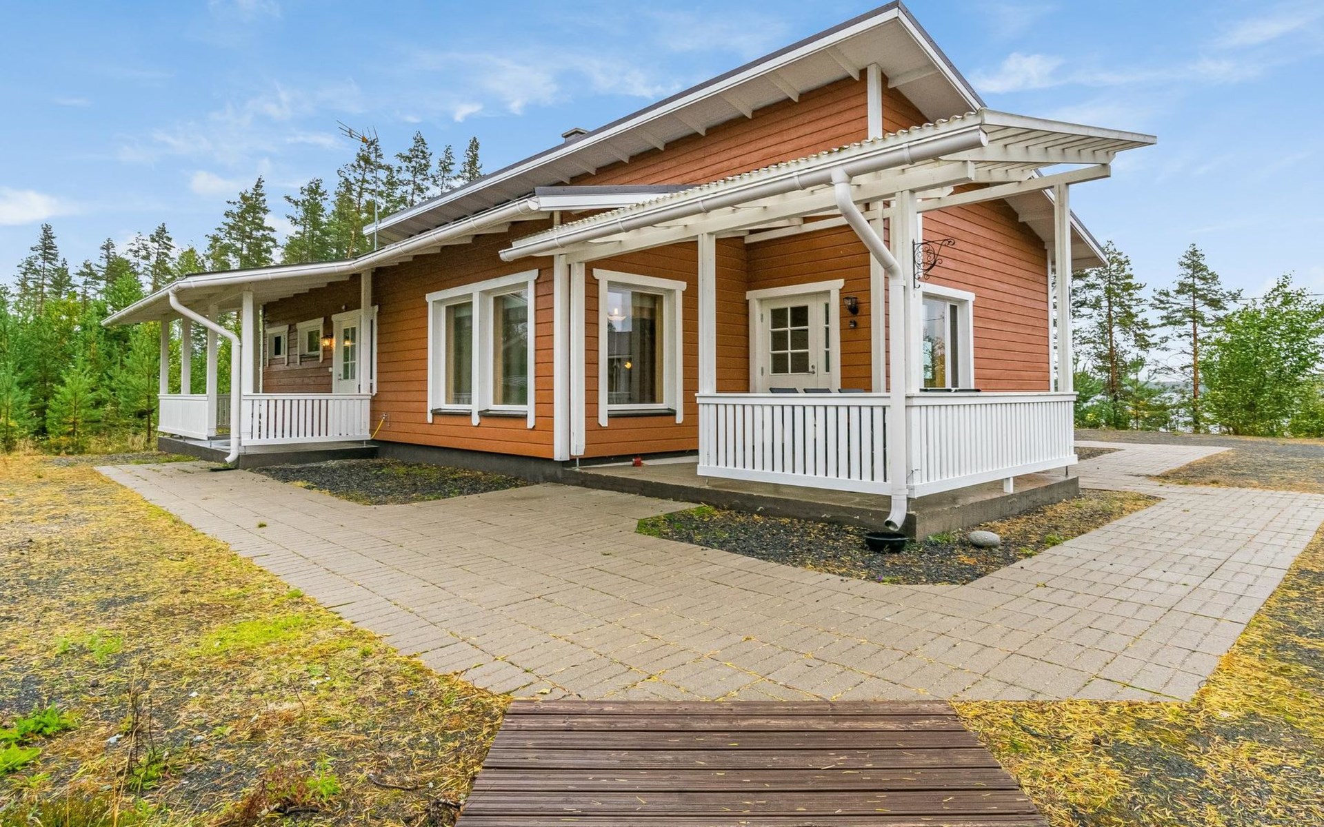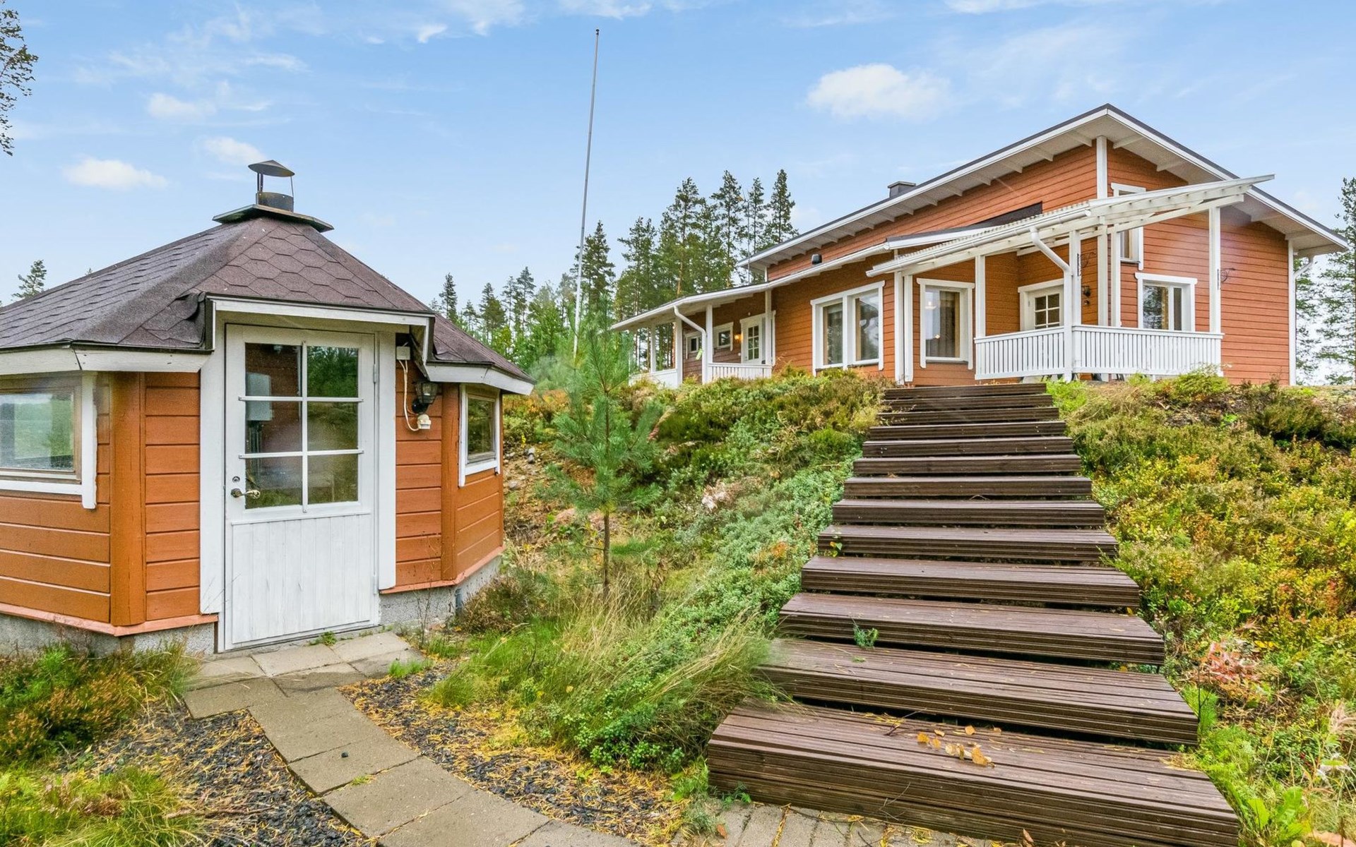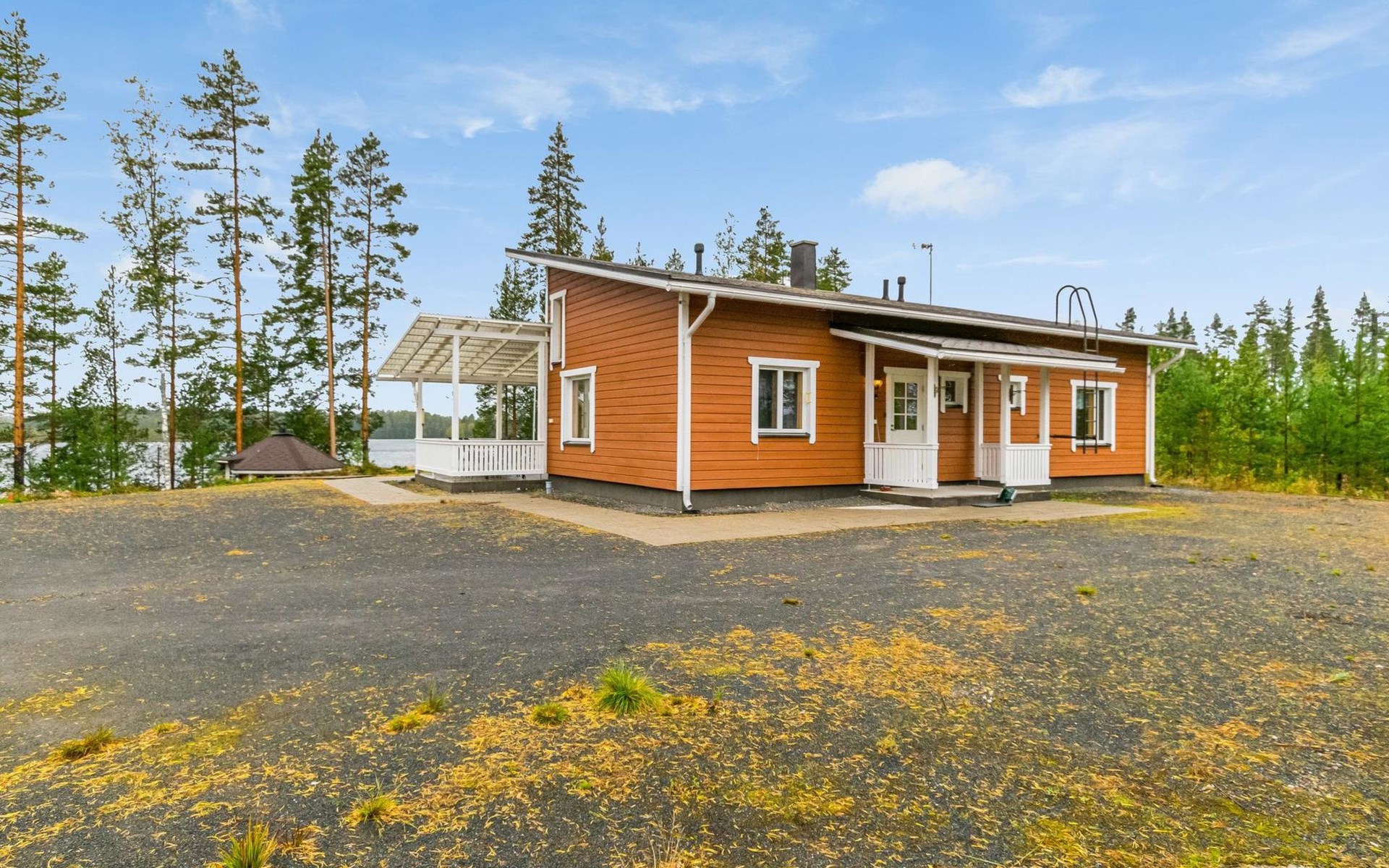 Wooden holiday home 2013, kitchen, living room with sofa bed for two, two bedrooms, one with double bed and another with two beds, dressing room / utility room, washroom, sauna (electric sauna stove), separate WC, loft, covered terrace.