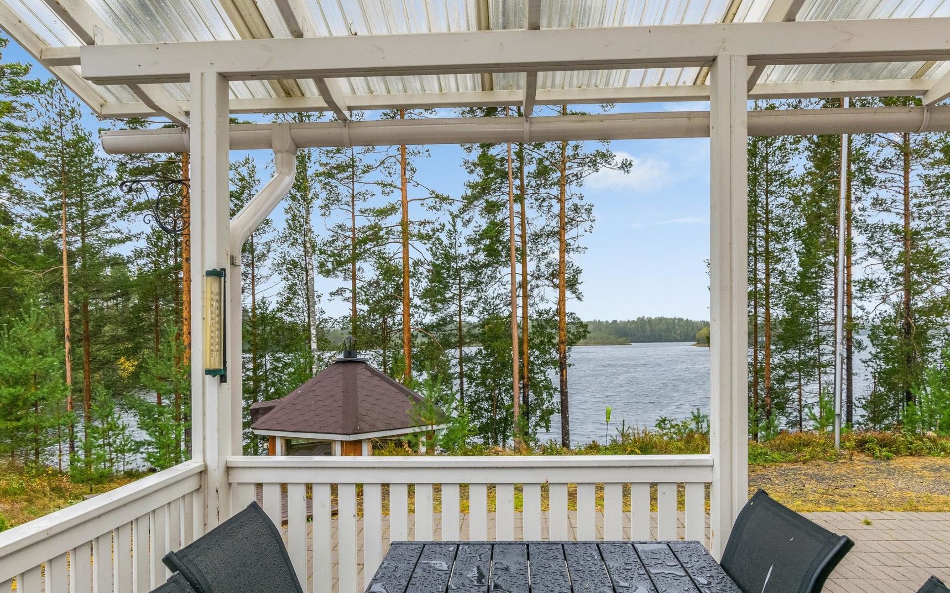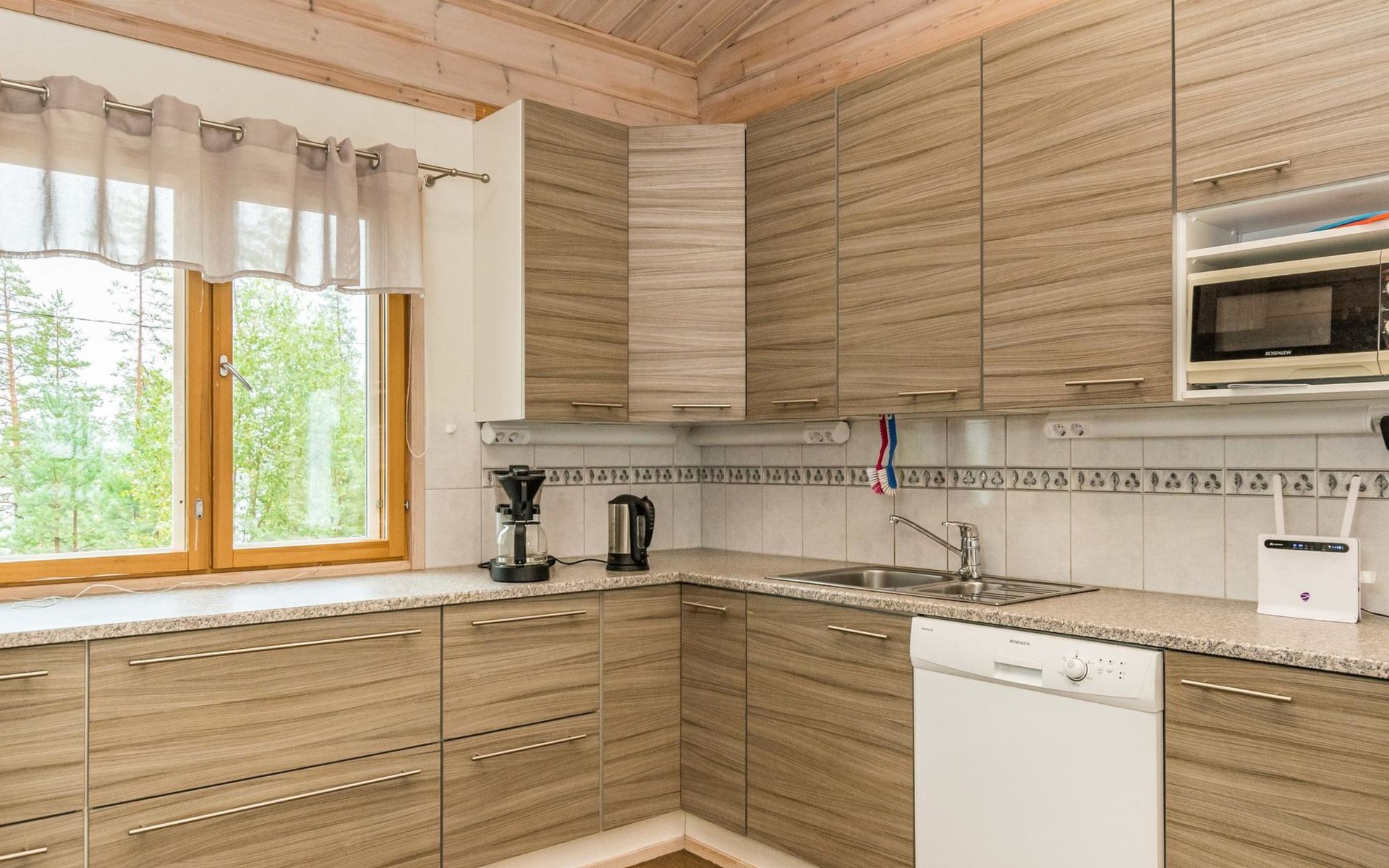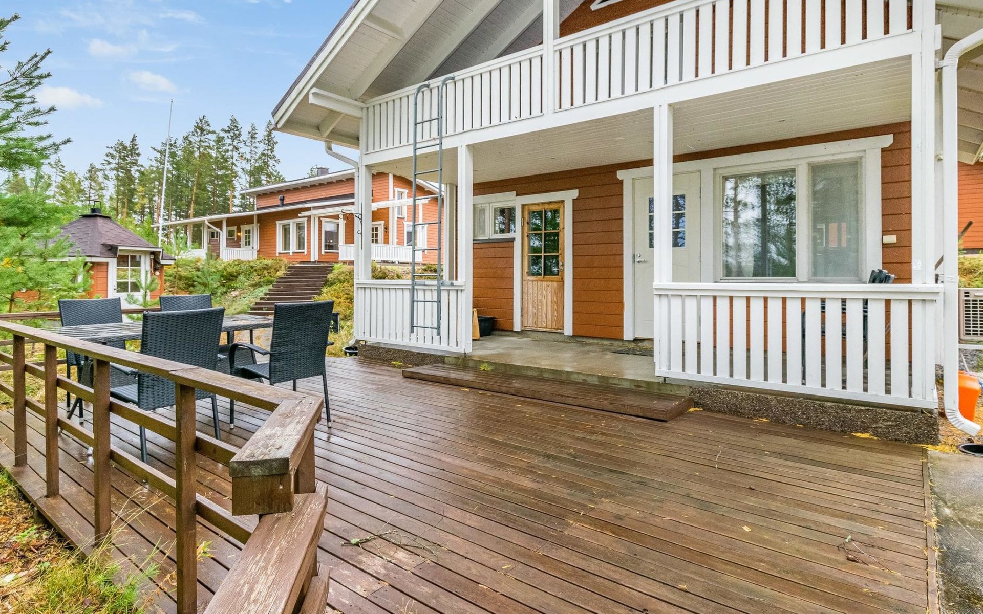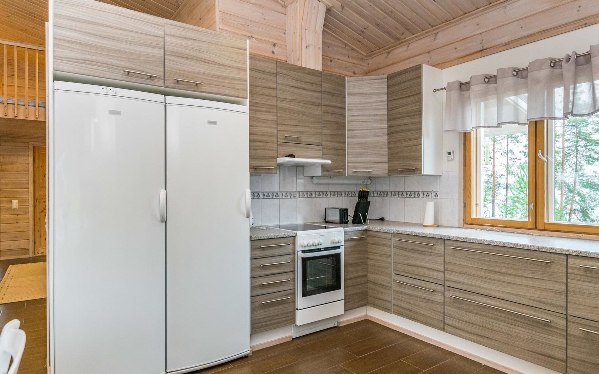 Wooden holiday home 2013, kitchen, living room with sofa bed for two, two bedrooms, one with double bed and another with two beds, dressing room / utility room, washroom, sauna (electric sauna stove), separate WC, loft, covered terrace.