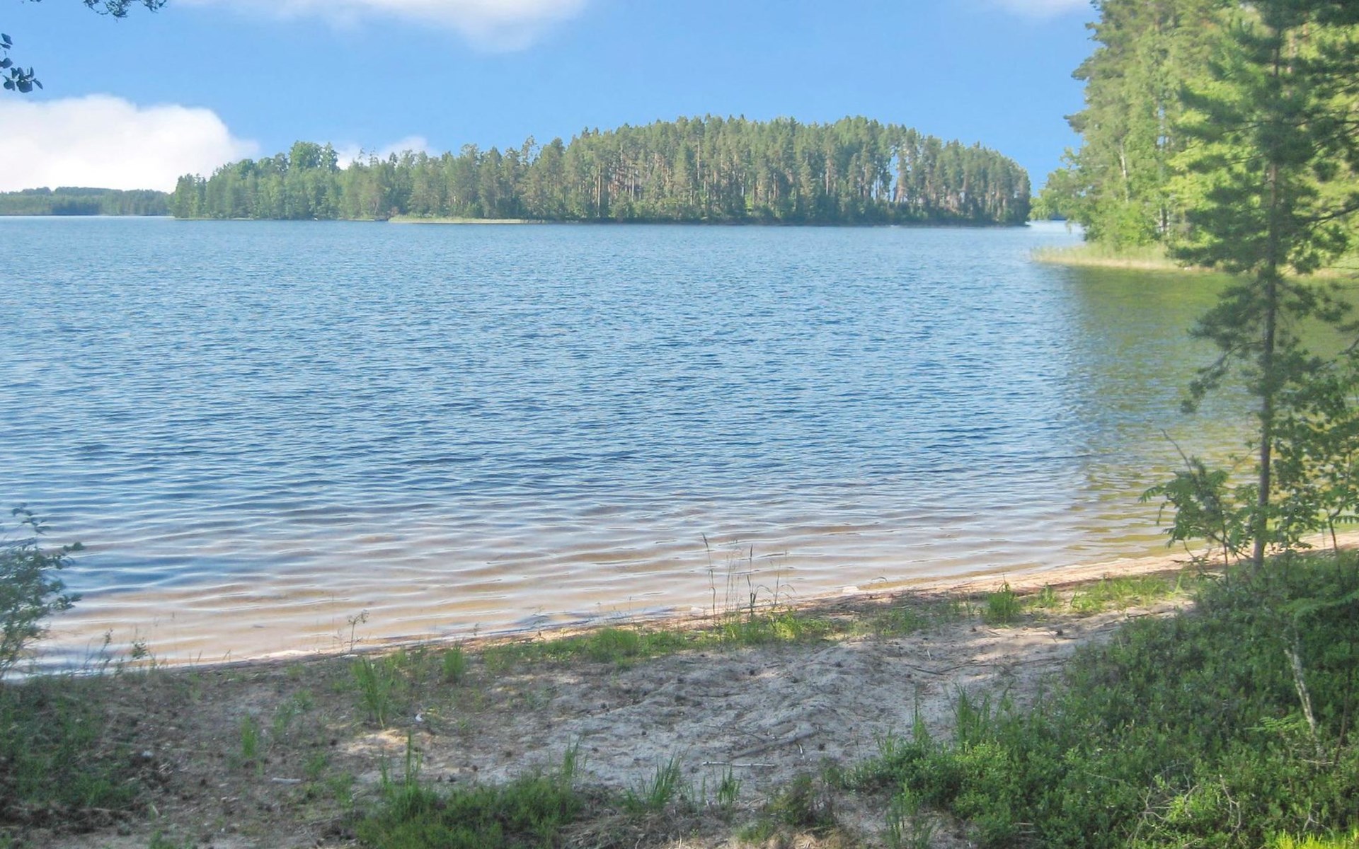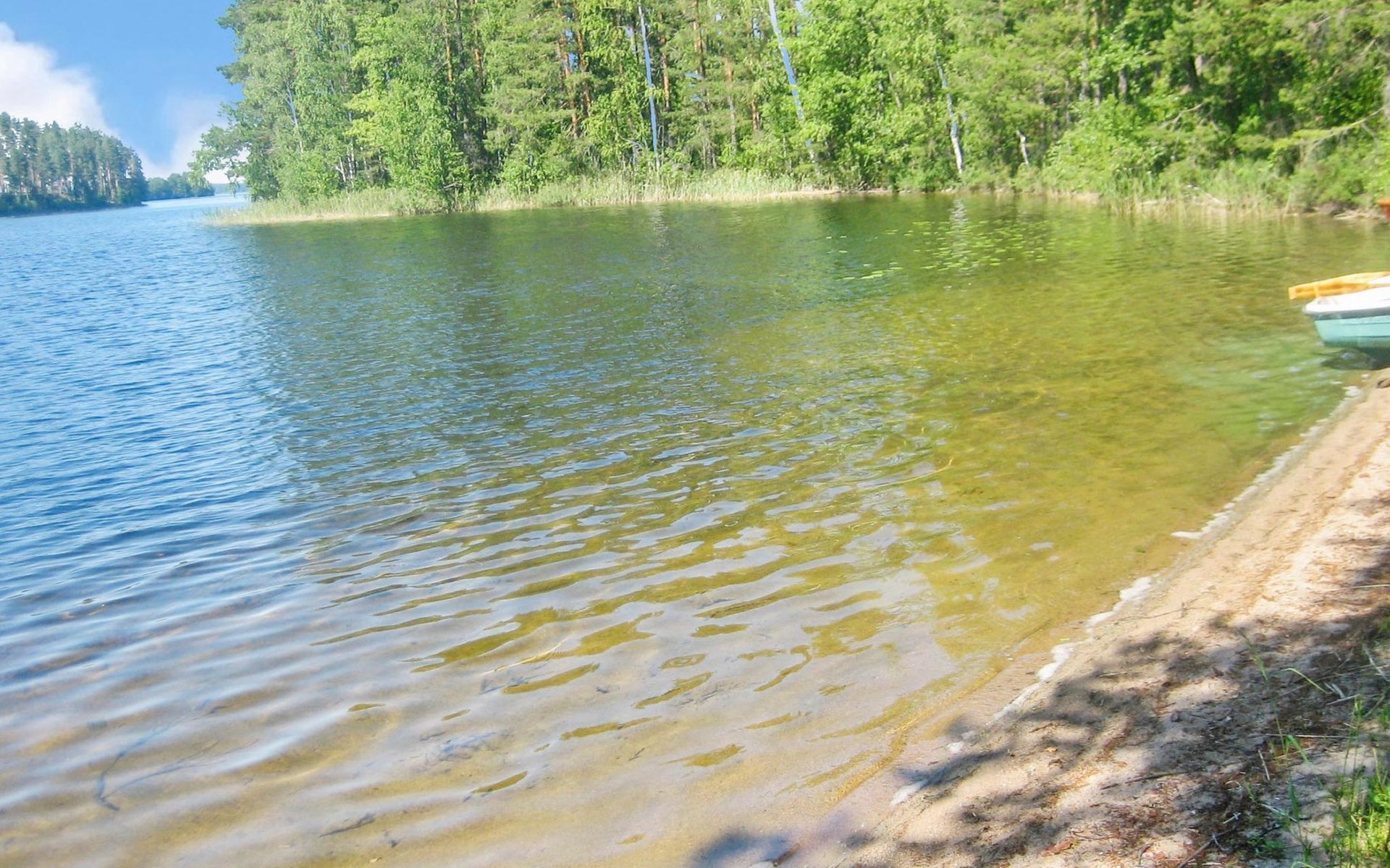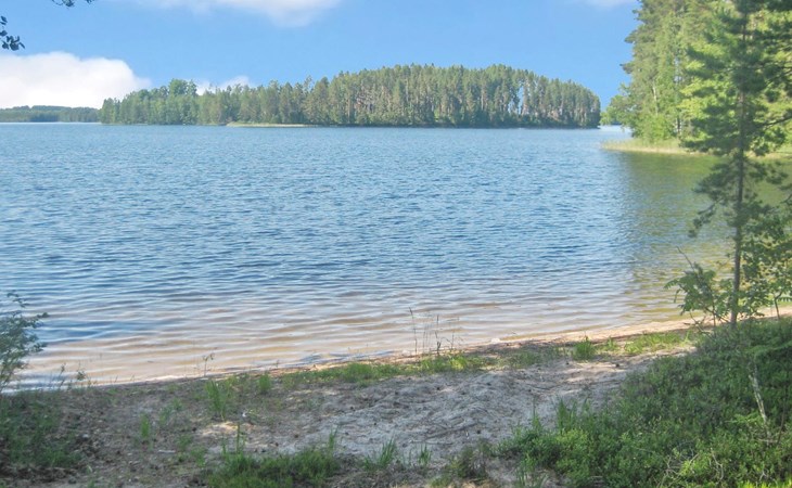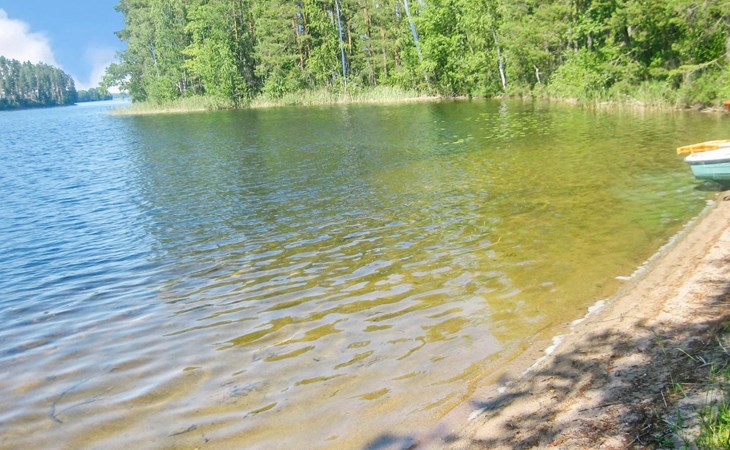 36 km to the south from Kitee, lake Pyhäjärvi 50 m, hard, evenly deepening sand bottom, rowing boat.