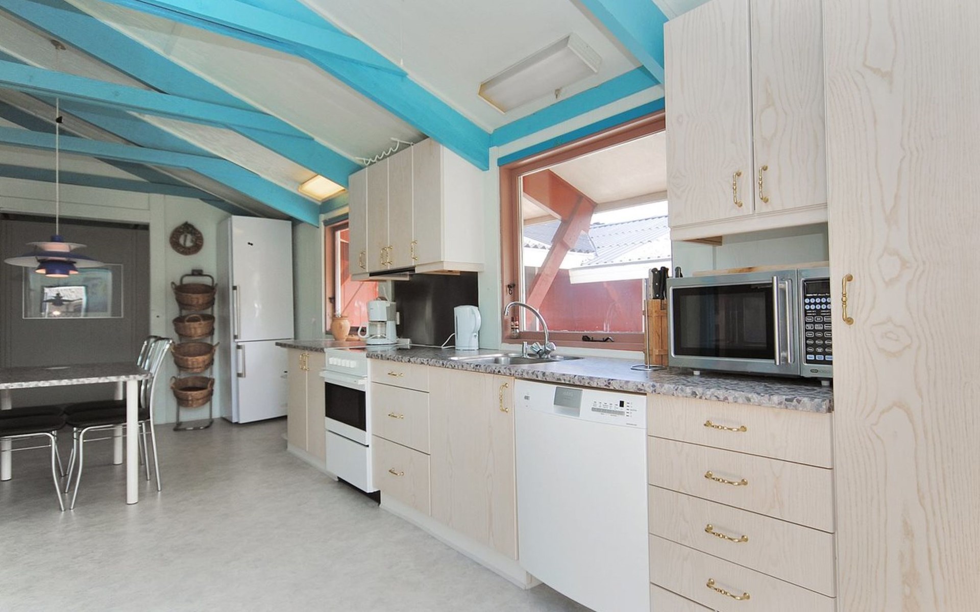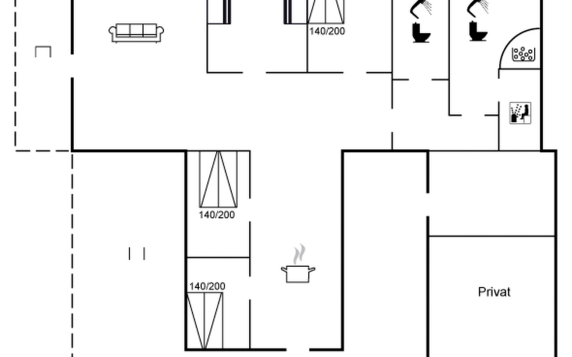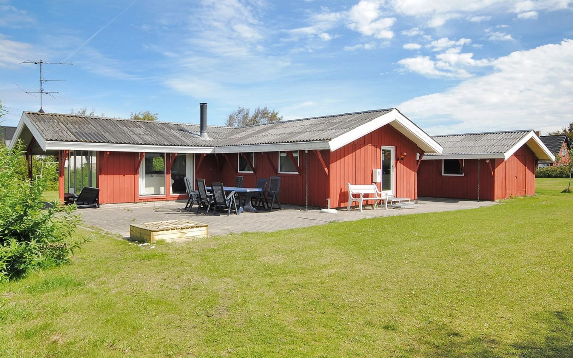 Eengezinswoning, bouwjaar 1977. 500 m van zee. Voor alleengebruik: wild terrein 1.200 m2. Terras (70 m2), kinderspeelplaats (schommel). In het huis: sauna, solarium, wasmachine, droger. Parkeerplaats bij het huis. Levensmiddelenwinkel 1 km. Golfterrein 10 km.