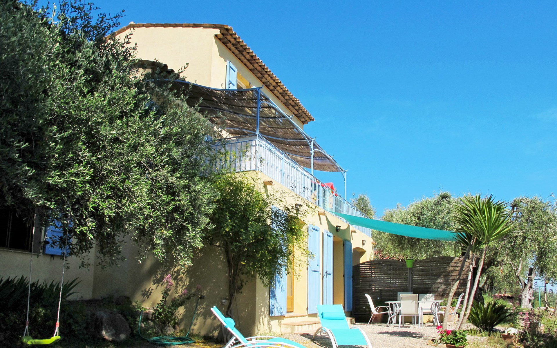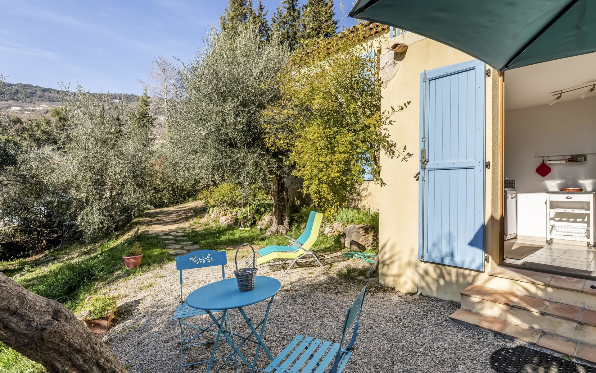 Huis met 2 woningen "La Petite Toscane". 4.5 km van het centrum van Cabris, aan de rand van de plaats, 8 km van het centrum van Grasse, 18 km van het centrum van Cannes-La Bocca, zonnige ligging, 18 km van zee. Voor medegebruik: tuin op verschillende niveaus, 1.500 m2 (niet omheind) met bomen, wilde tuin. Voor alleengebruik: tafeltennis. Levensmiddelenwinkel 1.5 km, bushalte 2 km. De eigenaar woont in hetzelfde huis.