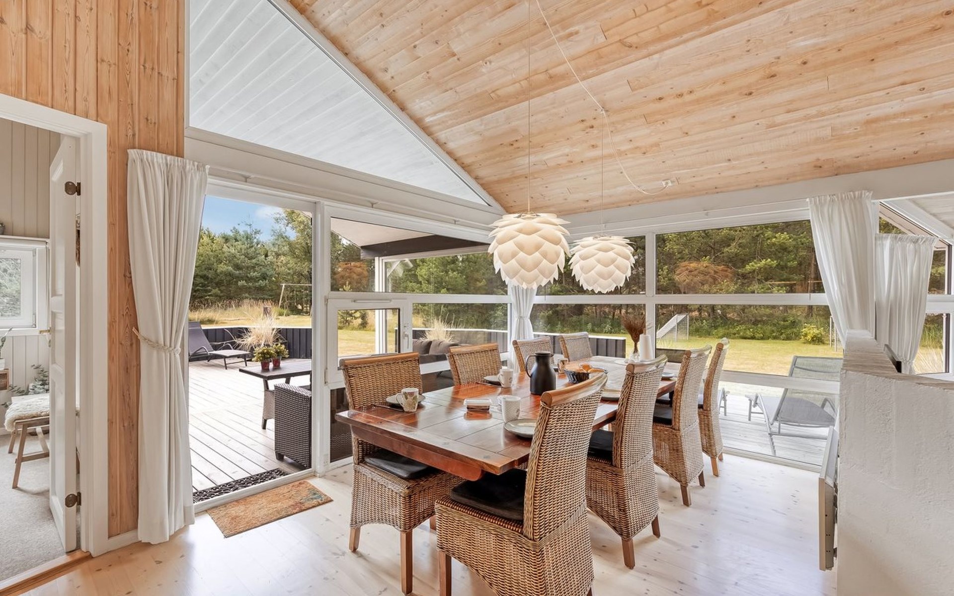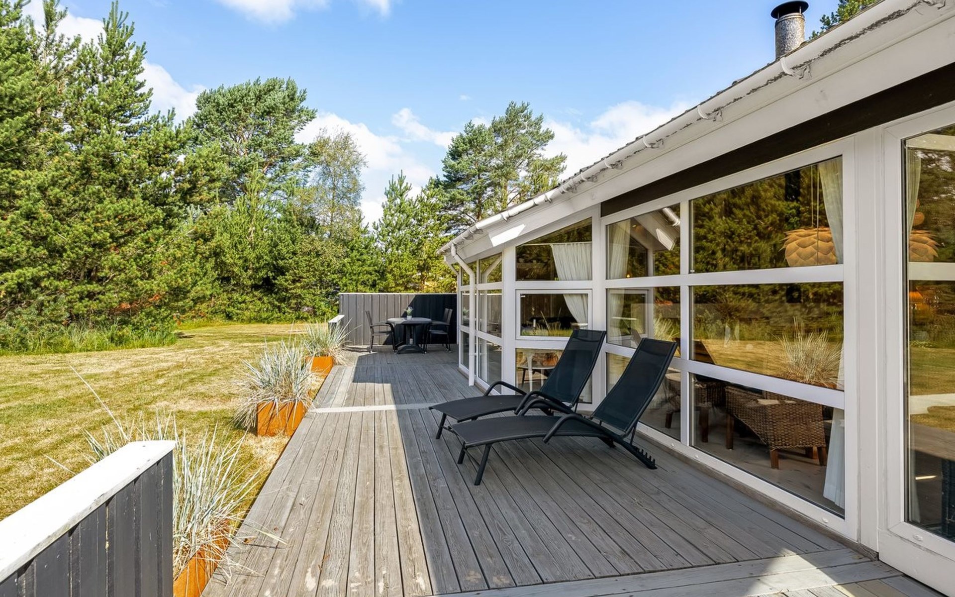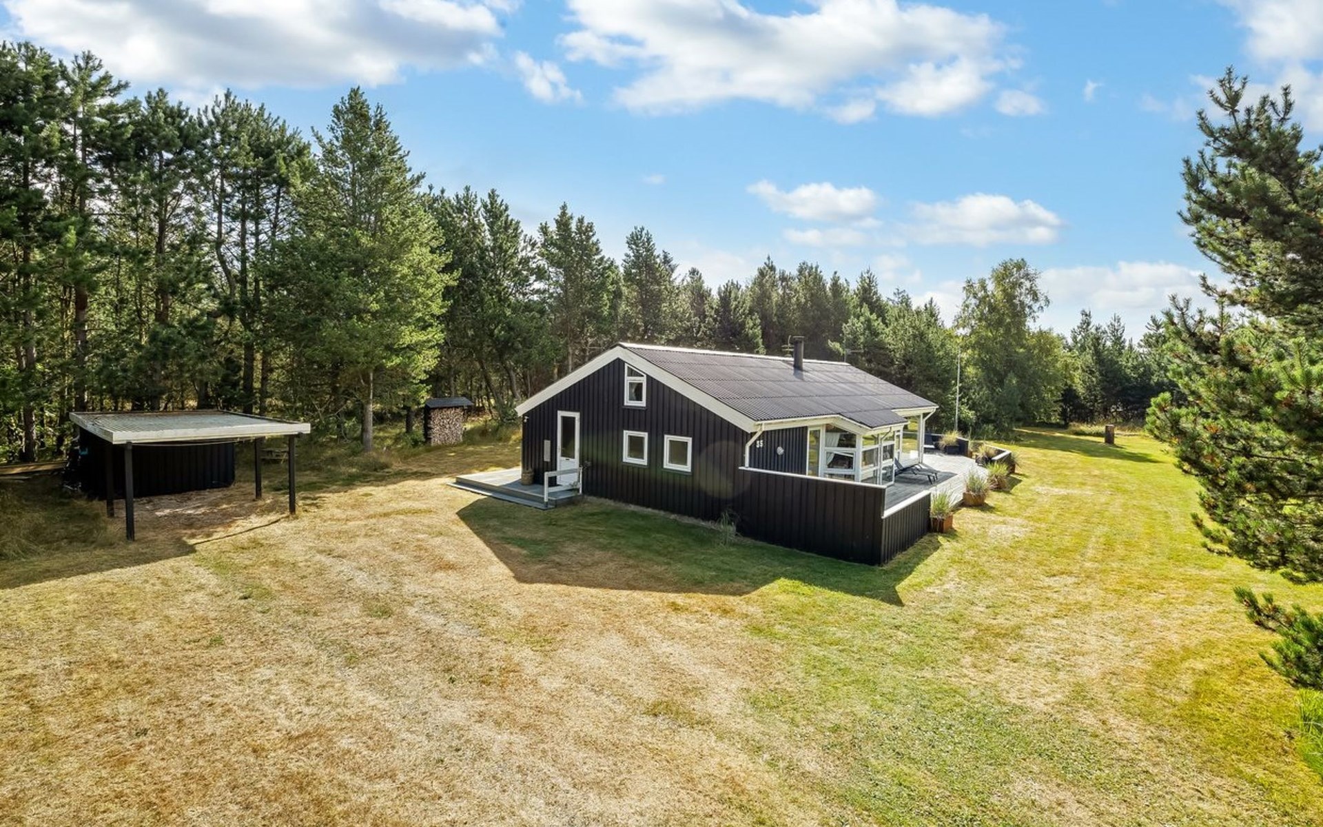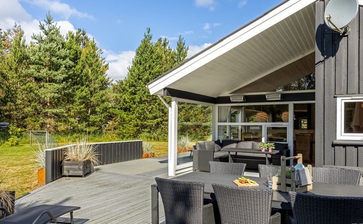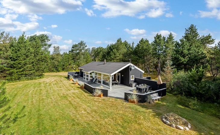 Eengezinswoning, bouwjaar 1993. 300 m van zee. Voor alleengebruik: wild terrein 2.994 m2. Terras (100 m2), kinderspeelplaats. In het huis: sauna, wasmachine, droger. Parkeerplaats bij het huis. Levensmiddelenwinkel 200 m. De eigenaar accepteert geen jeugdgroepen.