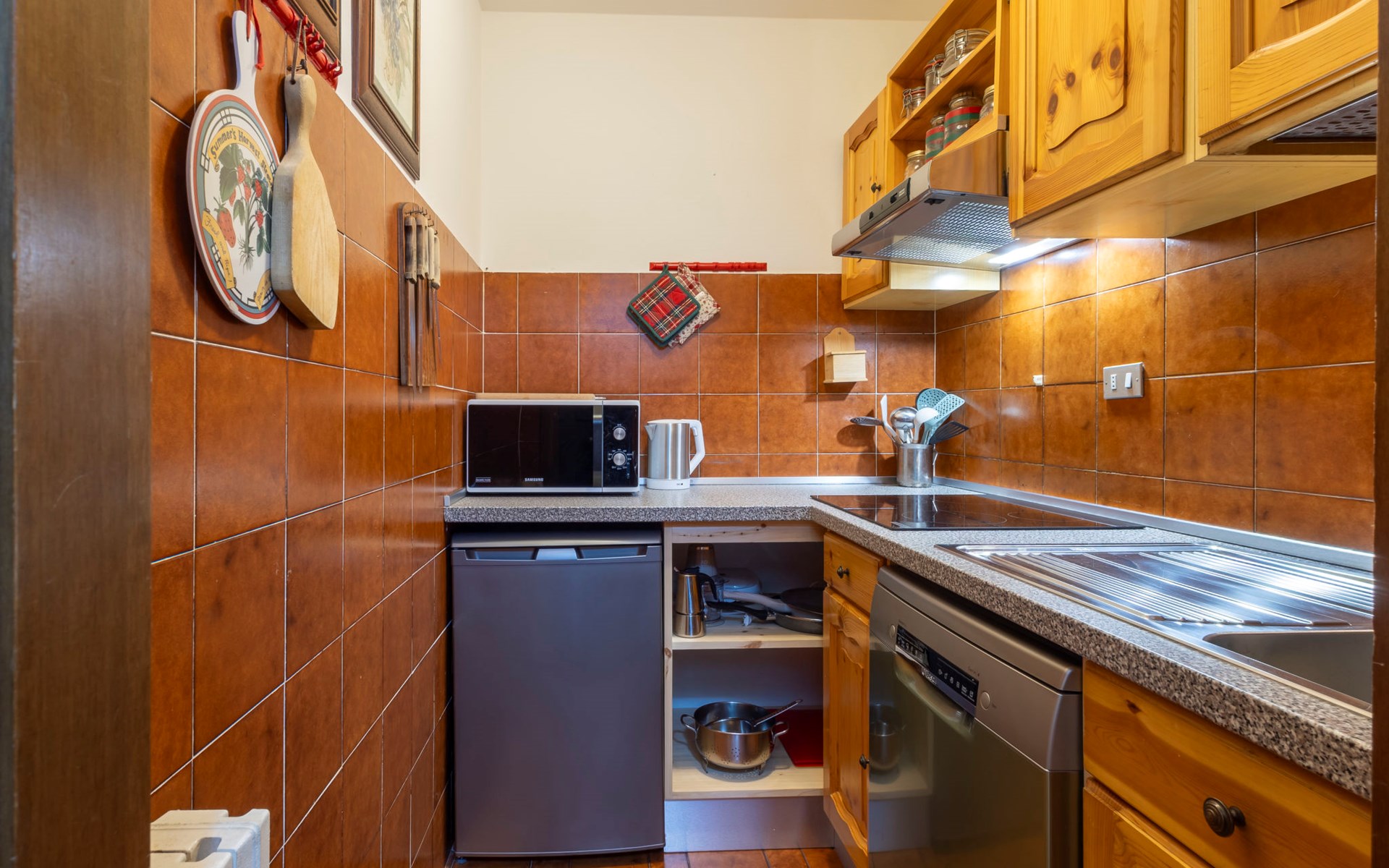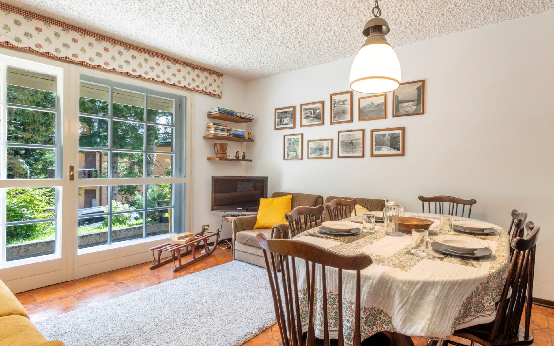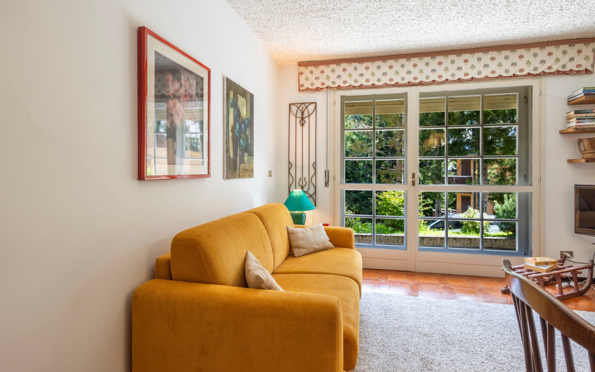 Comfortabel appartementencomplex "Smeraldo", van 3 verdiepingen. In het centrum van Madesimo, rustige ligging tegen een helling, in een woonwijk, 400 m van het skigebied, aan een doodlopende weg, op het oosten. Voor alleengebruik: kleine tuin op verschillende niveaus (niet omheind) met wilde tuin. In het huis: bergruimte voor fietsen, berging voor ski's, centrale verwarming. Boodschappenpakket mogelijk bij aankomst. In de winter sneeuwkettingen aanbevolen. Overdekte parkeerplaats bij het huis, openbare parkeerplaatsen in de straat. Levensmiddelenwinkel, supermarkt, restaurant 500 m, bar, café 400 m, bushalte 500 m. Stoeltjeslift, skischool, kinderskischool 400 m. Bekende meren kunnen gemakkelijk worden bereikt: Lago di Como 44 km. Wandelgebied Andossi - Giardino Alpino Valcava, Lago d'Emet - Pizzo Spadolazzo, Sentiero del Cardinello, Val Febbraro.