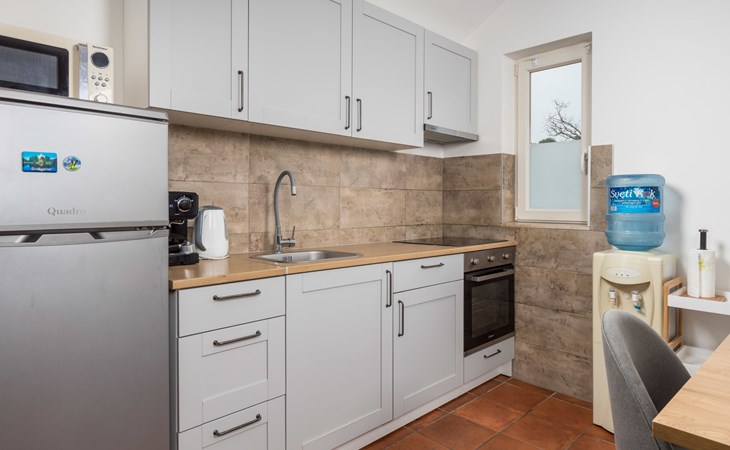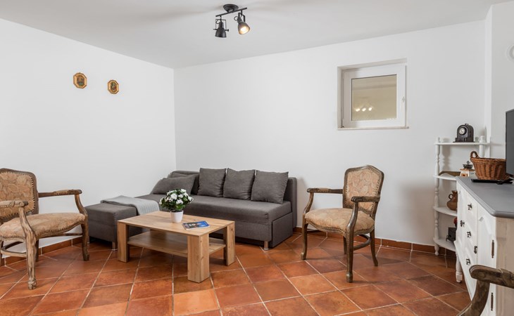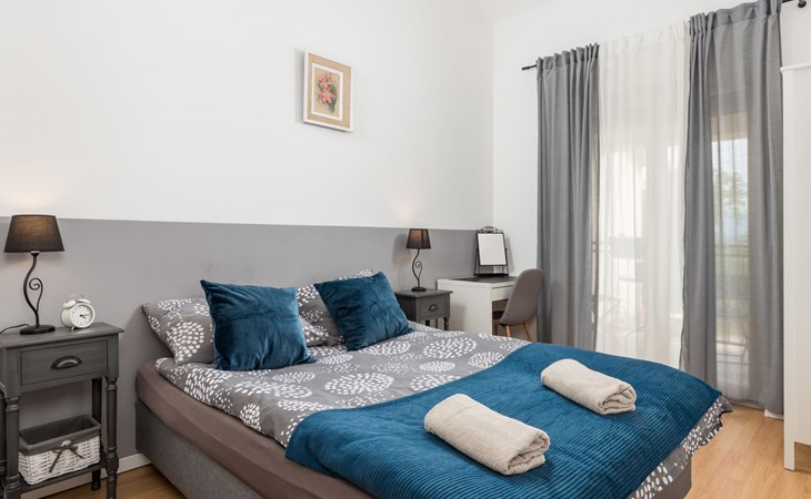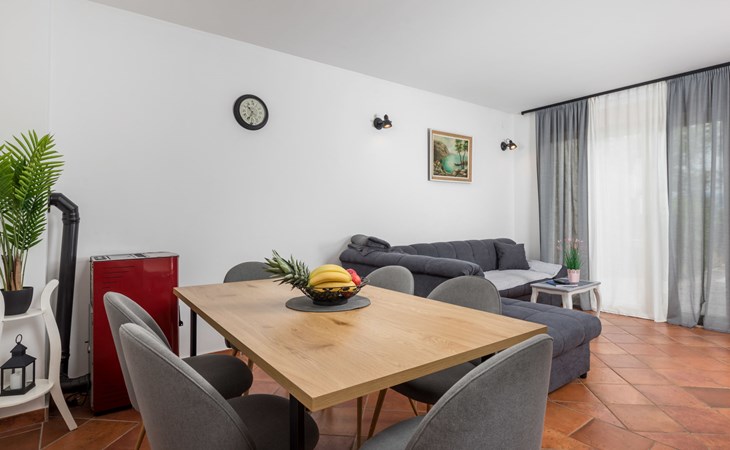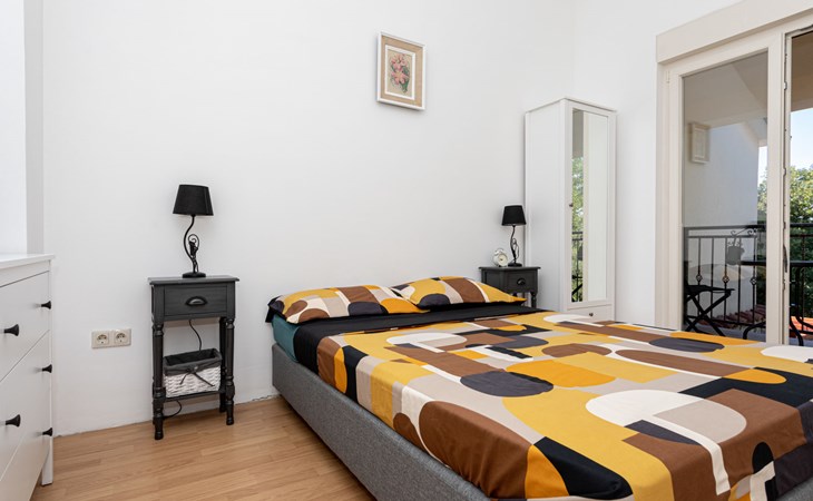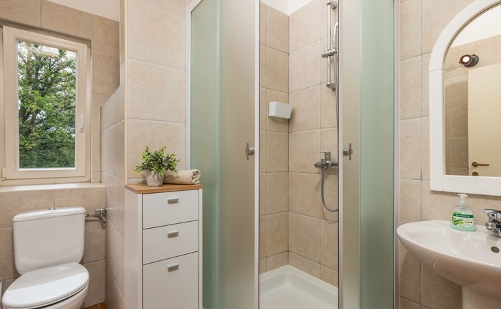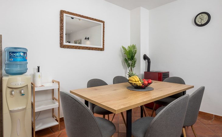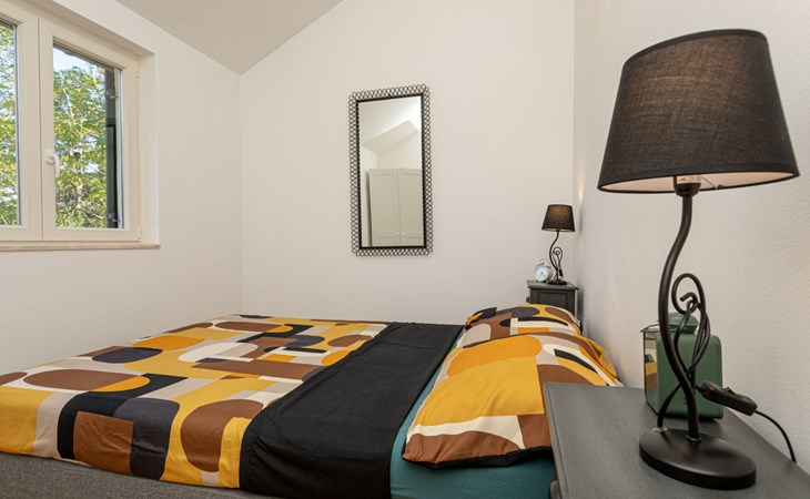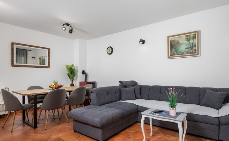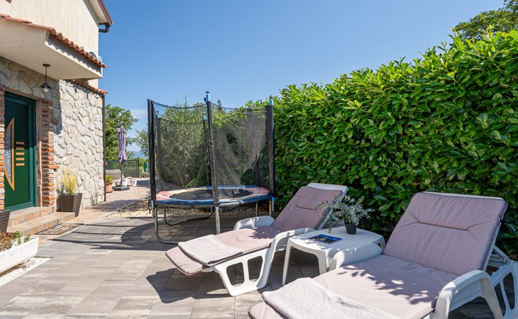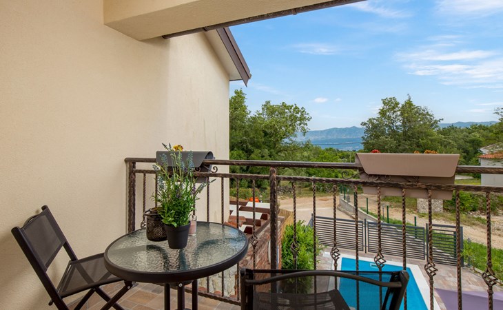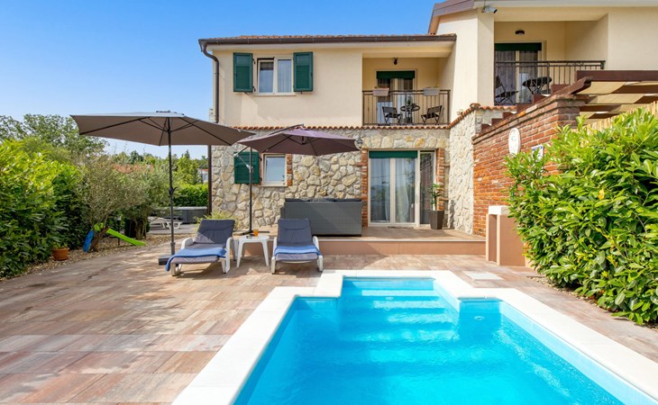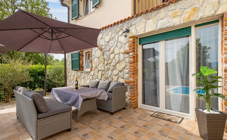 Gornja Hlapa 2 km van Dobrinj: Gezellige twee onder één kap woning "Villa Agnes", van 3 verdiepingen. 3 km van het centrum van Soline, 5 km van het centrum van Klimno, 12.5 km van het centrum van Malinska, rustige, zonnige ligging, 2.5 km van zee, 2.5 km van het strand, aan een doodlopende weg. Voor alleengebruik: terrein 360 m2 (omheind), tuin 270 m2 met bloemen en bomen, openluchtzwembad hoekig (12 m2, 120 cm diepte, seizoensgebonden beschikbaarheid: 01.Mei. - 30.Sep.) met trap. Buitendouche, hot tub, tuinmeubelen, barbecue, onderhoud zwembad door de eigenaar/tuinman. In het huis: internetaansluiting, tafelvoetbal, wasmachine. Parkeerplaats (voor 2 auto's) bij het huis op het terrein. Winkel 950 m, supermarkt 11 km, restaurant 950 m, bushalte 5.2 km, kiezelstrand 2.5 km, betonnen strand 2.5 km. Jachthaven 17 km, wandelroutes 200 m vanaf het huis, fietspad 250 m, kinderspeelplaats 2.3 km. Attracties in de buurt: Wakeboard Cable Krk 17 km, Diving club 17 km, Biserujka cave 8 km, Franciscan monastery island Košljun 17 km, The Frankopan castle Krk 16 km. Groepen jongeren uitsluitend op aanvraag.