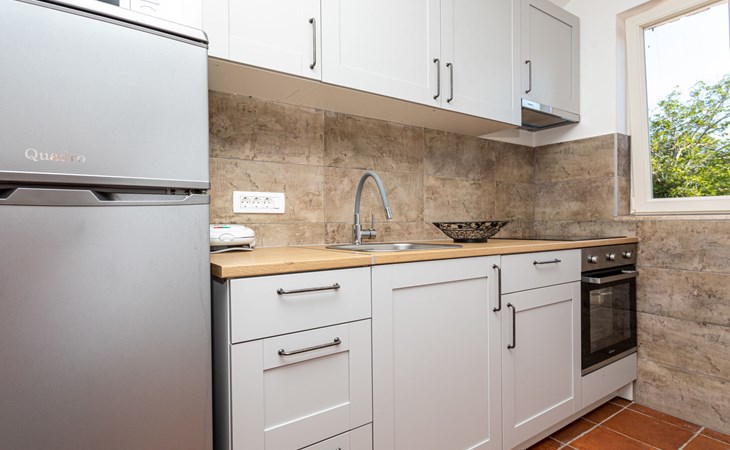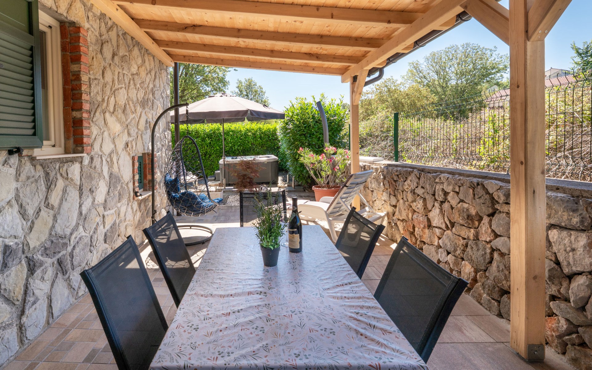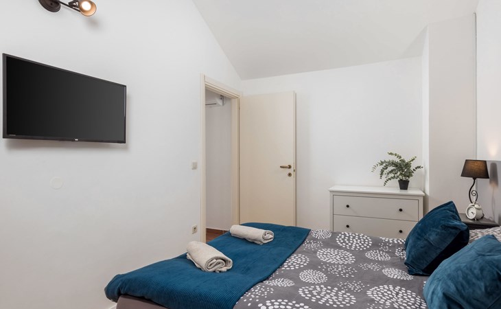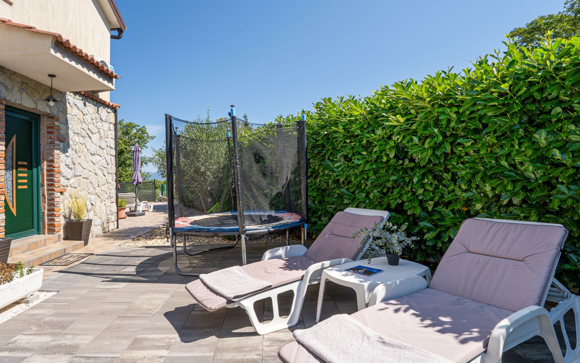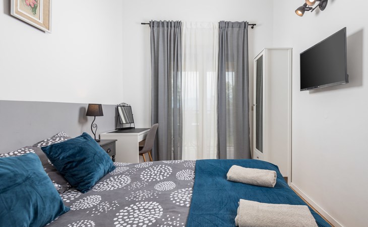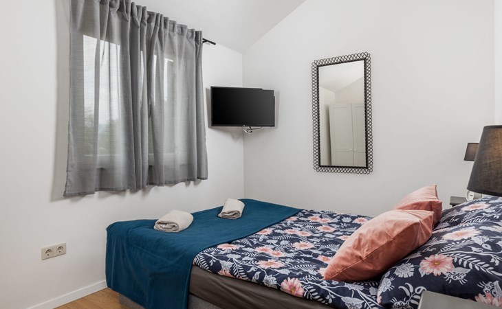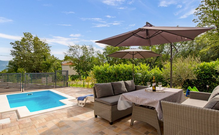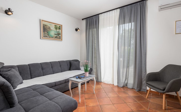 Gornja Hlapa 2 km van Dobrinj: Gezellige twee onder één kap woning "Villa Agnes", van 3 verdiepingen. 3 km van het centrum van Soline, 5 km van het centrum van Klimno, 12.5 km van het centrum van Malinska, rustige, zonnige ligging, 2.5 km van zee, 2.5 km van het strand, aan een doodlopende weg. Voor alleengebruik: terrein 360 m2 (omheind), tuin 270 m2 met bloemen en bomen, openluchtzwembad hoekig (12 m2, 120 cm diepte, seizoensgebonden beschikbaarheid: 01.Mei. - 30.Sep.) met trap. Buitendouche, hot tub, tuinmeubelen, barbecue, onderhoud zwembad door de eigenaar/tuinman. In het huis: internetaansluiting, tafelvoetbal, wasmachine. Parkeerplaats (voor 2 auto's) bij het huis op het terrein. Winkel 950 m, supermarkt 11 km, restaurant 950 m, bushalte 5.2 km, kiezelstrand 2.5 km, betonnen strand 2.5 km. Jachthaven 17 km, wandelroutes 200 m vanaf het huis, fietspad 250 m, kinderspeelplaats 2.3 km. Attracties in de buurt: Wakeboard Cable Krk 17 km, Diving club 17 km, Biserujka cave 8 km, Franciscan monastery island Košljun 17 km, The Frankopan castle Krk 16 km. Groepen jongeren uitsluitend op aanvraag.