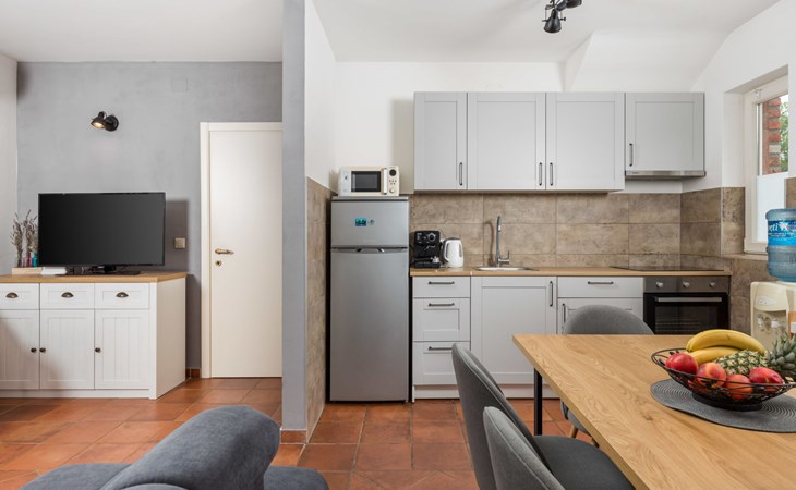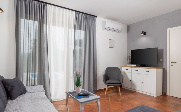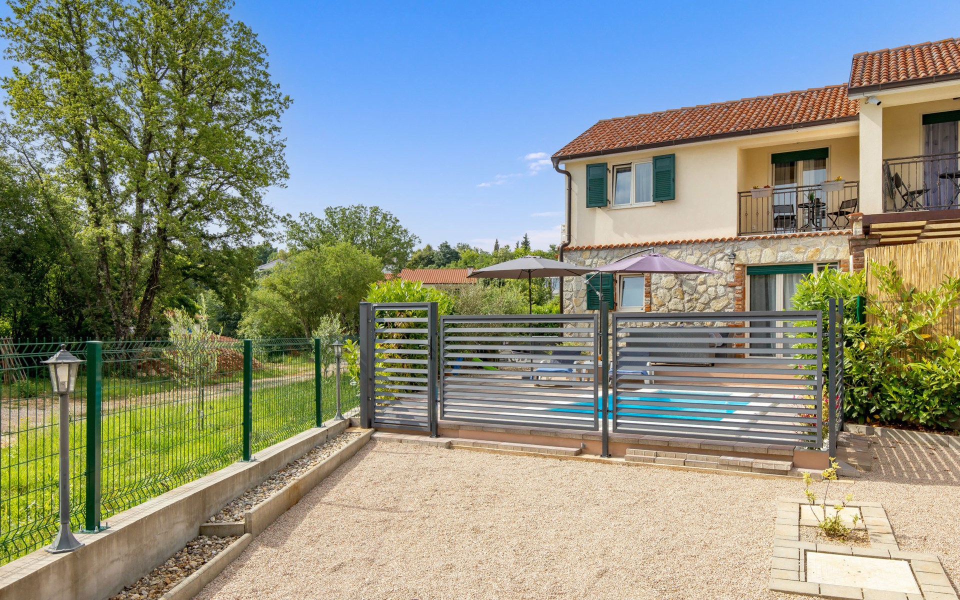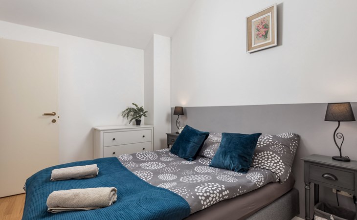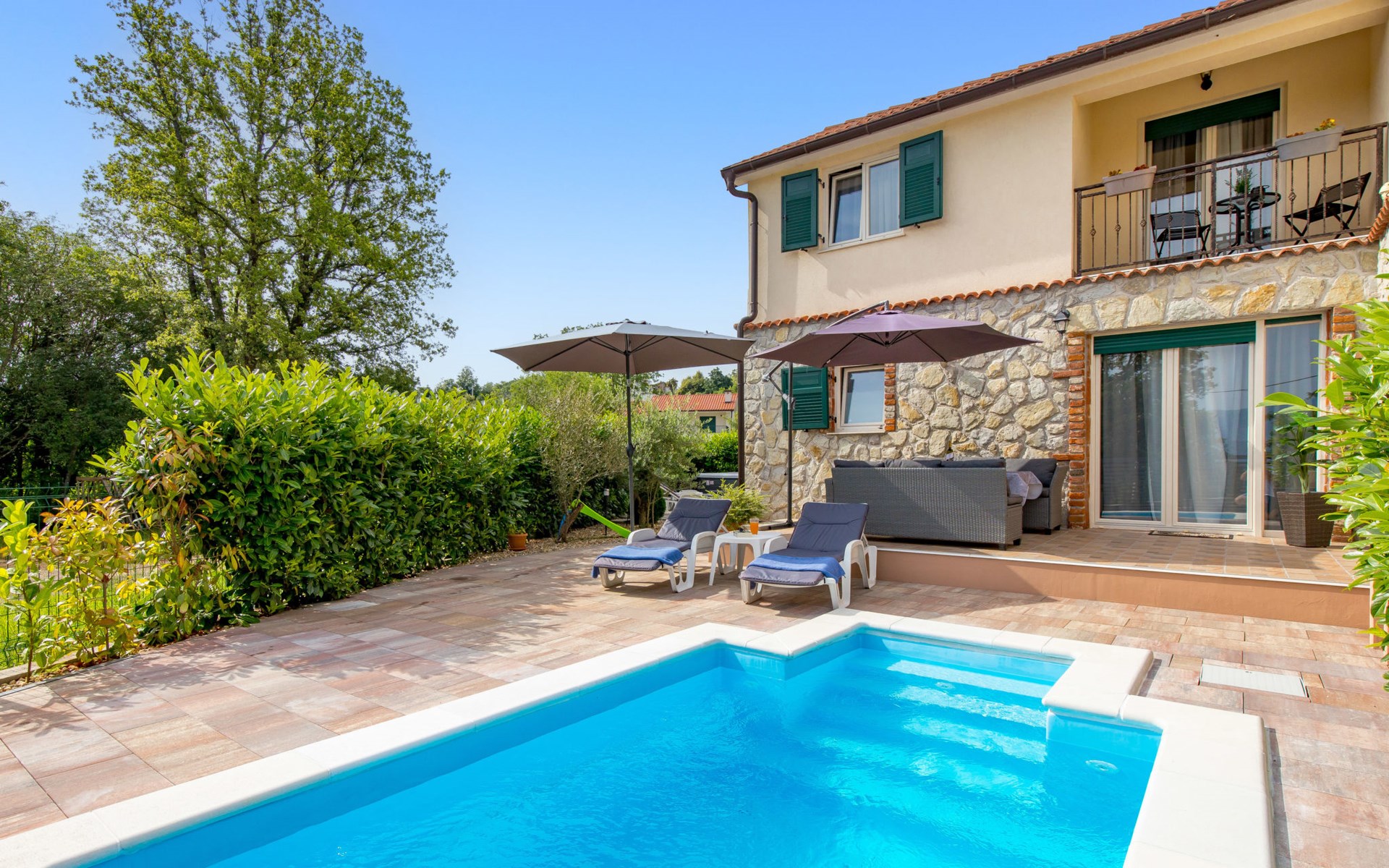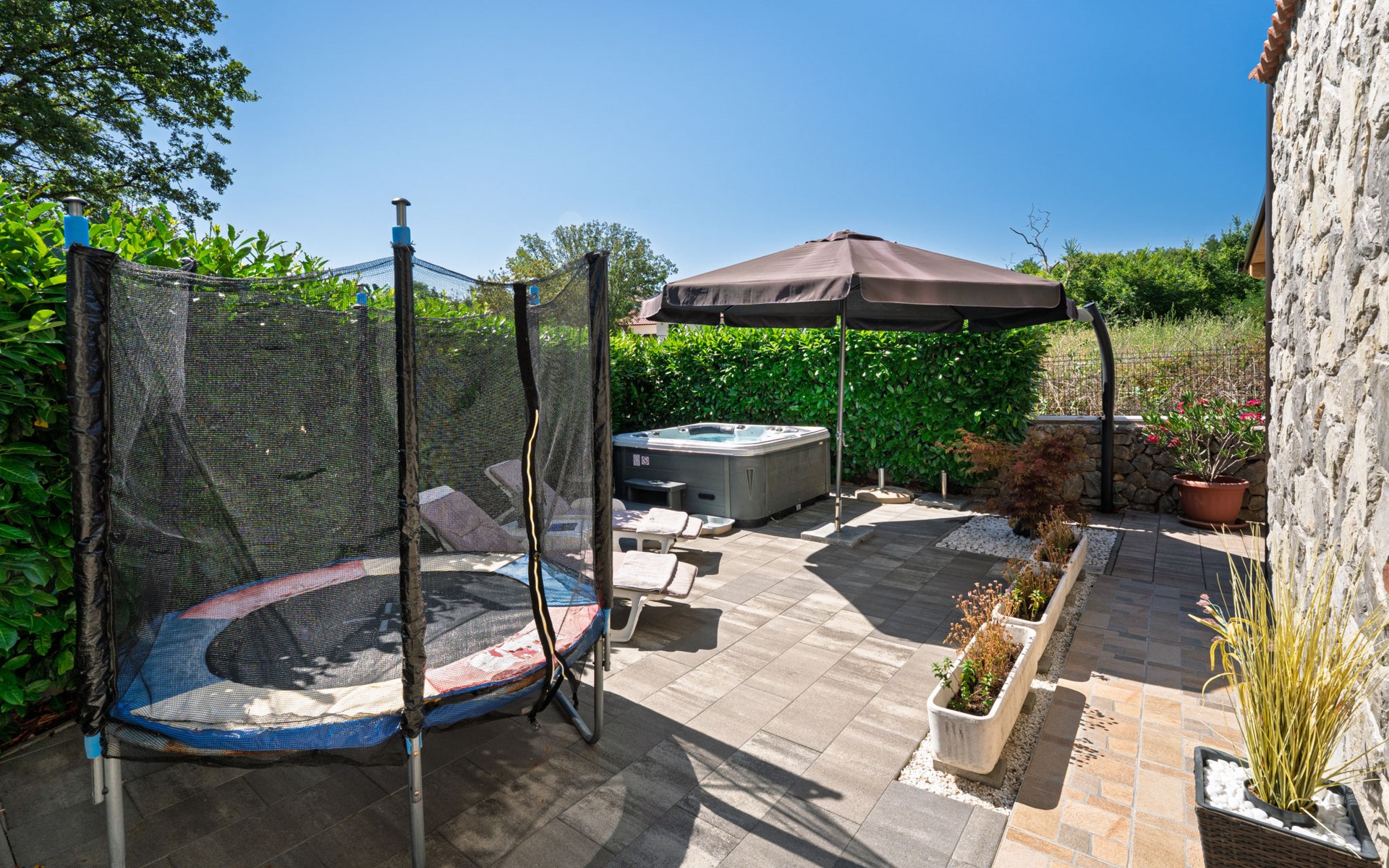 Gornja Hlapa 2 km van Dobrinj: Gezellige twee onder één kap woning "Villa Agnes", van 3 verdiepingen. 3 km van het centrum van Soline, 5 km van het centrum van Klimno, 12.5 km van het centrum van Malinska, rustige, zonnige ligging, 2.5 km van zee, 2.5 km van het strand, aan een doodlopende weg. Voor alleengebruik: terrein 360 m2 (omheind), tuin 270 m2 met bloemen en bomen, openluchtzwembad hoekig (12 m2, 120 cm diepte, seizoensgebonden beschikbaarheid: 01.Mei. - 30.Sep.) met trap. Buitendouche, hot tub, tuinmeubelen, barbecue, onderhoud zwembad door de eigenaar/tuinman. In het huis: internetaansluiting, tafelvoetbal, wasmachine. Parkeerplaats (voor 2 auto's) bij het huis op het terrein. Winkel 950 m, supermarkt 11 km, restaurant 950 m, bushalte 5.2 km, kiezelstrand 2.5 km, betonnen strand 2.5 km. Jachthaven 17 km, wandelroutes 200 m vanaf het huis, fietspad 250 m, kinderspeelplaats 2.3 km. Attracties in de buurt: Wakeboard Cable Krk 17 km, Diving club 17 km, Biserujka cave 8 km, Franciscan monastery island Košljun 17 km, The Frankopan castle Krk 16 km. Groepen jongeren uitsluitend op aanvraag.