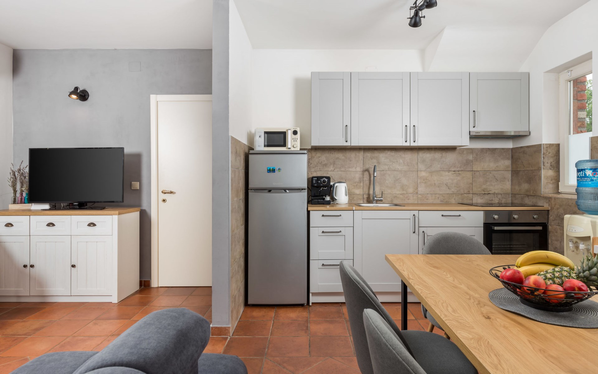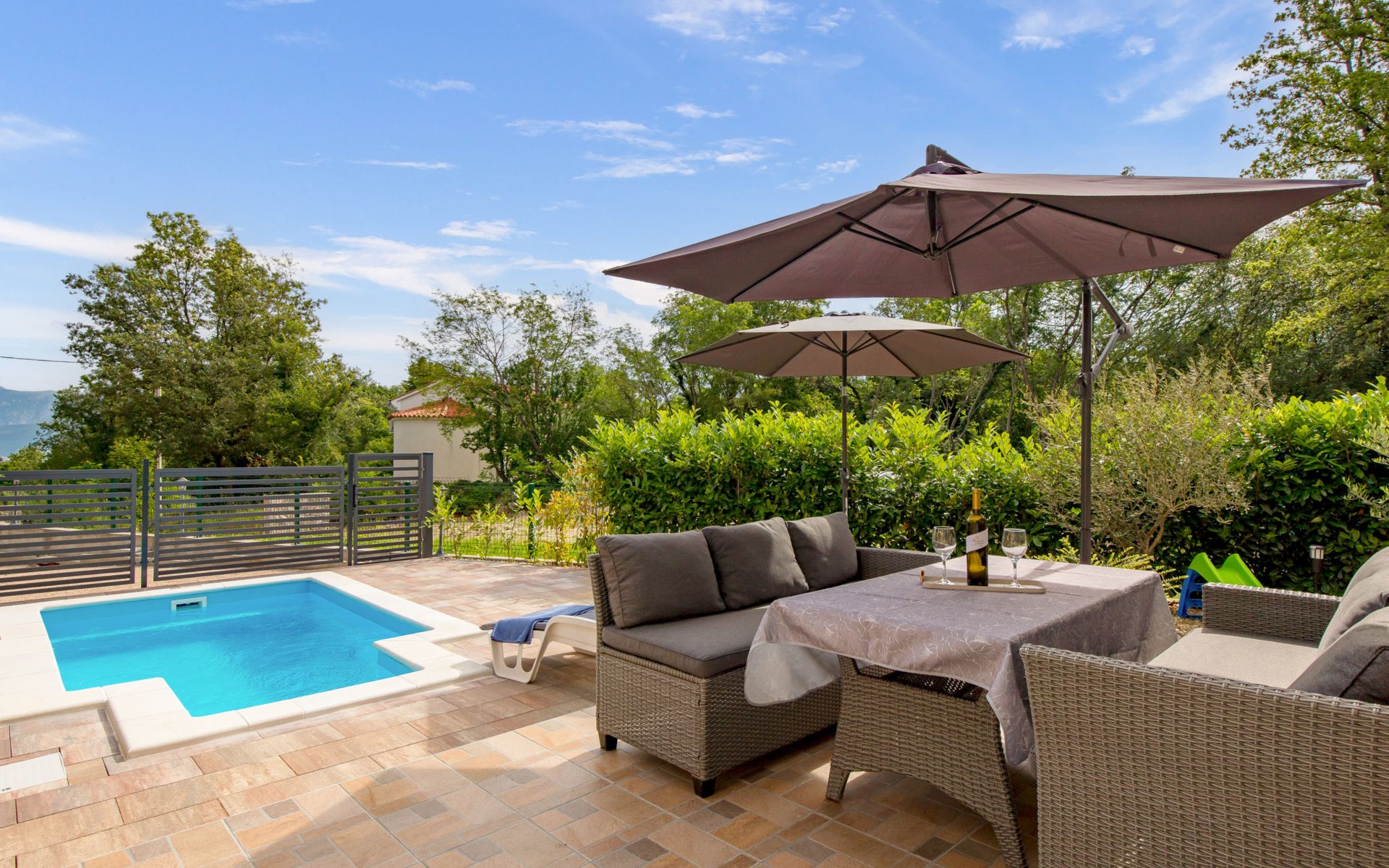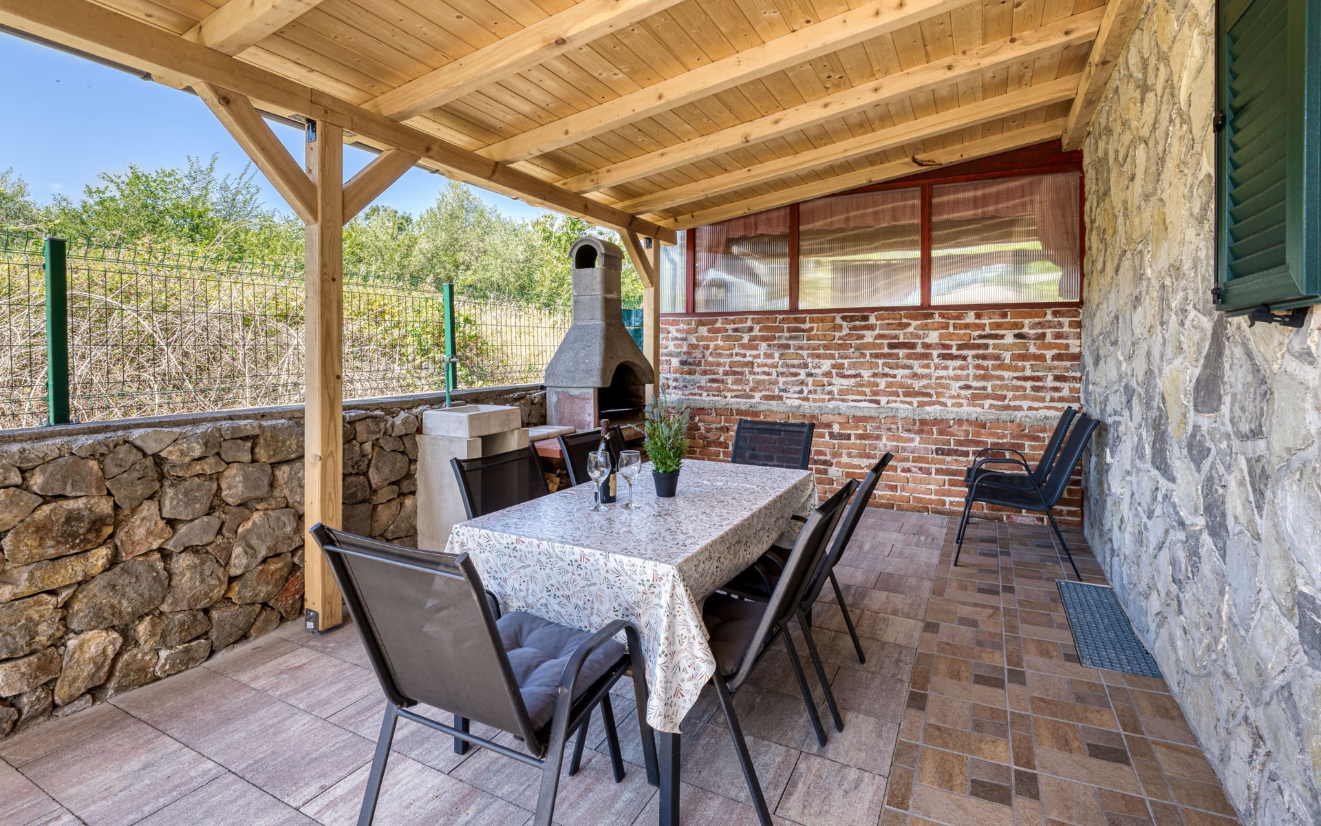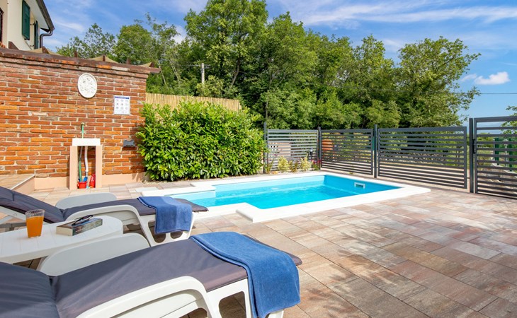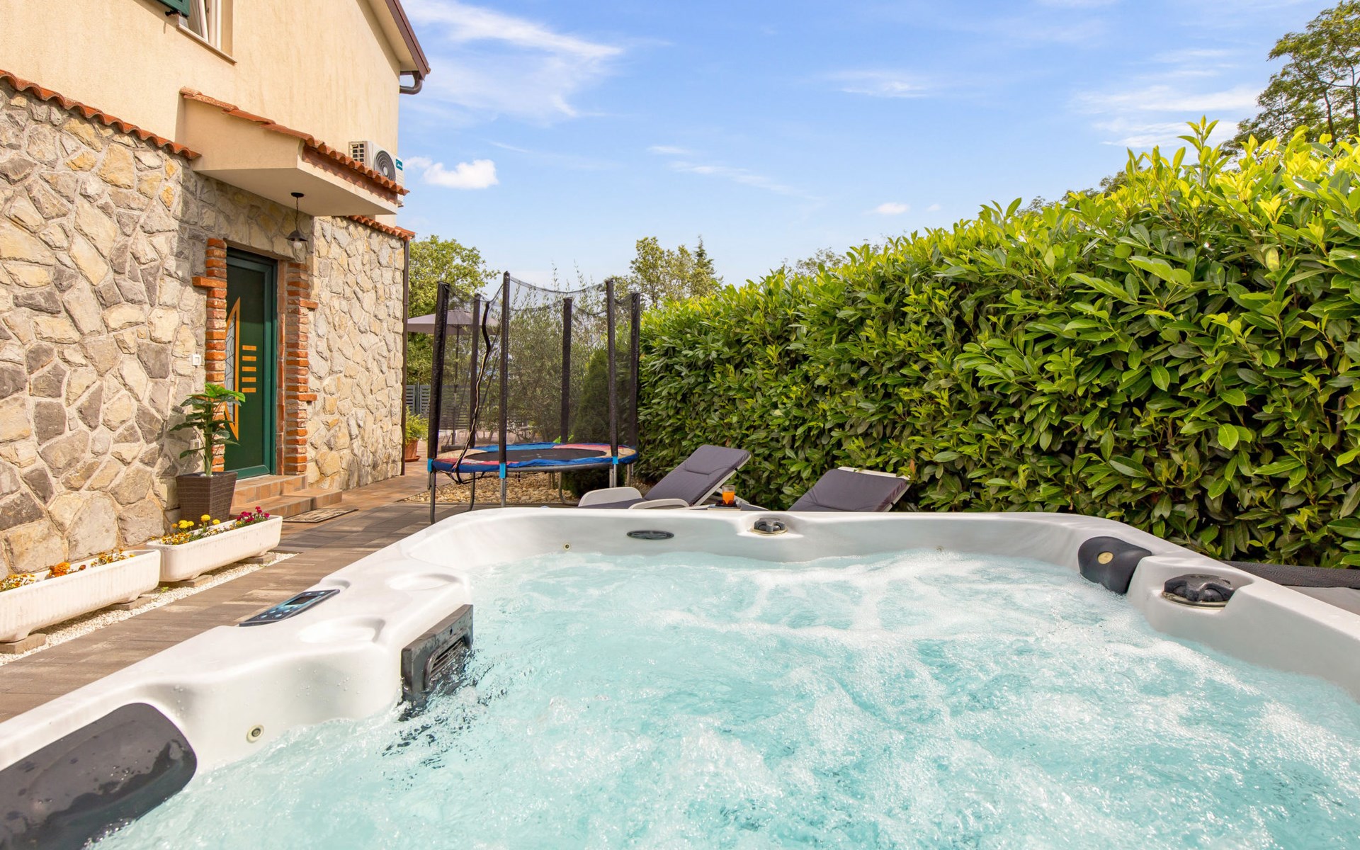 Gornja Hlapa 2 km van Dobrinj: Gezellige twee onder één kap woning "Villa Agnes", van 3 verdiepingen. 3 km van het centrum van Soline, 5 km van het centrum van Klimno, 12.5 km van het centrum van Malinska, rustige, zonnige ligging, 2.5 km van zee, 2.5 km van het strand, aan een doodlopende weg. Voor alleengebruik: terrein 360 m2 (omheind), tuin 270 m2 met bloemen en bomen, openluchtzwembad hoekig (12 m2, 120 cm diepte, seizoensgebonden beschikbaarheid: 01.Mei. - 30.Sep.) met trap. Buitendouche, hot tub, tuinmeubelen, barbecue, onderhoud zwembad door de eigenaar/tuinman. In het huis: internetaansluiting, tafelvoetbal, wasmachine. Parkeerplaats (voor 2 auto's) bij het huis op het terrein. Winkel 950 m, supermarkt 11 km, restaurant 950 m, bushalte 5.2 km, kiezelstrand 2.5 km, betonnen strand 2.5 km. Jachthaven 17 km, wandelroutes 200 m vanaf het huis, fietspad 250 m, kinderspeelplaats 2.3 km. Attracties in de buurt: Wakeboard Cable Krk 17 km, Diving club 17 km, Biserujka cave 8 km, Franciscan monastery island Košljun 17 km, The Frankopan castle Krk 16 km. Groepen jongeren uitsluitend op aanvraag.