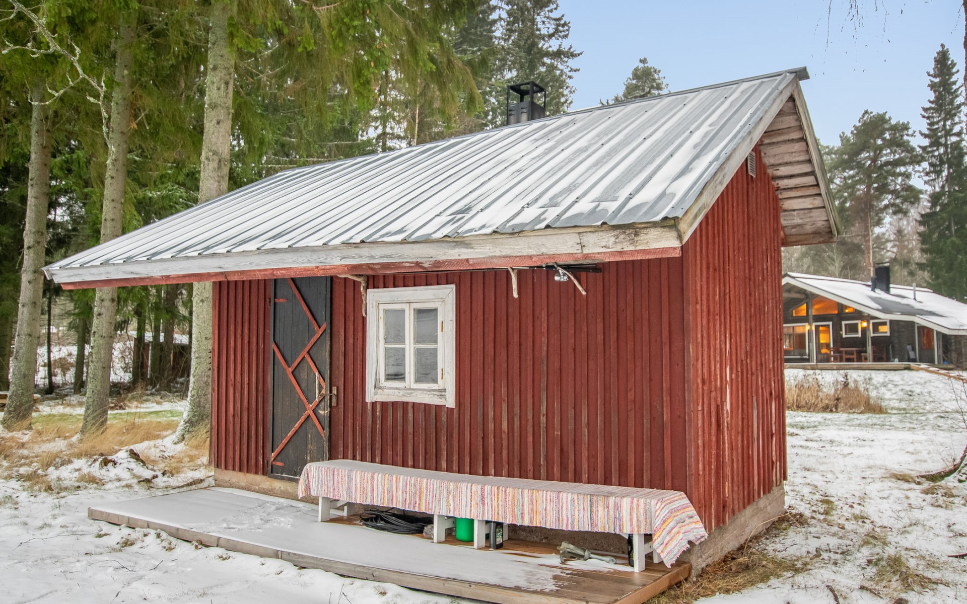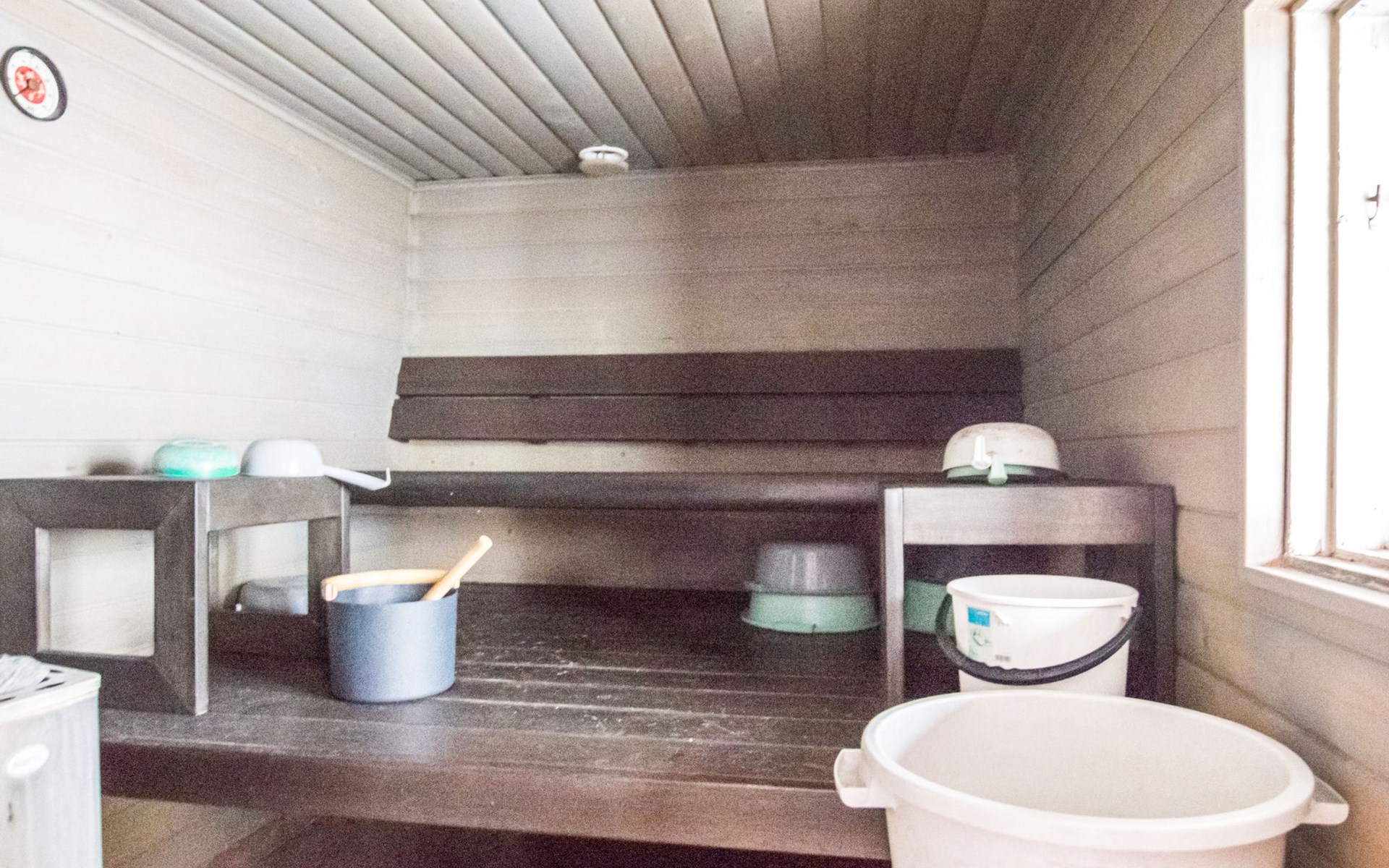 Separate sauna building, sauna has wood-fired stove, dressing room.
