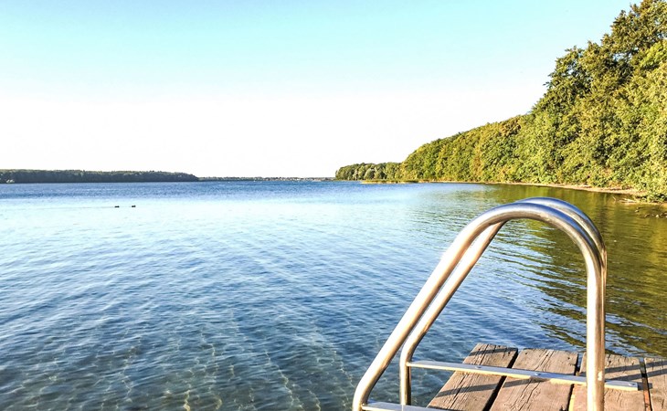 Vakantiecomplex "Lenzer Höh". 39 huizen in de plaats. 800 m van het centrum van Lenz, aan de rand van de plaats, 8 km van het centrum van Malchow, 15 km van het centrum van Plau am See, tegen een helling, 100 m van het meer. Voor medegebruik: terrein met gazon en bomen. Kinderspeelplaats. In het complex: tafeltennis, wasmachine, droger (voor medegebruik, extra), fietsverhuur. Centrale parkeerplaatsen. Winkel 8 km, supermarkt 8 km, bushalte "Fünfseen Lenzer Höh" 950 m, grasstrand 100 m. Manege 1 km. Attracties in de buurt: Kloster Malchow 8 km, Sommerrodelbahn & Affenwald 12 km.