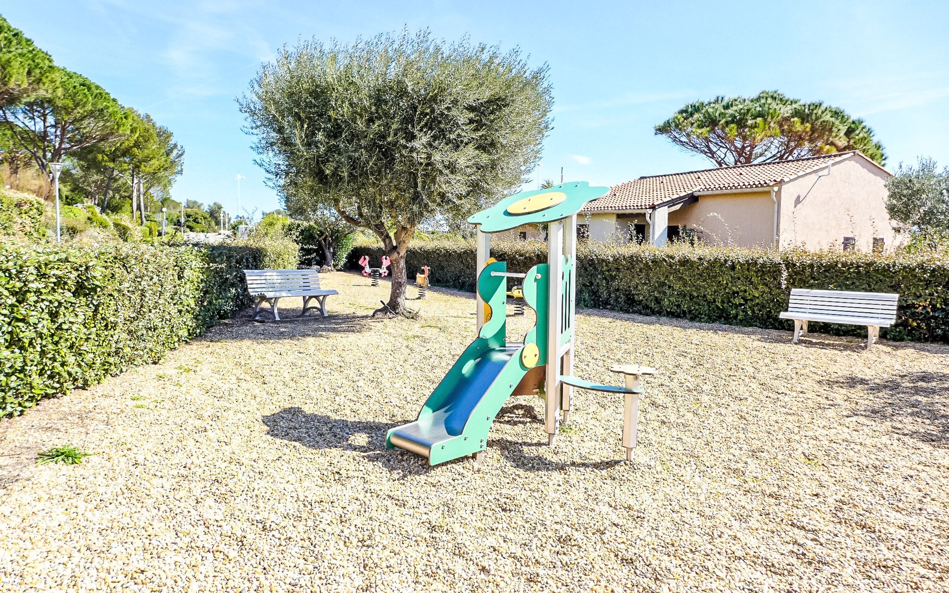 Shorts en bermuda's zijn verboden in de zwembaden. De appartementen op de begane grond zijn bereikbaar via een trap met 8 treden. Residentie "La Gaillarde". Aan de rand van de plaats, 2.5 km van het centrum van Saint Aygulf, 300 m van zee, 300 m van het strand. Voor medegebruik: 2 zwembaden (seizoensgebonden beschikbaarheid: 01.Mei. - 30.Sep. openingstijden zwembad: 09:30-21:00 en 10:30-21:00). Kinderzwembad, tennisbaan, jeu de boules, kinderspeelplaats, parkeerplaats. Winkel 2 km, levensmiddelenwinkel 300 m, supermarkt 2.5 km, winkelcentrum 7 km, bakkerij 300 m, centrum te voet bereikbaar in 15 minuten, bushalte "La Gaillarde" 450 m, zandstrand "La Gaillarde" 300 m, park "Aqualand" 7 km, duikschool 9 km, thermaalbad "Thalasso des Issambres" 6 km, meer St Cassien 45 km. Jachthaven 2 km, jachthaven 2 km, zeilschool 8 km, tennis 4 km, manege 6 km, sportcentrum 1.5 km, wandelroutes 2 km vanaf het huis. Attracties in de buurt: Lunapark, Aqualand 8 km, Fréjus 9 km, Saint Raphaël 10 km, St Tropez 29 km, Cannes 45 km. Bekende skigebieden kunnen gemakkelijk worden bereikt: Auron 150 km, Isola 2000 150 km. Bekende meren kunnen gemakkelijk worden bereikt: Lac de St Cassien 45 km, Lac du Du Verdon 90 km. Wandelgebied Petites Maures 2 km, Estérel 20 km, Sentier du Litoral 1 km. Geen lift. De sleuteloverdracht vindt plaats bij het agentschap Interhome in Saint Aygulf. Nachtclub/disco in de buurt.