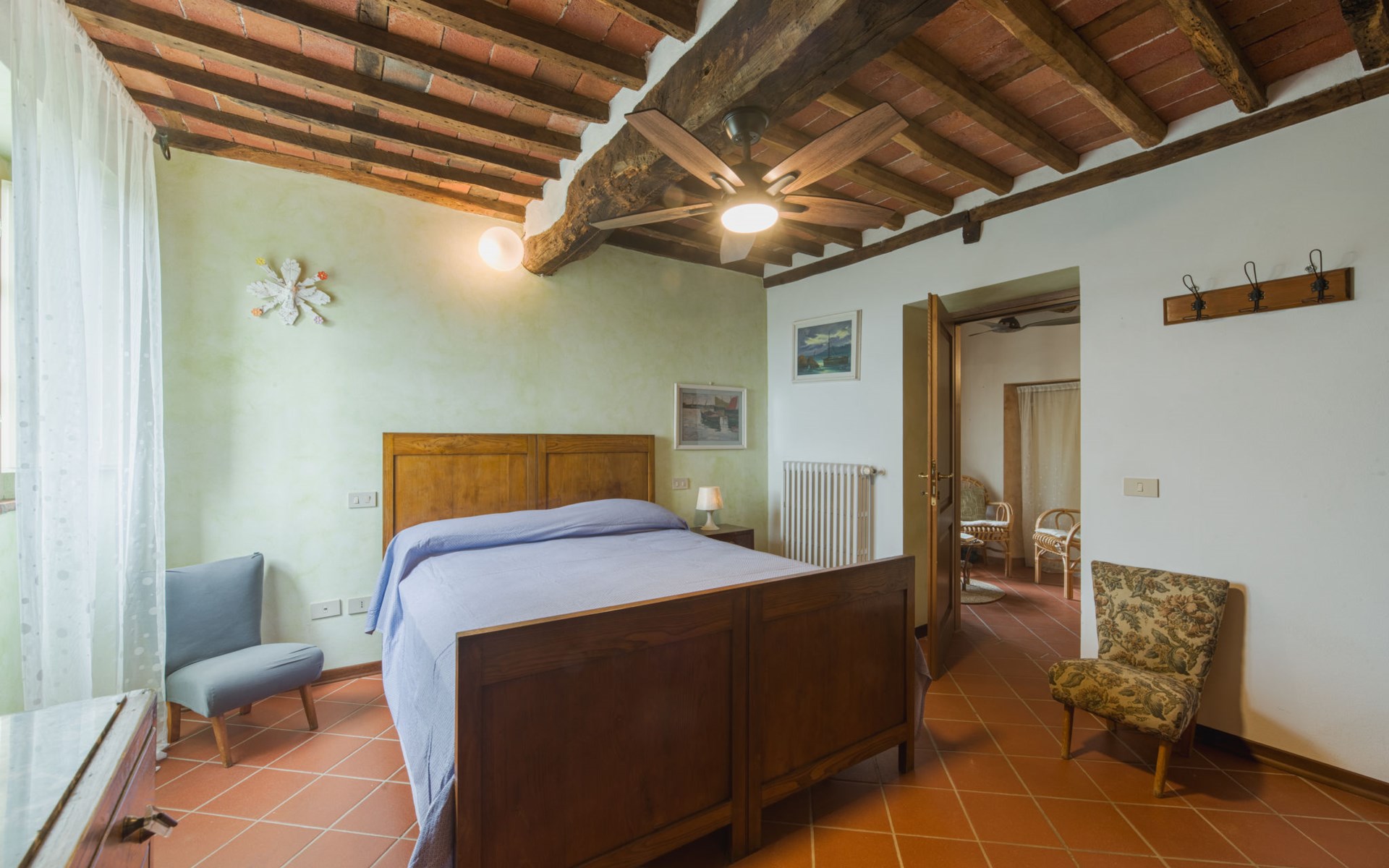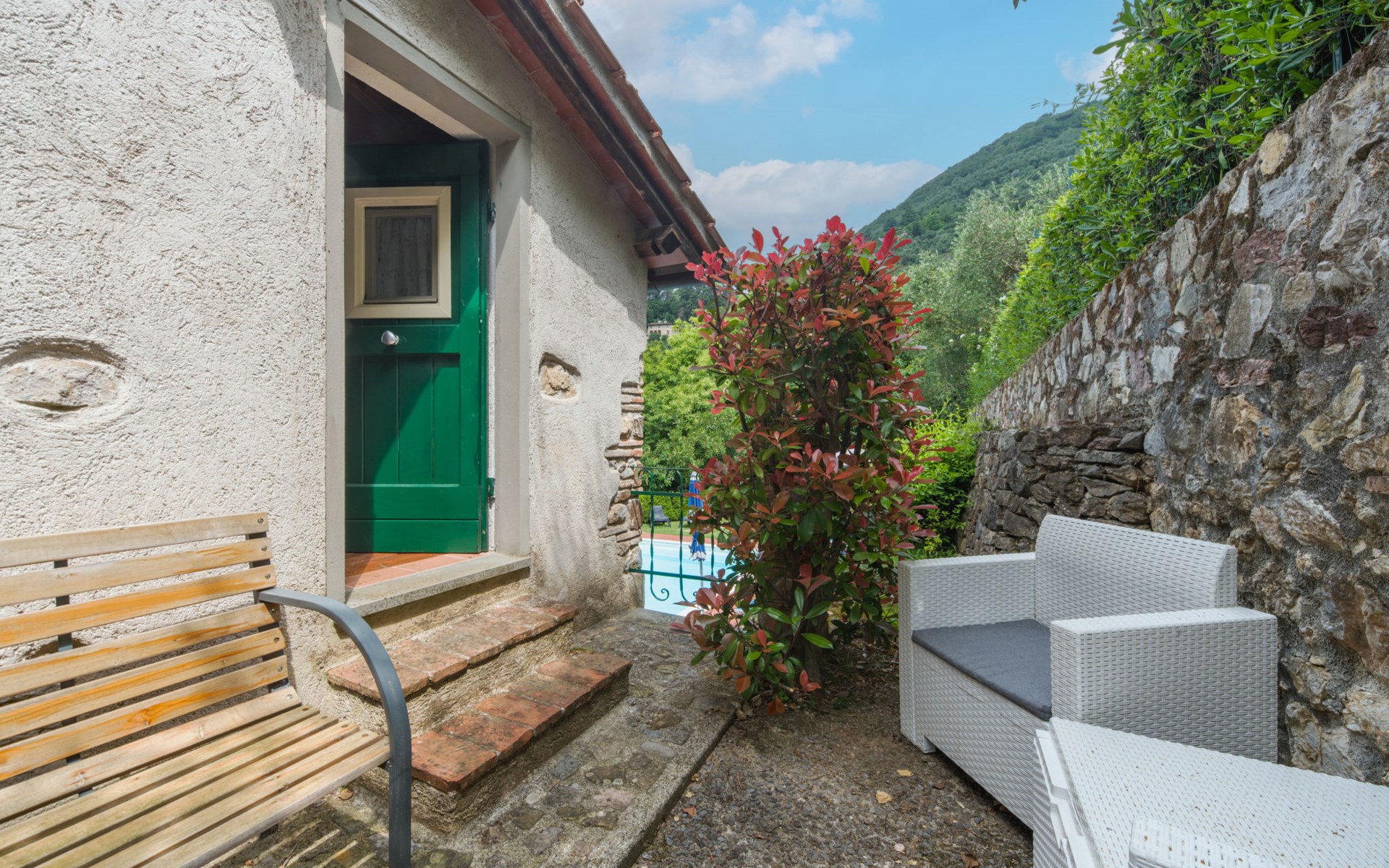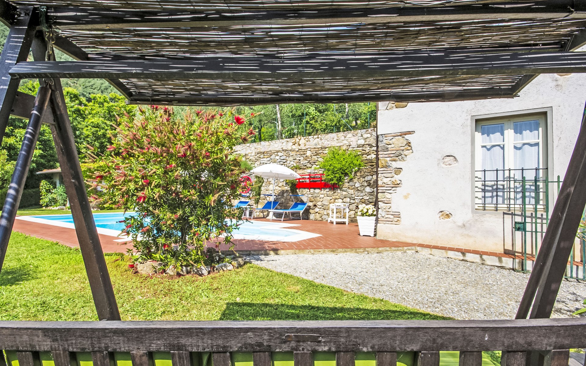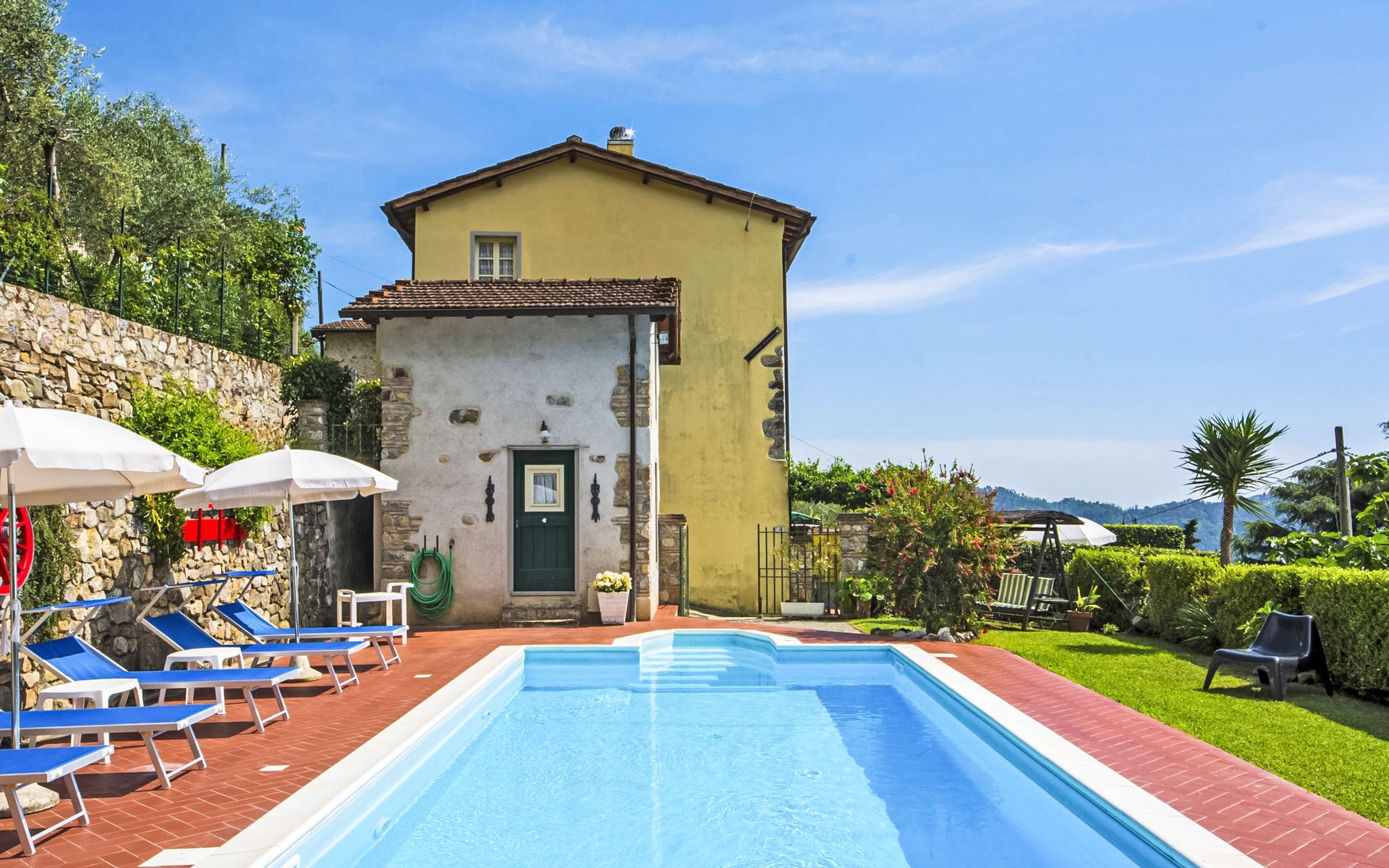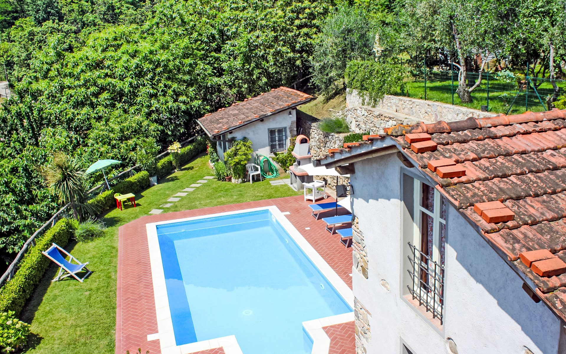 De structuur die wij voorstellen als een vrijstaand huis bestaat uit twee vastgoedeenheden, het hoofdgebouw en het bijgebouw. De twee eenheden communiceren alleen van buitenaf met elkaar. Kindvriendelijk, gezellig, rustieke rijtjeshuis "Casa di Nena", 300 m boven zeeniveau. Huurobject bestaande uit hoofd-/ bijgebouw, in het gehucht Salapreti, 3 km van het centrum van Camaiore, 11 km van het centrum van Viareggio, rustige, zonnige, verhoogde ligging op een heuvel, 11 km van zee, 11 km van het strand. Voor alleengebruik: tuin 18 m2 met gazon en bomen, wilde tuin, openluchtzwembad (8 x 4 m, 150 cm diepte, seizoensgebonden beschikbaarheid: 30.Apr. - 01.Okt.). Terras (12 m2), tuinmeubelen, barbecue. In het huis: wasmachine, verwarming alleen beschikbaar van 01.Nov. - 07.Apr.. Parkeerplaats (voor 3 auto's) bij het huis. Levensmiddelenwinkel 4 km, supermarkt 3 km, restaurant 3 km, bushalte 2 km, treinstation "Viareggio" 11 km, zandstrand 11 km, strandbad 11 km. Golfterrein (18 holes) 15 km, wandelroutes 1 km vanaf het huis. Attracties in de buurt: Lucca 28 km, Pisa 48 km, Firenze 109 km, Pietrasanta 15 km, Forte dei Marmi 15 km, Cinque Terre 65 km. Wandelgebied Sentieri Alpi Apuane 10 km. Auto noodzakelijk.