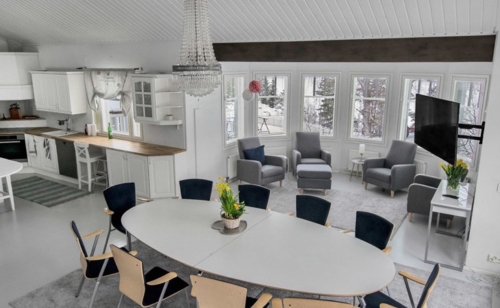 Vikdal is for eight persons at most. Any parties or other events where the maximum number of guests is temporarily exceed, must be agreed in advance with owner or Lomarengas.