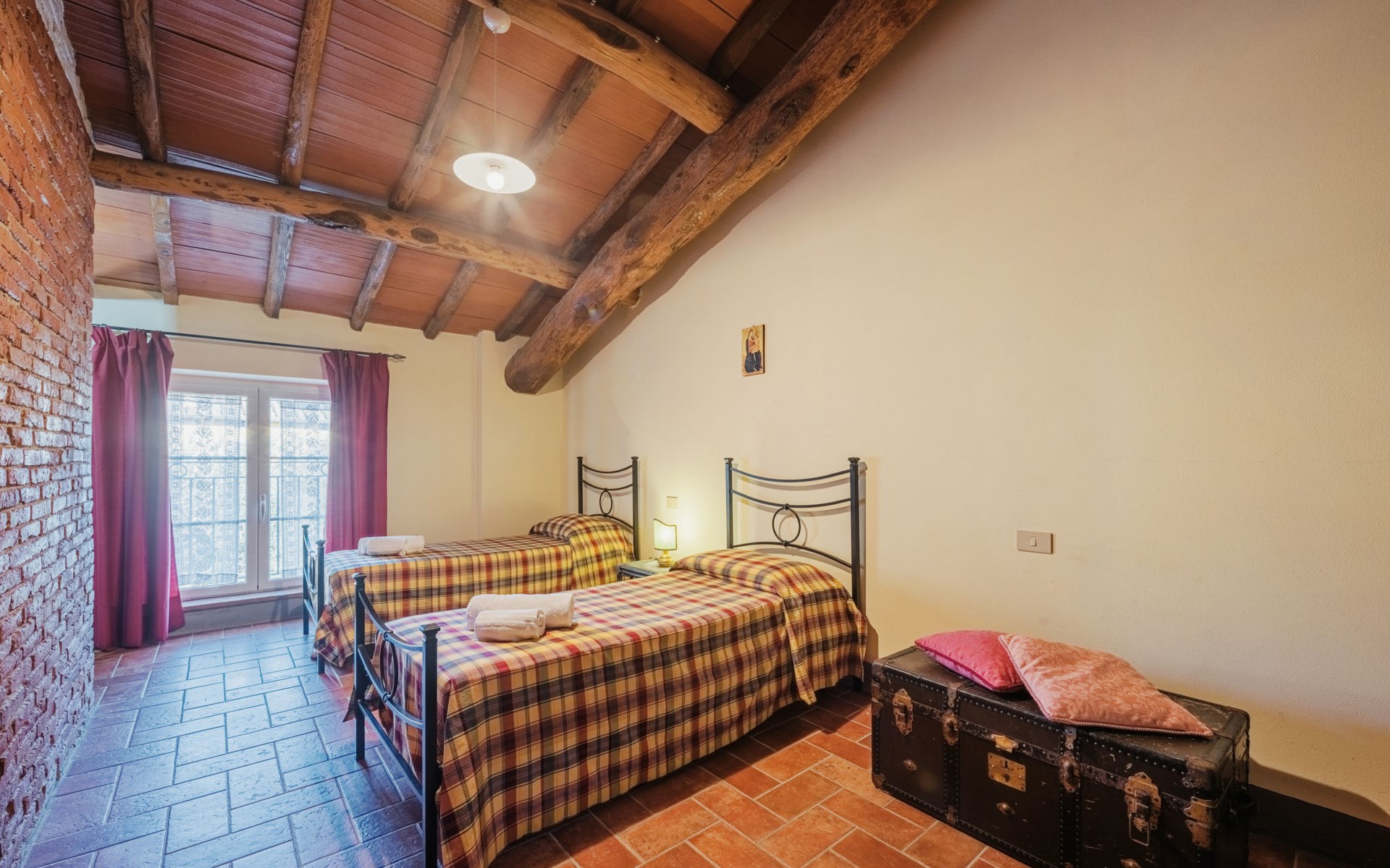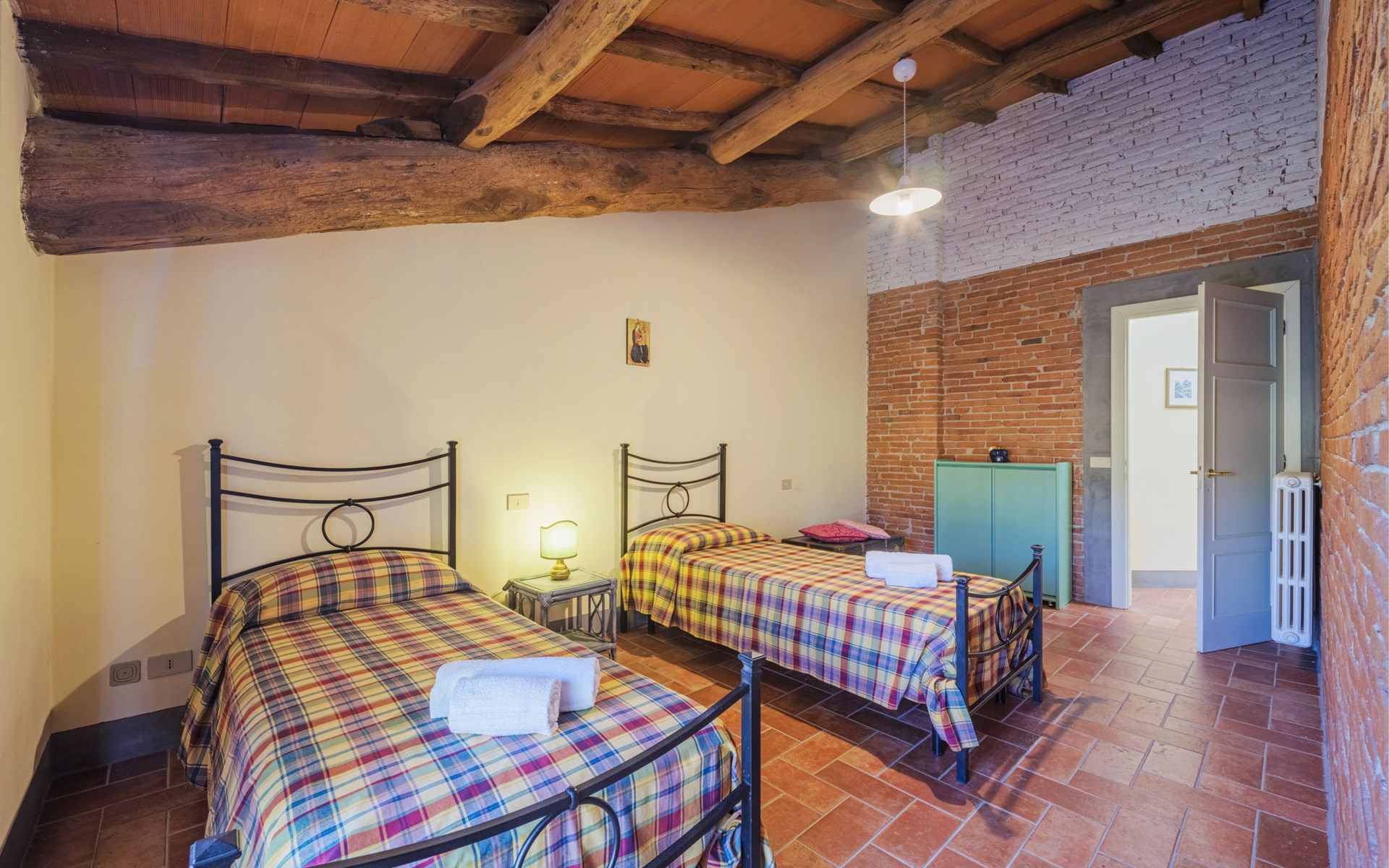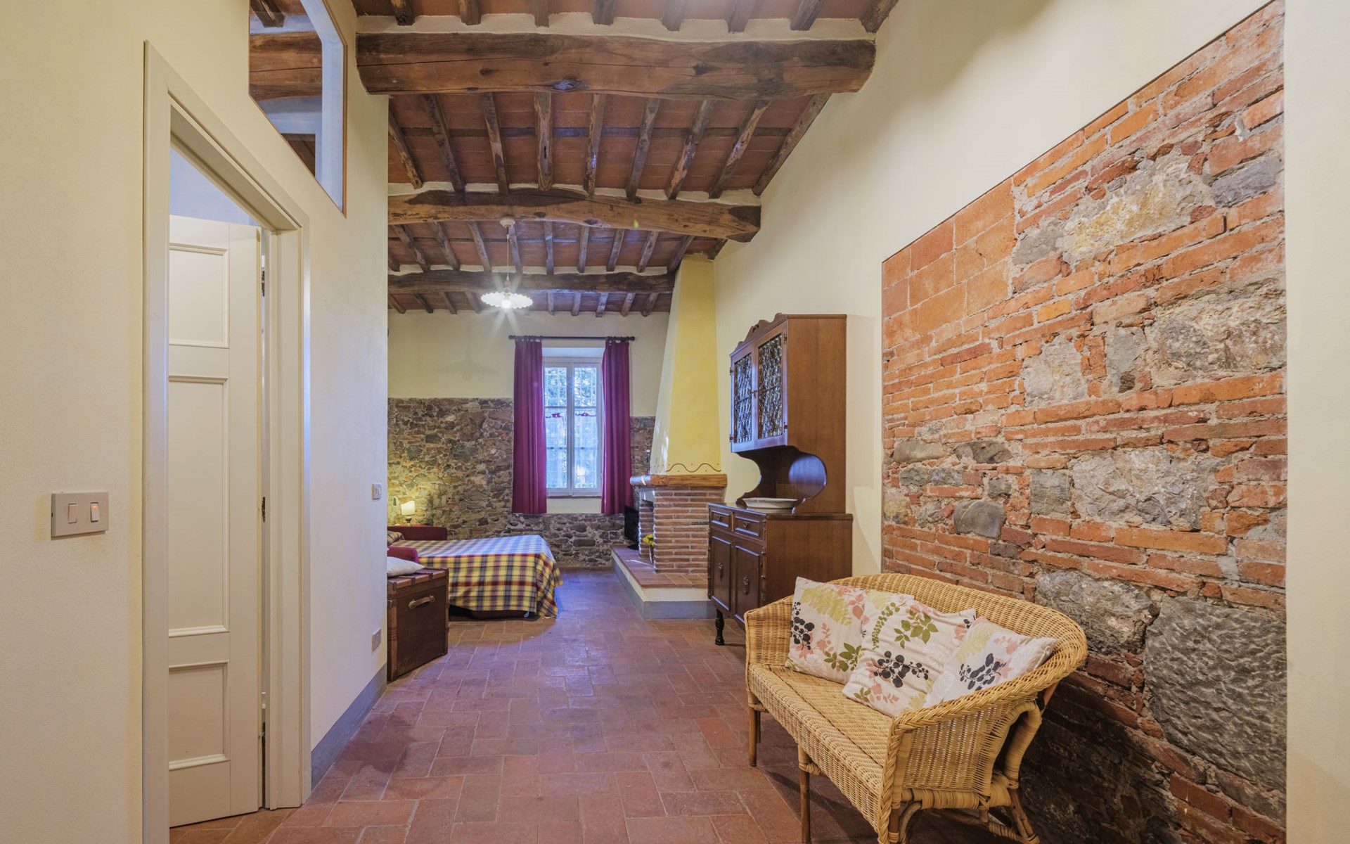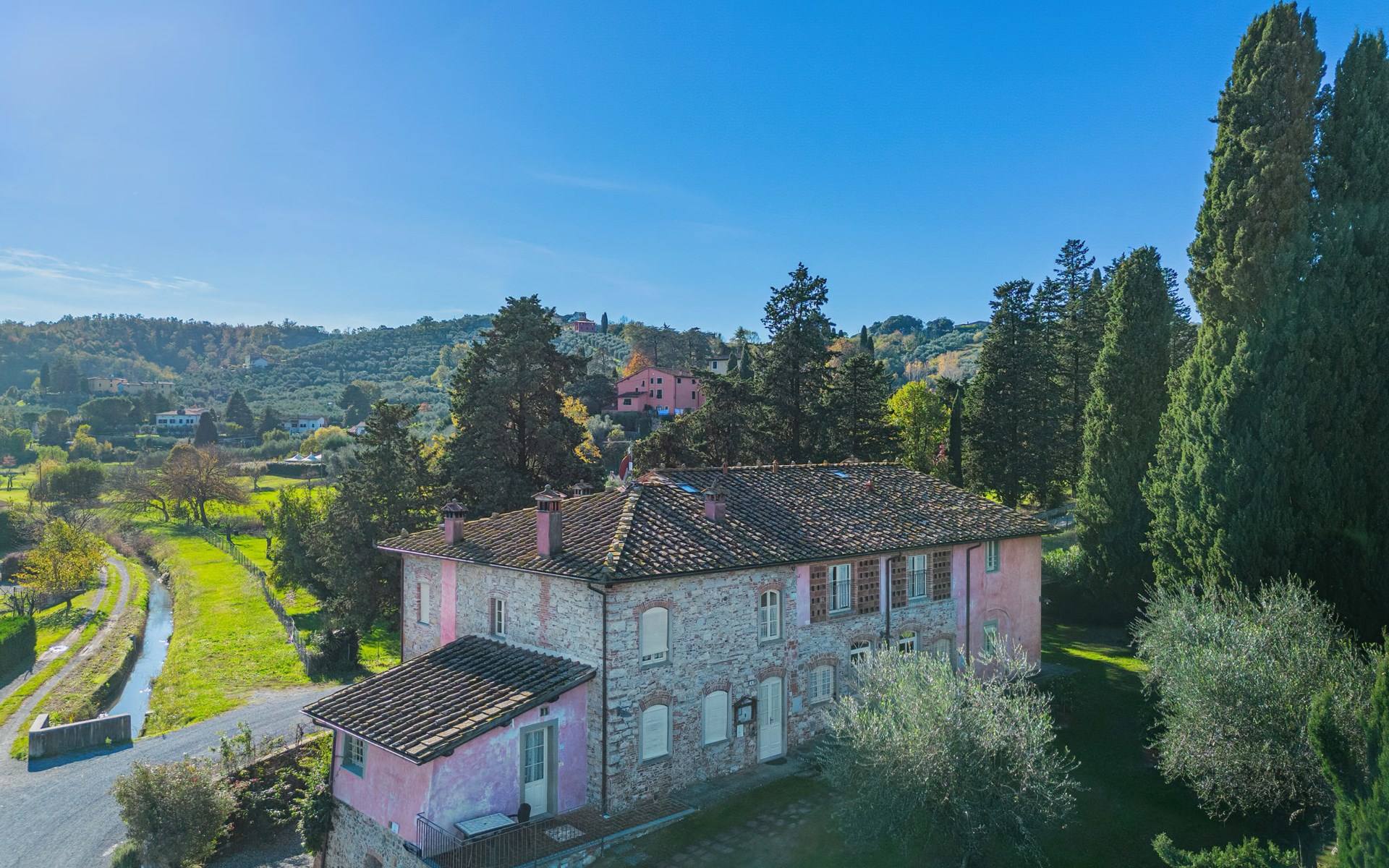 San Michele di Moriano: Zeer mooi landhuis "Le Fornaci", omgeven door bomen, weiden en velden. 7 appartementen in de woning. 500 m van het centrum van San Michele di Moriano, aan de rand van de plaats, 4.5 km van het centrum van Ponte a Moriano, 6 km van het centrum van Lucca, rustige, zonnige ligging, 35 km van zee, te midden van groen. Voor medegebruik: terrein 700 m2 (omheind), verzorgde tuin met planten en bomen, weide, boomgaard, openluchtzwembad (12 x 6 m, 100 - 140 cm diepte, seizoensgebonden beschikbaarheid: 16.Mei. - 10.Okt. openingstijden zwembad: 08:00-20:00). Tafeltennis, jeu de boules, tuinmeubelen. In het huis: salon met TV, tafelvoetbal, centrale verwarming, air-conditioning, wasmachine (voor medegebruik), Verwarming ter plaatse te betalen (28.Mrt. - 31.Okt.), verwarming alleen beschikbaar van 01.Nov. - 27.Mrt., fietsen beschikbaar. 200 m lange toegangsweg (onverharde weg). Parkeerplaats op het terrein. Supermarkt 2.7 km, bushalte 1 km, zandstrand "Viareggio" 35 km. Attracties in de buurt: Pisa 26 km, Collodi Pinocchio Park 18 km, Viareggio 33 km, Montecatini Terme 38 km, San Giuliano Terme 20 km, Firenze 82 km. Bekende meren kunnen gemakkelijk worden bereikt: Torre del Lago 35 km, Lago di Massaciuccoli 25 km. Wandelgebied Antro del Corchia Levigliani 57 km, Botri Canyion dell´Orrido 34 km, Grotta del Vento Fabbriche di Vergemoli 42 km. Auto noodzakelijk. Lokale verkoop van streekproducten.