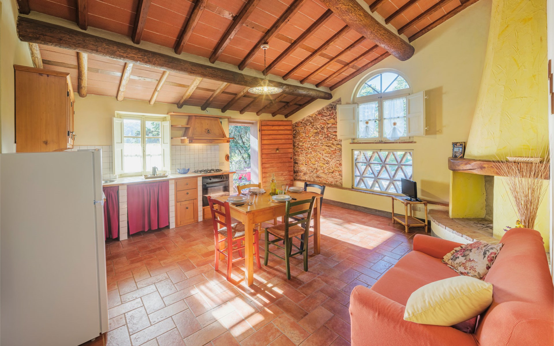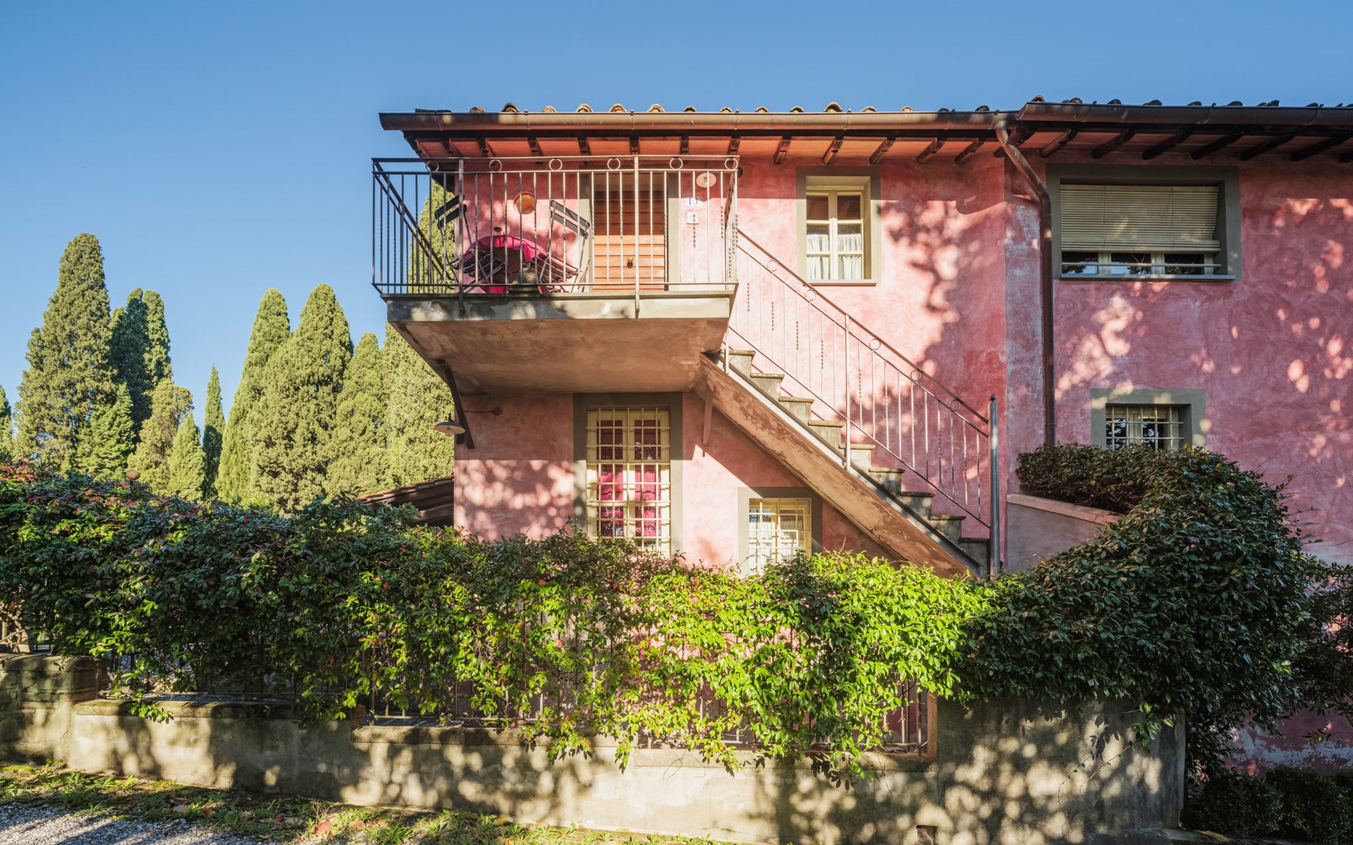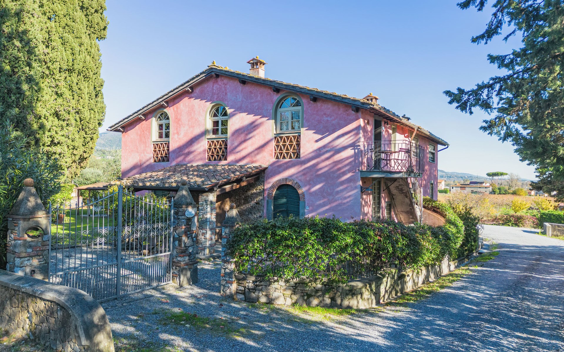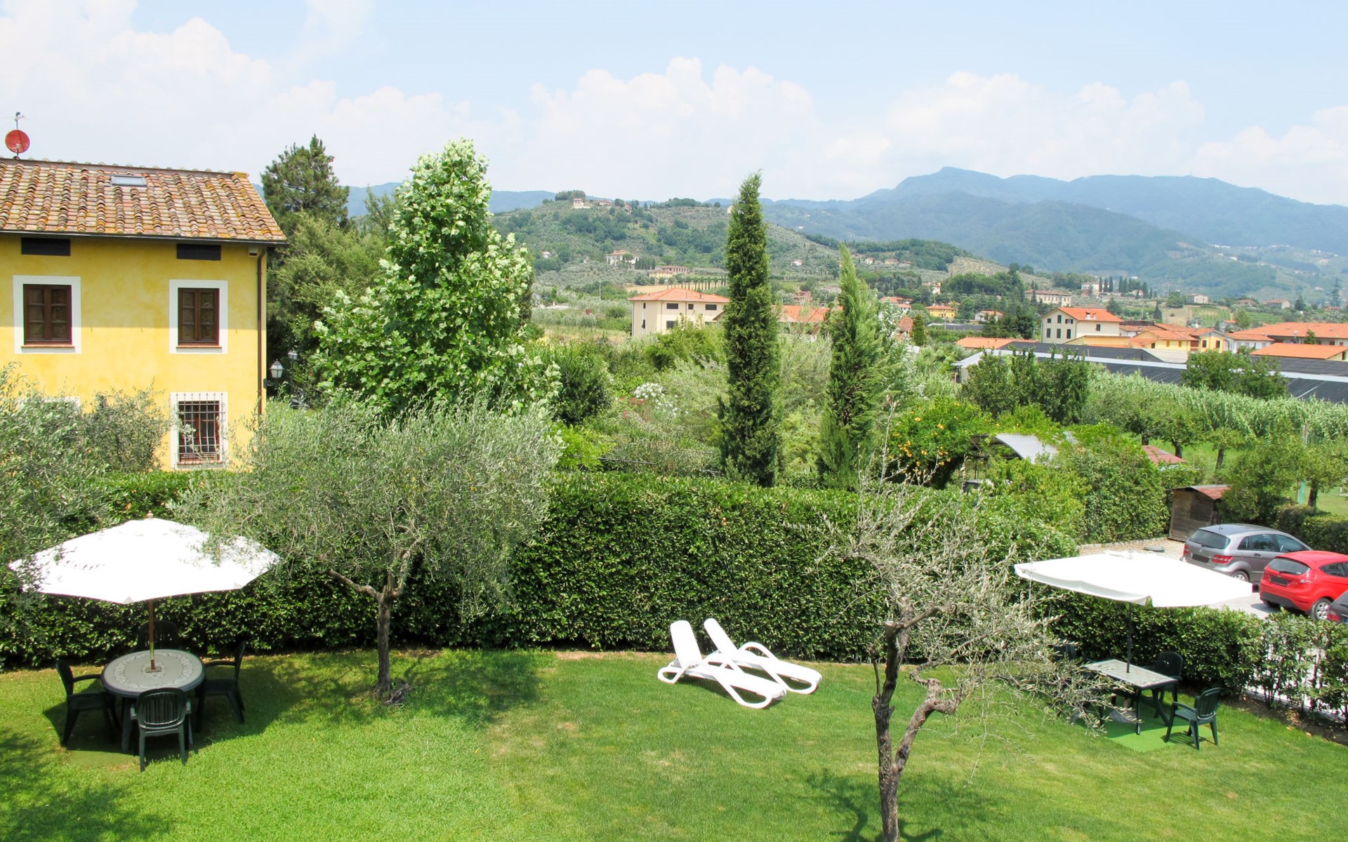 San Michele di Moriano: Zeer mooi landhuis "Le Fornaci", omgeven door bomen, weiden en velden. 7 appartementen in de woning. 500 m van het centrum van San Michele di Moriano, aan de rand van de plaats, 4.5 km van het centrum van Ponte a Moriano, 6 km van het centrum van Lucca, rustige, zonnige ligging, 35 km van zee, te midden van groen. Voor medegebruik: terrein 700 m2 (omheind), verzorgde tuin met planten en bomen, weide, boomgaard, openluchtzwembad (12 x 6 m, 100 - 140 cm diepte, seizoensgebonden beschikbaarheid: 16.Mei. - 10.Okt. openingstijden zwembad: 08:00-20:00). Tafeltennis, jeu de boules, tuinmeubelen. In het huis: salon met TV, tafelvoetbal, centrale verwarming, air-conditioning, wasmachine (voor medegebruik), Verwarming ter plaatse te betalen (28.Mrt. - 31.Okt.), verwarming alleen beschikbaar van 01.Nov. - 27.Mrt., fietsen beschikbaar. 200 m lange toegangsweg (onverharde weg). Parkeerplaats op het terrein. Supermarkt 2.7 km, bushalte 1 km, zandstrand "Viareggio" 35 km. Attracties in de buurt: Pisa 26 km, Collodi Pinocchio Park 18 km, Viareggio 33 km, Montecatini Terme 38 km, San Giuliano Terme 20 km, Firenze 82 km. Bekende meren kunnen gemakkelijk worden bereikt: Torre del Lago 35 km, Lago di Massaciuccoli 25 km. Wandelgebied Antro del Corchia Levigliani 57 km, Botri Canyion dell´Orrido 34 km, Grotta del Vento Fabbriche di Vergemoli 42 km. Auto noodzakelijk. Lokale verkoop van streekproducten.