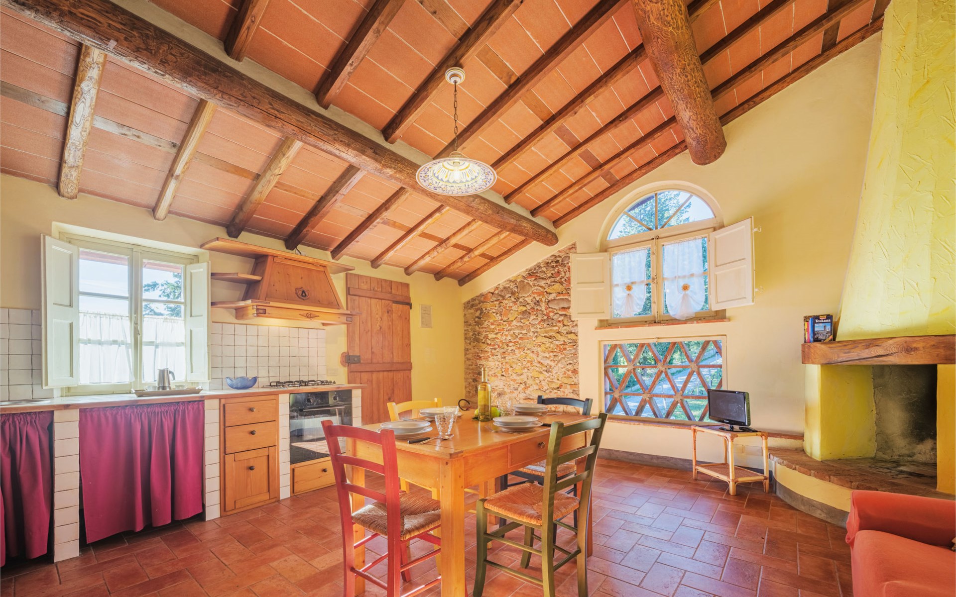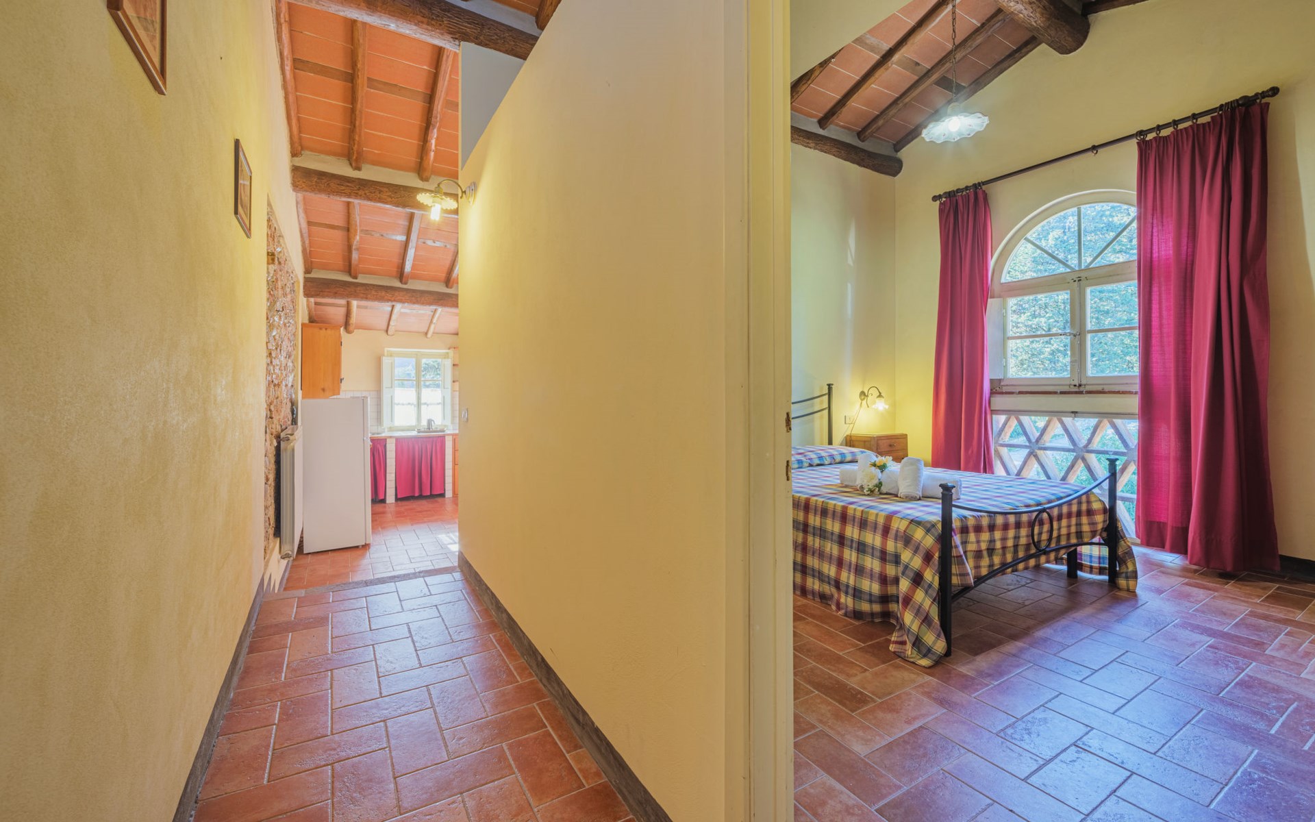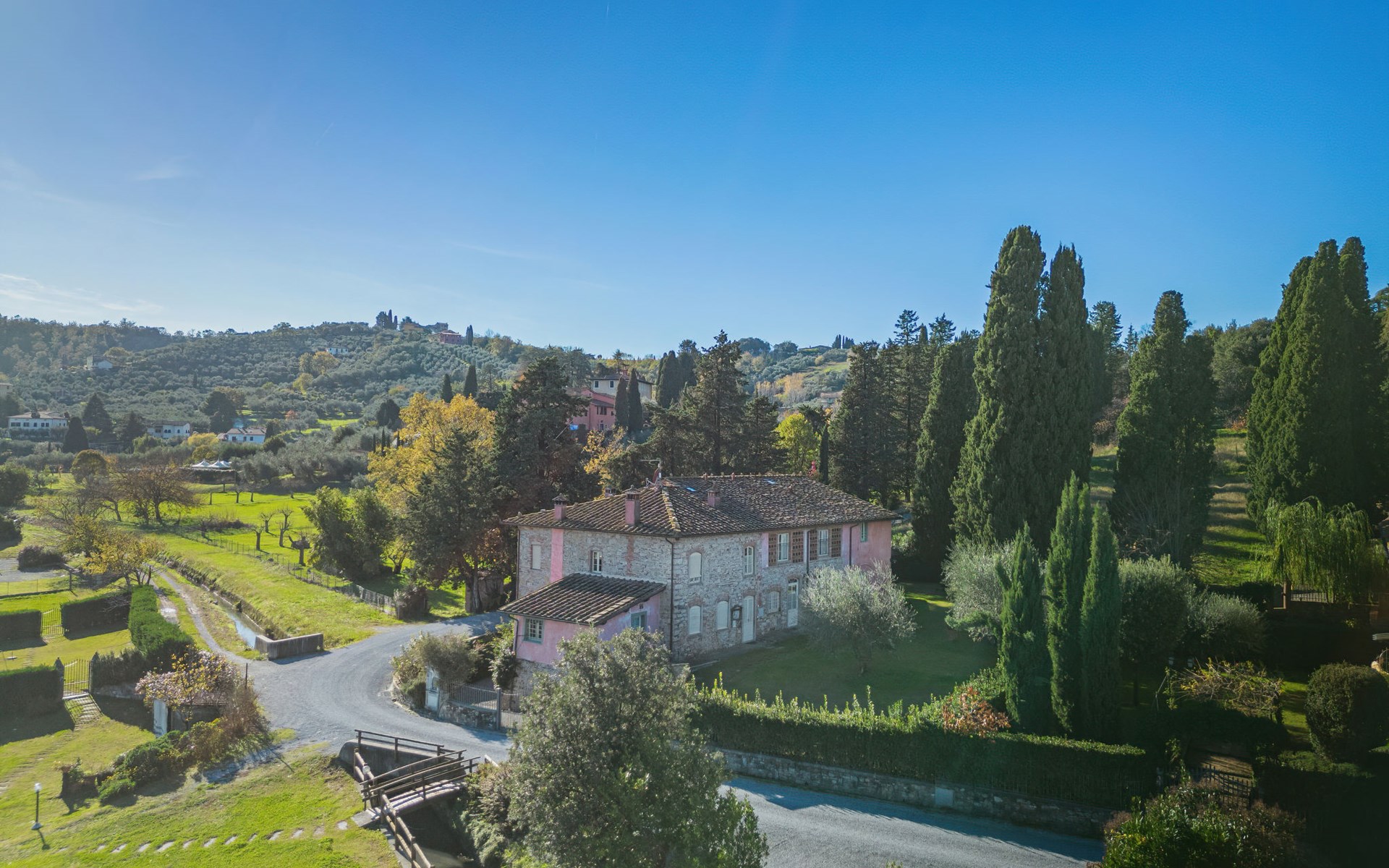 San Michele di Moriano: Zeer mooi landhuis "Le Fornaci", omgeven door bomen, weiden en velden. 7 appartementen in de woning. 500 m van het centrum van San Michele di Moriano, aan de rand van de plaats, 4.5 km van het centrum van Ponte a Moriano, 6 km van het centrum van Lucca, rustige, zonnige ligging, 35 km van zee, te midden van groen. Voor medegebruik: terrein 700 m2 (omheind), verzorgde tuin met planten en bomen, weide, boomgaard, openluchtzwembad (12 x 6 m, 100 - 140 cm diepte, seizoensgebonden beschikbaarheid: 16.Mei. - 10.Okt. openingstijden zwembad: 08:00-20:00). Tafeltennis, jeu de boules, tuinmeubelen. In het huis: salon met TV, tafelvoetbal, centrale verwarming, air-conditioning, wasmachine (voor medegebruik), Verwarming ter plaatse te betalen (28.Mrt. - 31.Okt.), verwarming alleen beschikbaar van 01.Nov. - 27.Mrt., fietsen beschikbaar. 200 m lange toegangsweg (onverharde weg). Parkeerplaats op het terrein. Supermarkt 2.7 km, bushalte 1 km, zandstrand "Viareggio" 35 km. Attracties in de buurt: Pisa 26 km, Collodi Pinocchio Park 18 km, Viareggio 33 km, Montecatini Terme 38 km, San Giuliano Terme 20 km, Firenze 82 km. Bekende meren kunnen gemakkelijk worden bereikt: Torre del Lago 35 km, Lago di Massaciuccoli 25 km. Wandelgebied Antro del Corchia Levigliani 57 km, Botri Canyion dell´Orrido 34 km, Grotta del Vento Fabbriche di Vergemoli 42 km. Auto noodzakelijk. Lokale verkoop van streekproducten.