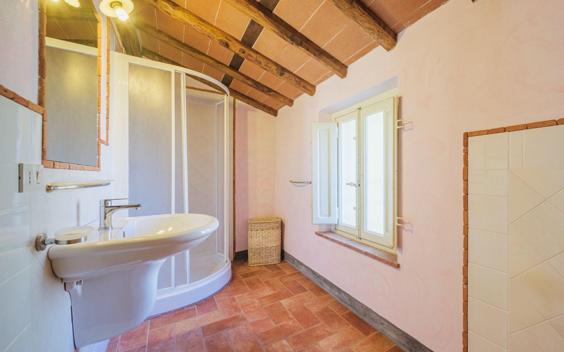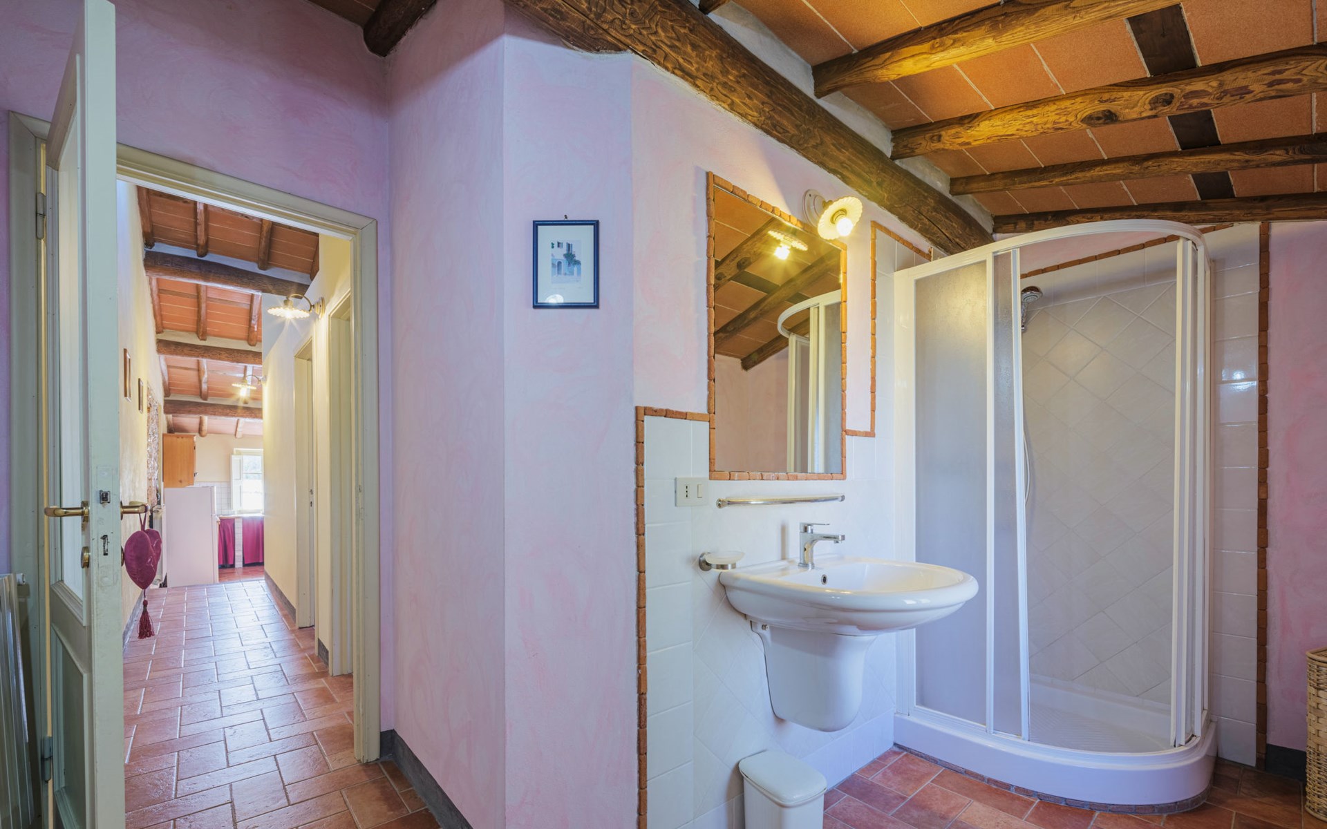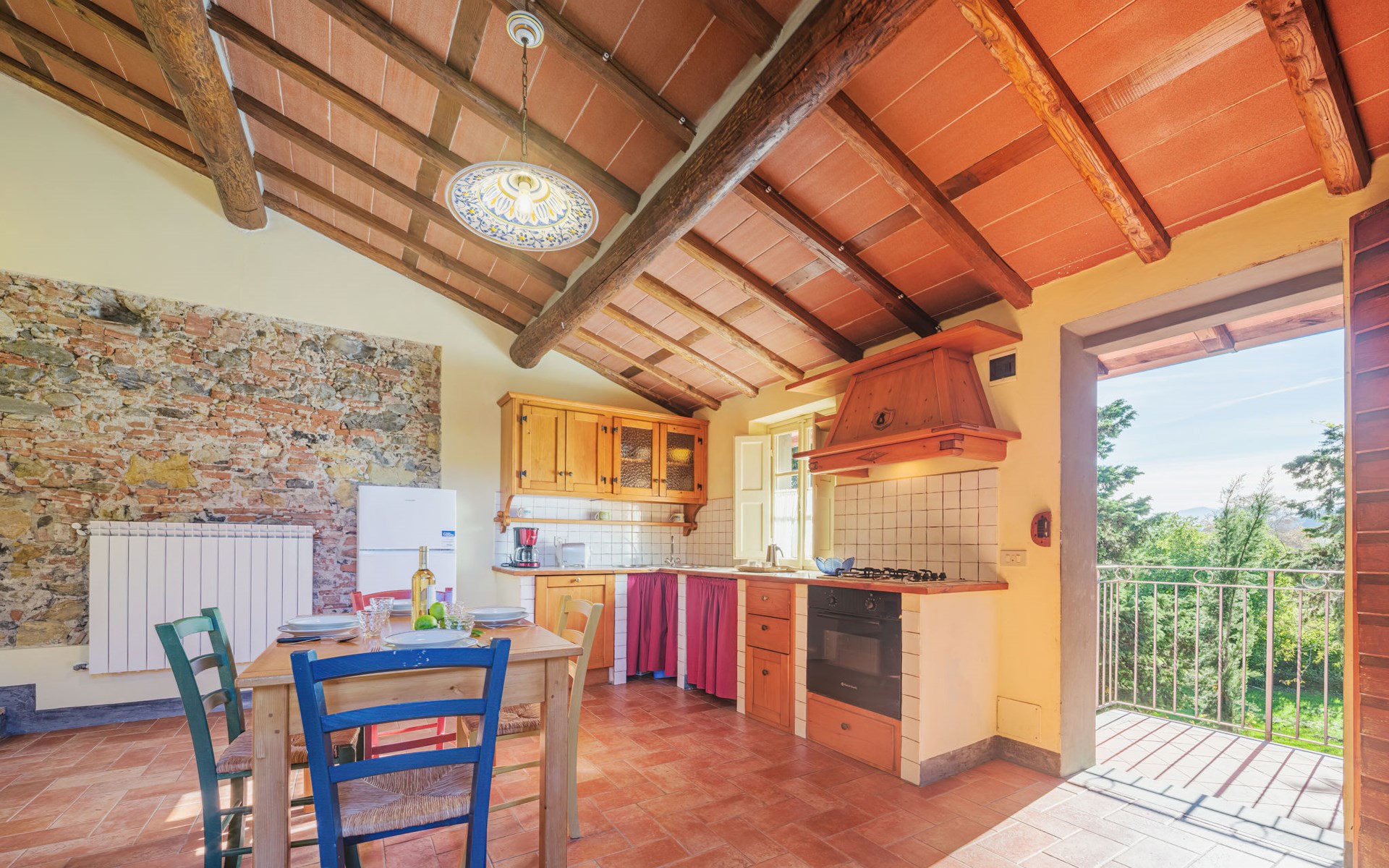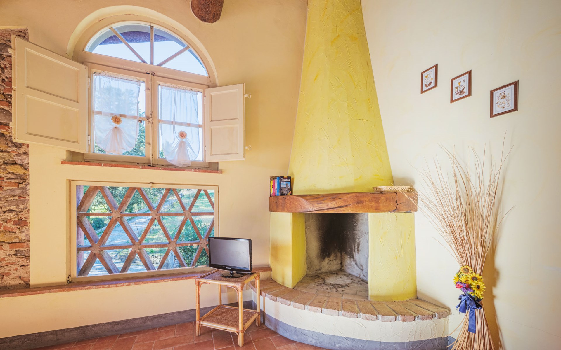 San Michele di Moriano: Zeer mooi landhuis "Le Fornaci", omgeven door bomen, weiden en velden. 7 appartementen in de woning. 500 m van het centrum van San Michele di Moriano, aan de rand van de plaats, 4.5 km van het centrum van Ponte a Moriano, 6 km van het centrum van Lucca, rustige, zonnige ligging, 35 km van zee, te midden van groen. Voor medegebruik: terrein 700 m2 (omheind), verzorgde tuin met planten en bomen, weide, boomgaard, openluchtzwembad (12 x 6 m, 100 - 140 cm diepte, seizoensgebonden beschikbaarheid: 16.Mei. - 10.Okt. openingstijden zwembad: 08:00-20:00). Tafeltennis, jeu de boules, tuinmeubelen. In het huis: salon met TV, tafelvoetbal, centrale verwarming, air-conditioning, wasmachine (voor medegebruik), Verwarming ter plaatse te betalen (28.Mrt. - 31.Okt.), verwarming alleen beschikbaar van 01.Nov. - 27.Mrt., fietsen beschikbaar. 200 m lange toegangsweg (onverharde weg). Parkeerplaats op het terrein. Supermarkt 2.7 km, bushalte 1 km, zandstrand "Viareggio" 35 km. Attracties in de buurt: Pisa 26 km, Collodi Pinocchio Park 18 km, Viareggio 33 km, Montecatini Terme 38 km, San Giuliano Terme 20 km, Firenze 82 km. Bekende meren kunnen gemakkelijk worden bereikt: Torre del Lago 35 km, Lago di Massaciuccoli 25 km. Wandelgebied Antro del Corchia Levigliani 57 km, Botri Canyion dell´Orrido 34 km, Grotta del Vento Fabbriche di Vergemoli 42 km. Auto noodzakelijk. Lokale verkoop van streekproducten.