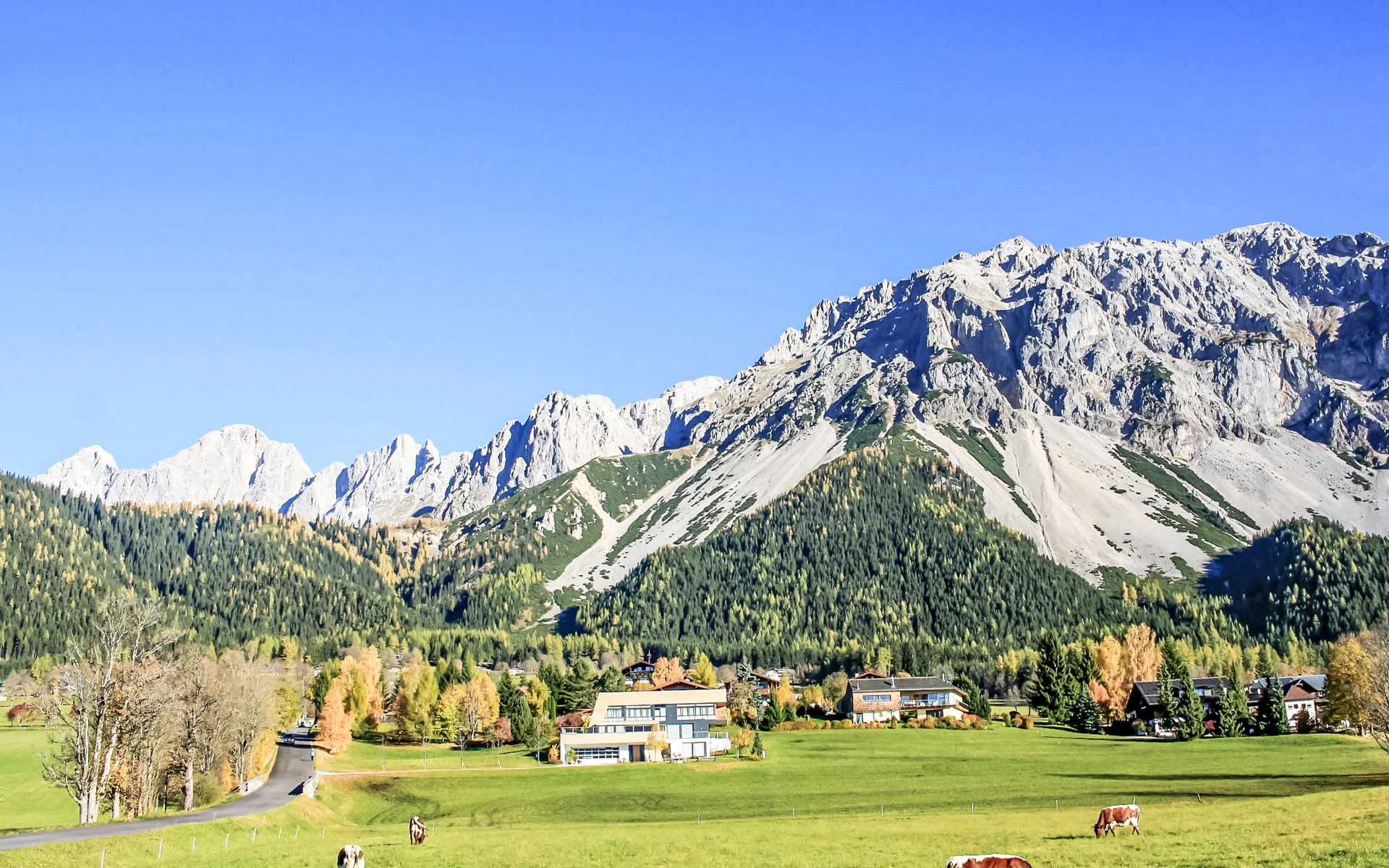 Ramsau am Dachstein: Gezellig, comfortabel landhuis "Berghaus Weitblick". In de wijk Vorberg, 2.3 km van het centrum, rustige ligging tegen een helling, 2.4 km van het meer, 1.2 km van het skigebied, te midden van groen. Voor alleengebruik: wild terrein 1.300 m2 met ligweide. Terras, tuinmeubelen, barbecue, stookplaats. In het huis: Internet (WiFi), sauna, berging voor ski's, wasmachine. Smalle toegangsweg tot aan het huis. In de winter sneeuwkettingen aanbevolen. Parkeerplaats (voor 3 auto's) op het terrein. Winkel 2 km, restaurant 900 m, bushalte "Ramsau Vorberg Panorama" 550 m, meer (zwemmen) "Ramsau Beach" 2.4 km. Manege 2 km, sportcentrum 3.2 km, wandelroutes 1 m vanaf het huis, skilift 1.4 km, kabelbaan op 10 km, skiverhuur 2 km, skibushalte 300 m, skischool 1.4 km, langlaufloipe 350 m. Attracties in de buurt: nordisches Leistungszentrum Ramsau 3.2 km, Dachstein Gletscherbahn 9 km. Bekende skigebieden kunnen gemakkelijk worden bereikt: Hauser Kaibling 8 km, Schladming Planai 10 km, Dachstein 9 km. Wandelgebied Fageralm, Reiteralm.