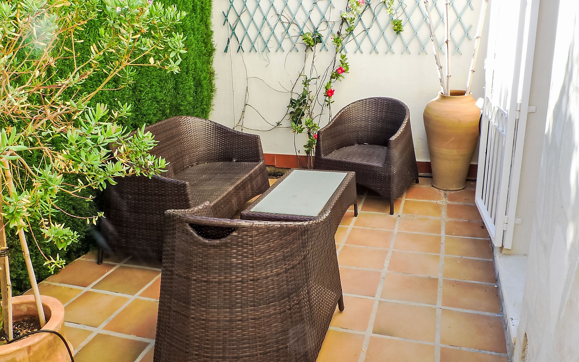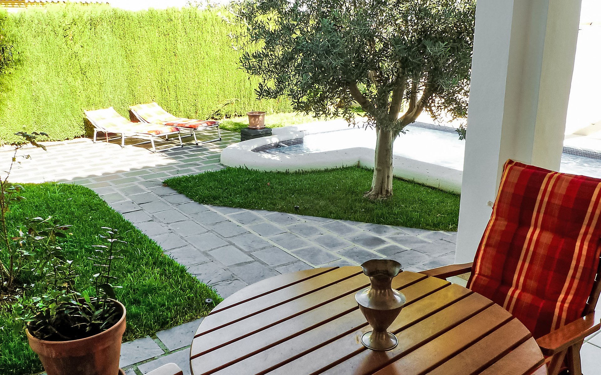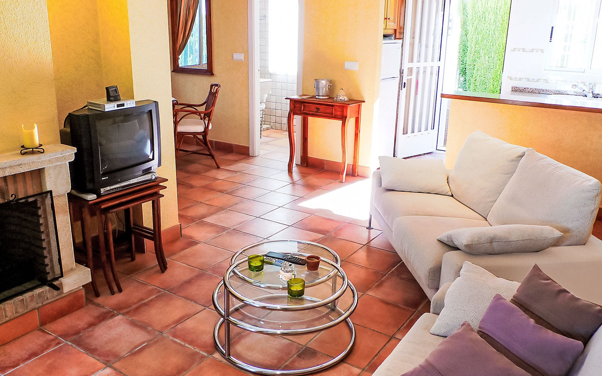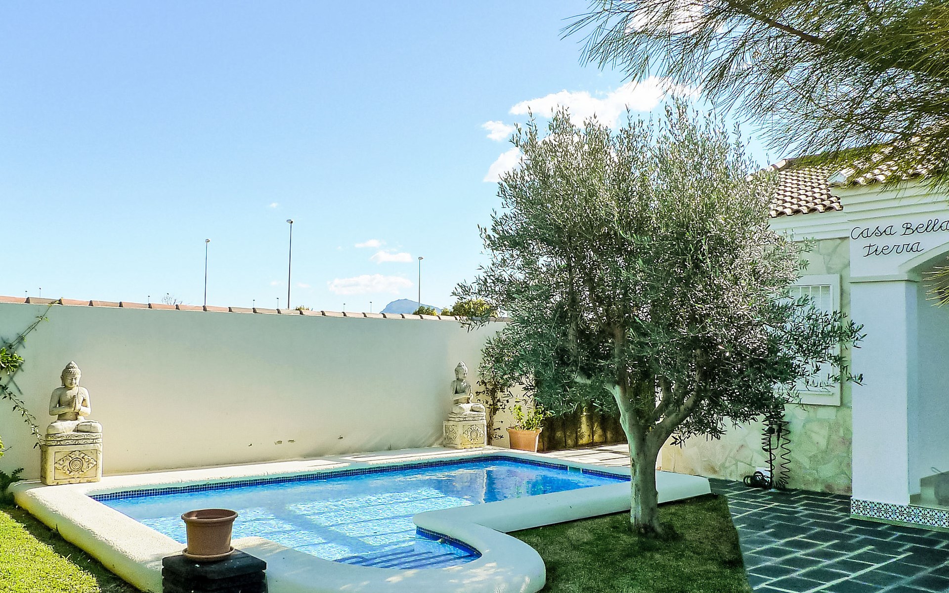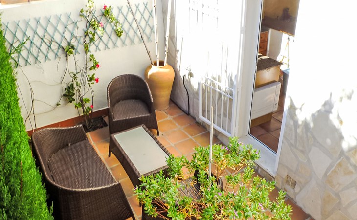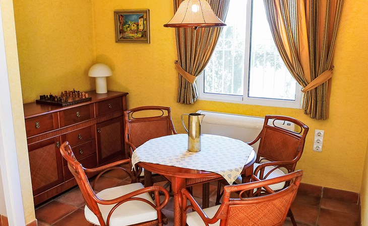 Urb. Deveses Playa: Comfortabele twee onder één kap woning "Bella Tierra", van 2 verdiepingen, bouwjaar 2001. 3 km van het centrum van Els Poblets, 11 km van het centrum van Dénia, rustige ligging, 500 m van zee, aan een doodlopende weg. Voor alleengebruik: kleine tuin 200 m2 (omheind) met gazon, binnenplaats, openluchtzwembad hoekig (3 x 5 m, seizoensgebonden beschikbaarheid: 01.Jan. - 31.Dec.) met trap. Buitendouche, terras, openbare parkeerplaatsen in de straat. Supermarkt 2 km, restaurant 2 km, bar 2 km, café 2 km, bushalte 500 m, zandstrand 500 m. Golfterrein (18 holes) 10 km. De eigenaar accepteert geen jeugdgroepen.