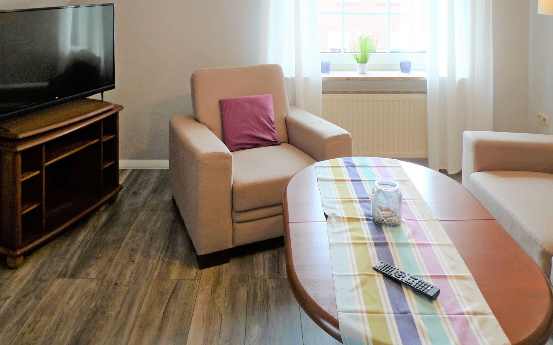 Mooi Huis met 2 woningen. In het centrum van Marienhafe, 18 km van zee, 18 km van het strand. In het huis: centrale verwarming. Parkeerplaats (voor 2 auto's) bij het huis. Winkel 1.5 km, levensmiddelenwinkel 1.5 km, restaurant 1.3 km, bakkerij 1 km, café 1.3 km, bushalte 400 m, treinstation "Marienhafe" 1.5 km, veerboot "Norddeich" 16 km, zandstrand 18 km, openluchtzwembad 15 km, overdekt zwembad 1.5 km. Golfterrein (18 holes) 11 km, tennishal 3 km. Auto noodzakelijk.