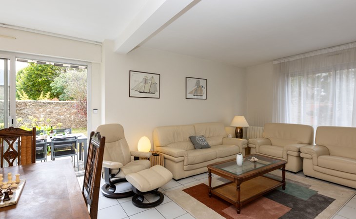 Zeer mooi huis "ker meet", van 2 verdiepingen, bouwjaar 1991, gerenoveerd, omgeven door bomen. In het centrum van Dinard, perfecte locatie: in het centrum en toch rustig gelegen, gebied met weinig verkeer, 1.5 km van zee, 1.5 km van het strand. Voor alleengebruik: verzorgde tuin 460 m2 (omheind) met gazon en bloemen, parkeerplaats op het terrein. Winkel, levensmiddelenwinkel, supermarkt 700 m, restaurant 350 m, bakkerij 410 m, café 630 m, bushalte "Saint Alexandre" 100 m, station "Gare TGV St Malo" 11 km, zandstrand "L'ecluse" 200 m, thermaalbad "Thermes marins de Dinard" 2.2 km. Jachthaven 1.9 km, zeilschool 190 m, manege 1.2 km. Attracties in de buurt: Saint Malo Intramuros 22 km, Le grand aquarium 4.6 km, Dinan 29 km, Dol de Bretagne 24 km, Cancale 16 km, Le Mont St Michel 48 km. De sleuteloverdracht vindt plaats bij het agentschap Interhome in Dinard, 2 km.