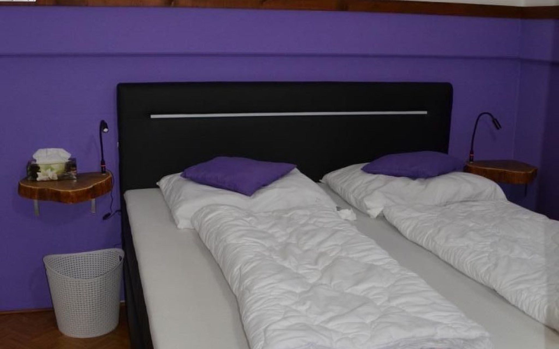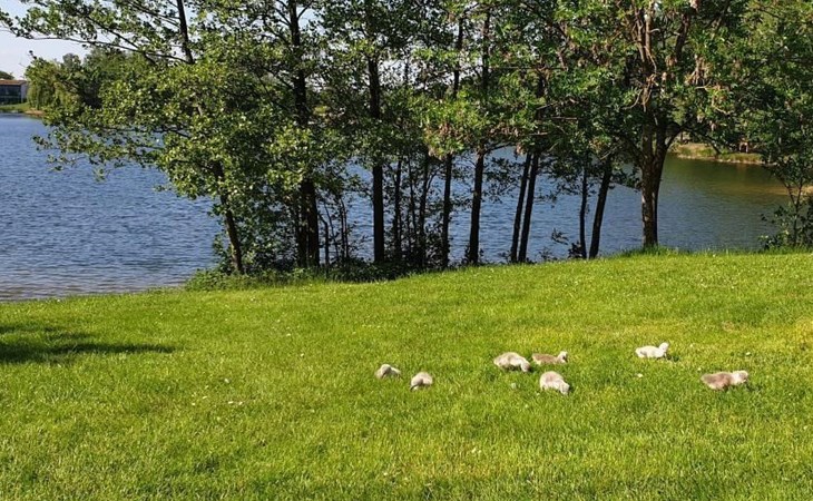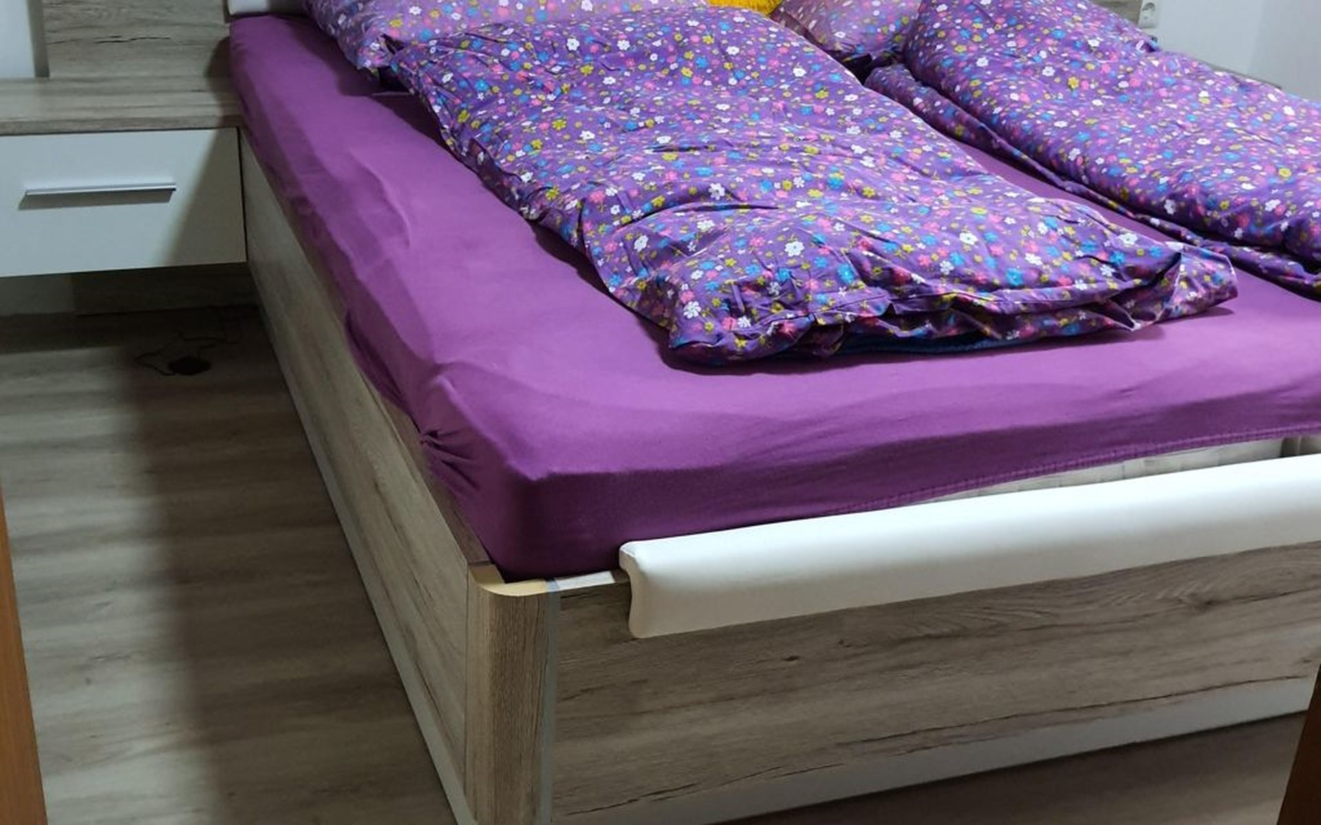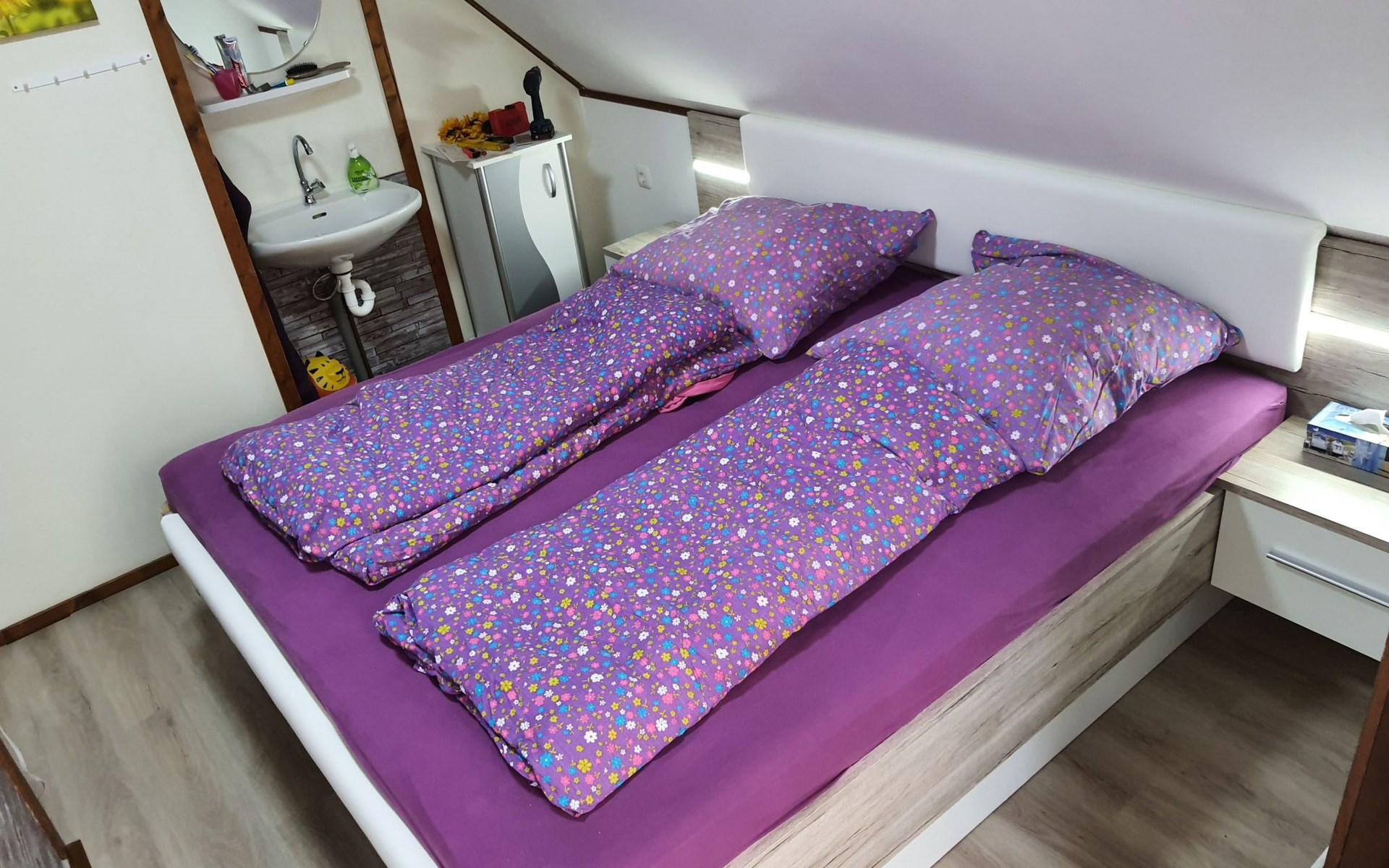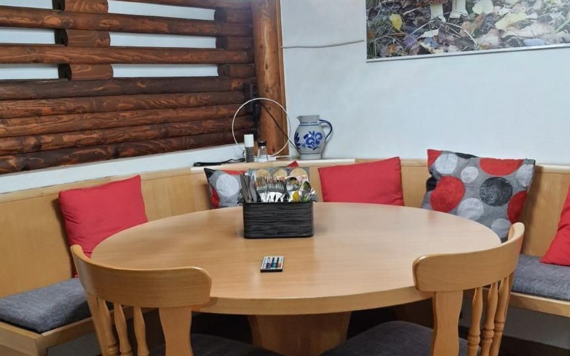 Our forest house is located at the end of the holiday park and is the furthest away from the forest. Are you looking for peace and relaxation in nature, with a lake and forest, surrounded by your loved ones?Then our Waldhaus 57 is the right place for you!We're glad you're here!Our house is equipped for 4-6 people:A living room with couch and two relaxing chairs, TV, DVD and Dolby surround system. The fireplace and modern infrared heating panels provide warmth and cosiness.The dining area offers enough space to comfortably seat 6 people.The high-quality kitchen is equipped with a large fridge, freezer (3 compartments), oven, ceramic hob, large sink and a dishwasher, toaster, coffee machine or Nespresso machine, pressure cooker, blender, and crockery & cutlery for 12 people. From the kitchen you have a beautiful view into the living room and down to the forest.The house has two toilets, a separate shower and three bedrooms:Butterfly room: box spring bed and separate WCSunflower room: a double bed and washbasin Owl room: with two single beds and washbasin The upper bedrooms each have access to the balcony.All bedrooms have fitted wardrobes and ample storage space.The ground floor is brick-built, the roof area with the sloping bedrooms is a wooden structure. Therefore, a certain amount of noise and natural creaking of the wood is unavoidable.The outside area offers two terraces, a brick barbecue, rotary clothes dryer, raised bed and car park for loading and unloading.The outdoor area offers two terraces, a brick barbecue, rotary clothes dryer, raised bed and 1 parking space for loading and unloading.Activities around the Silbersee are partly chargeable. Please refer to the respective providers for opening prices and opening times. The offers have nothing to do with the letting of the house.The WLAN is sufficient for private use - however, there is no guarantee for stability and utilisation (home office etc.).The additional costs (cleaning, pet and deposit) are transferred directly to us (landlord) in advance. The consumed electricity and the tourist tax will be deducted from the deposit after the stay and transferred back to us.Linen package (towel, shower towel, sheets and duvet covers) can be booked.* Non-smoking house. You are welcome to use the garden or balcony.* Dog on request* Crockery and any inventory may not be stolen or left in other houses (when booking several holiday homes)* Final cleaning does not include the removal of your own rubbish, emptying the fridge and freezer* Damages must be reported immediatelyDirectly at the Waldhaus you will find hiking trails, cycle paths, a mountain bike course. 5 minutes walk to the swimming lake with fishing possibilities, pedal boat hire. There is a football pitch, a volleyball court, table tennis tables, a mini-golf course and smaller playgrounds. On the other side of the lake there is also a thermal spa with sauna built directly into the lake and a summer toboggan run with beer garden. There is also an indoor playground (Frieloland) and a climbing park. The pony farm is approx. 1.5km away and the Knüll wildlife park is also 10km away.
