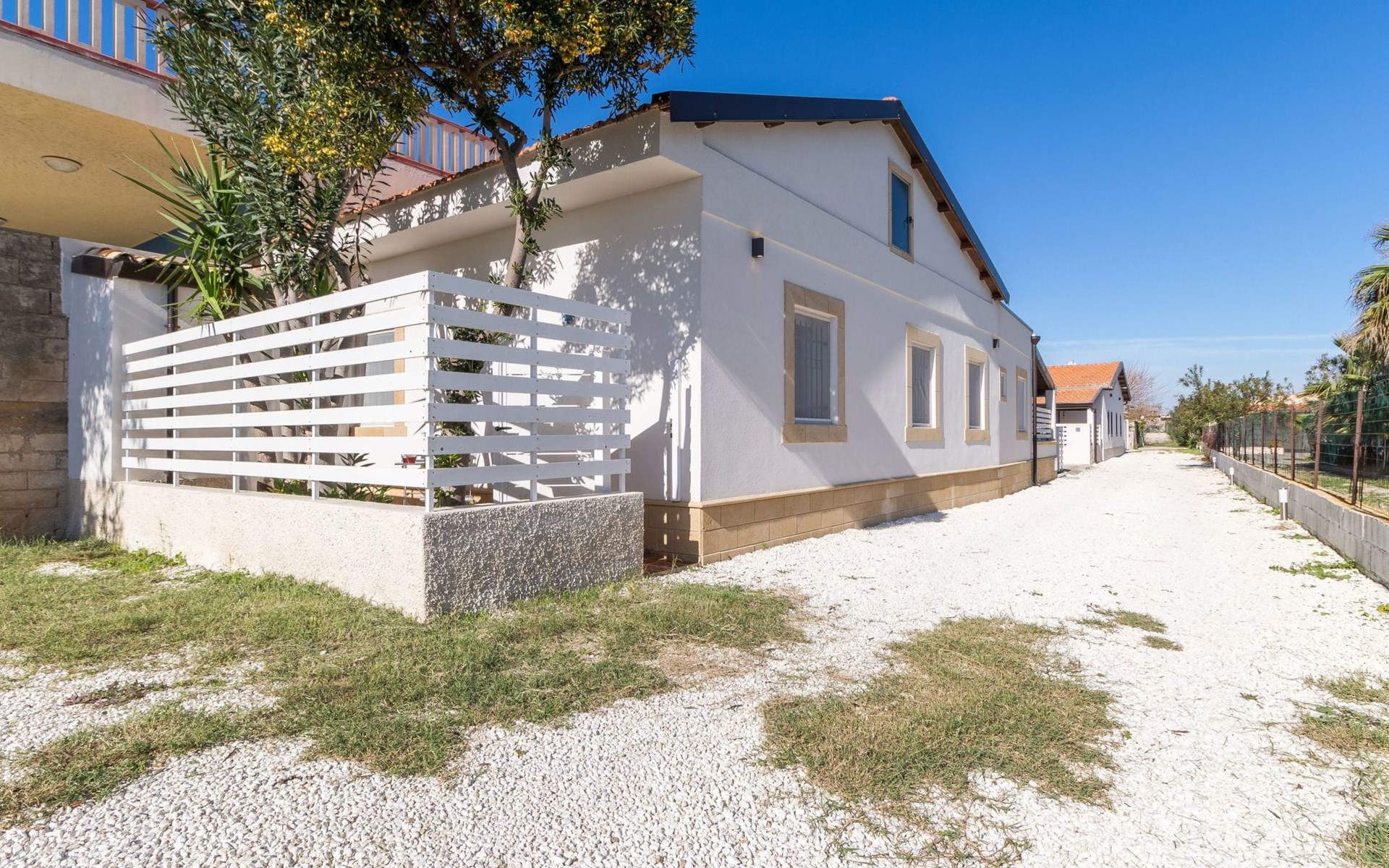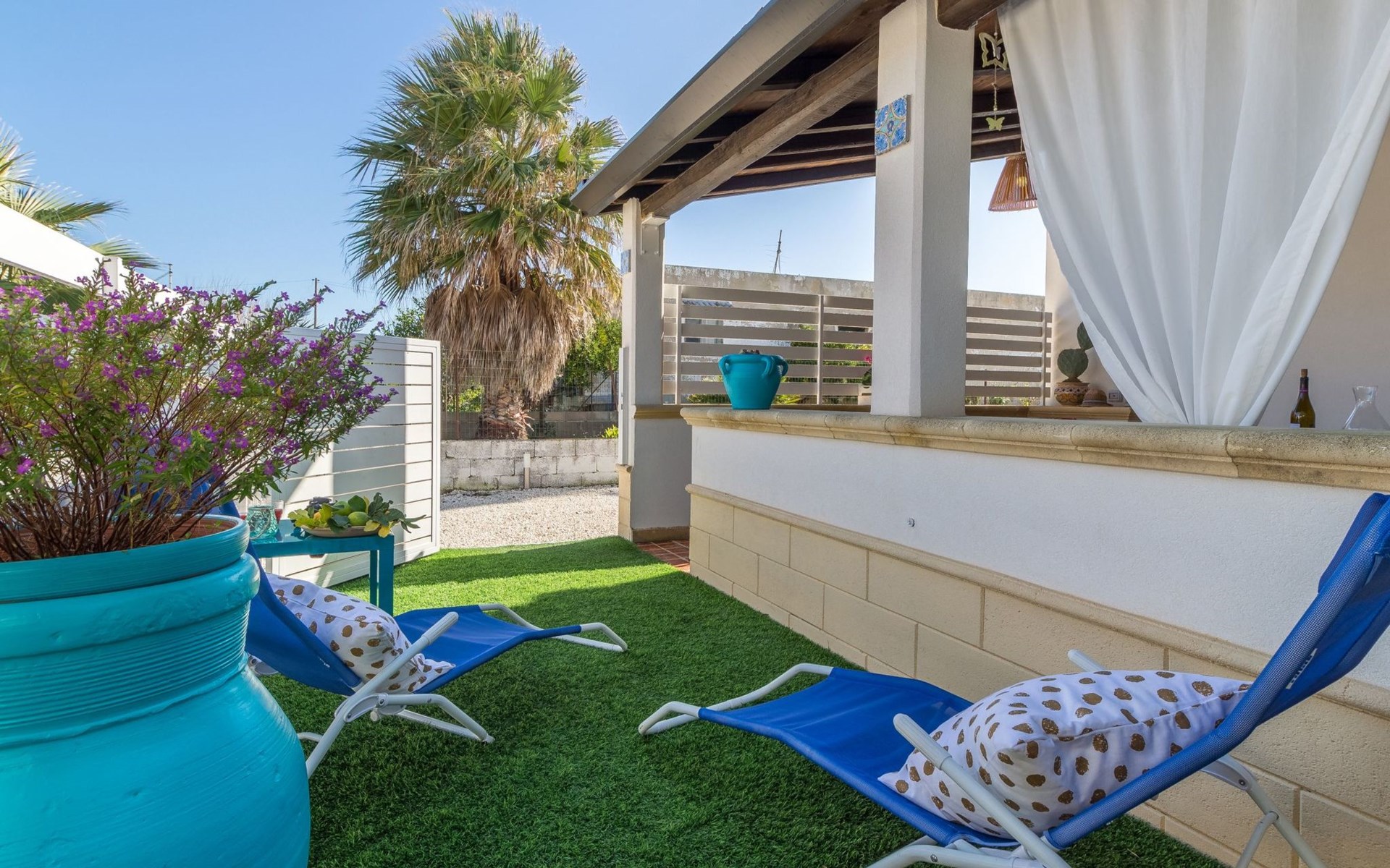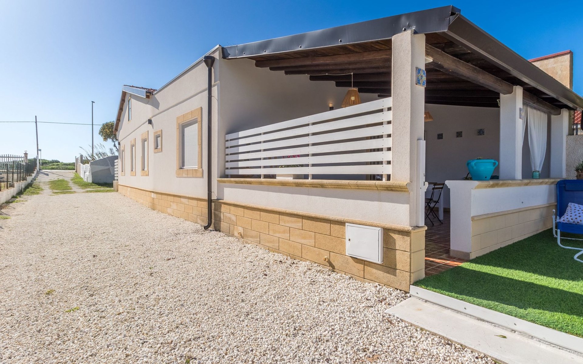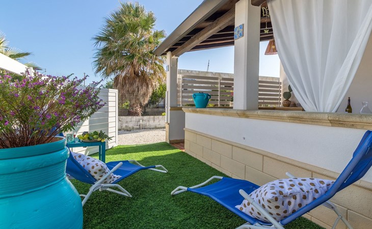 Beachfront apartment in Santa Maria del Focallo, a stone's throw from the sandy beach (10 m), with an equipped terrace and tastefully furnished interiors. It is located in a quiet area, 2 km from Punta Cirica beach and 5 km from the famous bay of Porto Ulisse. It is a 20-minute drive from Marzamemi (Syracuse) and is ideal for a beach holiday of a family with children.The accommodation is located on a private fenced road, opposite the beach (10 metres)It offers a lovely furnished (covered) terrace with a dining table and a barbecue.A small synthetic grass garden has a solarium.A back porch with table and chairs.An outdoor shower.Private parking for up to 2 cars.The apartment was renovated in 2019 in a contemporary style and offers bright and carefully furnished interiors.It consists of a living area and a sleeping area with 2 bedrooms and 2 bathrooms.The kitchen, which overlooks the veranda, is equipped with a dining table, oven, fridge, freezer and microwave.The living room is furnished with a sofa bed (French size) and TV.The sleeping area consists of two bright rooms, both with double beds.Two bathrooms with shower.Air conditioning hot / cold (in every room), safe and washing machine.Wi-Fi Internet connection.The Kairòs apartment is located in front of a sandy beach (10 metres), in Santa Maria del Focallo, a seaside resort 10 km from Ispica and Pozzallo, in the province of Ragusa, on the south-eastern coast of Sicily.The beach of Santa Maria del Focallo has been repeatedly awarded the blue and green flags and recognized among the most beautiful beaches in Italy, thanks to its natural dunes, emerald waters and the wide beach of fine and golden sand.Located in a residential area on the coastal road that connects Pozzallo (10 km) to Punta Cirica (2 km), the accommodation is located on a stretch of coast on the border between the provinces of Ragusa (50 km) and Siracusa, just 5 km from the famous bay of Porto Ulisse and about 20 km from the beaches of the Syracuse coast (Marzamemi, San Lorenzo, Calamosche, Isola delle Correnti and Portopalo di Capopassero).The apartment is also located 6 km from the Pantani Longarini, 30 km from Noto and its famous cathedral and 70 km from Ortigia, an historical center rich in archaeological and artistic beauty of the city of Syracuse.Strengths1. Facing the sea, in a quiet area2. 10 m from the sandy beach3. Furnished terrace and solariumRecommended for ...Who wants to stay by the sea, in fornt of a wide golden sandy beach (10 metres). It is suitable for a family with children or two couples and offers well-furnished interiors and outdoors where you can enjoy the sun and the sea breeze. Located in a quiet zone, it's perfect if you want to move easily and visit the beaches (from Marina di Ragusa to Marzamemi) and the towns in the province of Ragusa (Ispica, Ragusa, Modica and Scicli) and Syracuse (Ortigia and Noto). It is suitable for cycling and water sports enthusiasts. IT088005C2N7E420P9