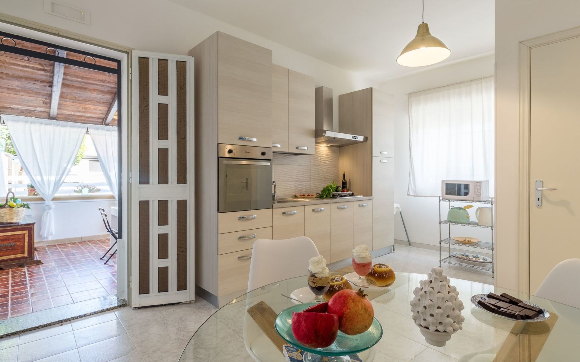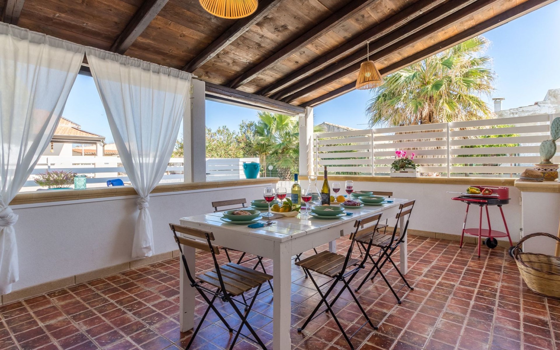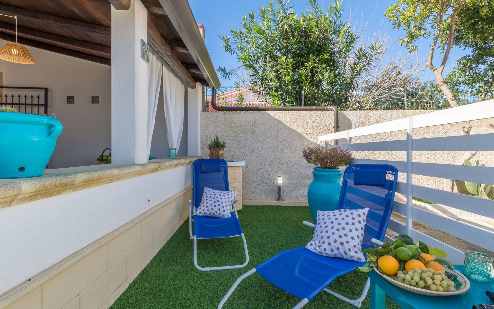 Beachfront apartment in Santa Maria del Focallo, a stone's throw from the sandy beach (10 m), with an equipped terrace and tastefully furnished interiors. It is located in a quiet area, 2 km from Punta Cirica beach and 5 km from the famous bay of Porto Ulisse. It is a 20-minute drive from Marzamemi (Syracuse) and is ideal for a beach holiday of a family with children.The accommodation is located on a private fenced road, opposite the beach (10 metres)It offers a lovely furnished (covered) terrace with a dining table and a barbecue.A small synthetic grass garden has a solarium.A back porch with table and chairs.An outdoor shower.Private parking for up to 2 cars.The apartment was renovated in 2019 in a contemporary style and offers bright and carefully furnished interiors.It consists of a living area and a sleeping area with 2 bedrooms and 2 bathrooms.The kitchen, which overlooks the veranda, is equipped with a dining table, oven, fridge, freezer and microwave.The living room is furnished with a sofa bed (French size) and TV.The sleeping area consists of two bright rooms, both with double beds.Two bathrooms with shower.Air conditioning hot / cold (in every room), safe and washing machine.Wi-Fi Internet connection.The Kairòs apartment is located in front of a sandy beach (10 metres), in Santa Maria del Focallo, a seaside resort 10 km from Ispica and Pozzallo, in the province of Ragusa, on the south-eastern coast of Sicily.The beach of Santa Maria del Focallo has been repeatedly awarded the blue and green flags and recognized among the most beautiful beaches in Italy, thanks to its natural dunes, emerald waters and the wide beach of fine and golden sand.Located in a residential area on the coastal road that connects Pozzallo (10 km) to Punta Cirica (2 km), the accommodation is located on a stretch of coast on the border between the provinces of Ragusa (50 km) and Siracusa, just 5 km from the famous bay of Porto Ulisse and about 20 km from the beaches of the Syracuse coast (Marzamemi, San Lorenzo, Calamosche, Isola delle Correnti and Portopalo di Capopassero).The apartment is also located 6 km from the Pantani Longarini, 30 km from Noto and its famous cathedral and 70 km from Ortigia, an historical center rich in archaeological and artistic beauty of the city of Syracuse.Strengths1. Facing the sea, in a quiet area2. 10 m from the sandy beach3. Furnished terrace and solariumRecommended for ...Who wants to stay by the sea, in fornt of a wide golden sandy beach (10 metres). It is suitable for a family with children or two couples and offers well-furnished interiors and outdoors where you can enjoy the sun and the sea breeze. Located in a quiet zone, it's perfect if you want to move easily and visit the beaches (from Marina di Ragusa to Marzamemi) and the towns in the province of Ragusa (Ispica, Ragusa, Modica and Scicli) and Syracuse (Ortigia and Noto). It is suitable for cycling and water sports enthusiasts. IT088005C2N7E420P9