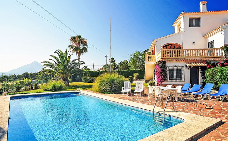 Mooi huis "Portichol". In de wijk Portichol, 4 km van zee. Voor alleengebruik: groot, mooie, verzorgde tuin 2.500 m2 (omheind) met gazon en planten, openluchtzwembad (5 x 10 m, seizoensgebonden beschikbaarheid: 01.Jan. - 31.Dec.). In het huis: zonneterras, centrale verwarming. Winkel 4 km, supermarkt 1.7 km, restaurant 1.4 km, bushalte "Toscamar" 1.4 km, zandstrand "Arenal" 4 km. De eigenaar accepteert geen jeugdgroepen.