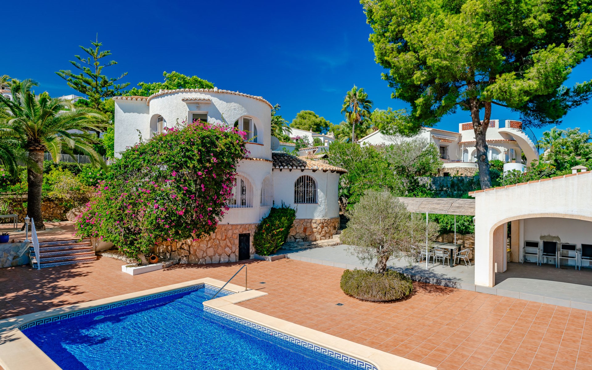 Gezellig, comfortabel huis "Villa Alto", van 2 verdiepingen. In de wijk Balcon al Mar, rustige, zonnige ligging, 1 km van zee, 4 km van het strand. Voor alleengebruik: tuin op verschillende niveaus, openluchtzwembad hoekig (8 x 4 m, 40 - 210 cm diepte, seizoensgebonden beschikbaarheid: 01.Jan. - 31.Dec.) met trap. Buitendouche, poolhouse met koelkast en fornuis, prieel, tuinmeubelen, barbecue, overdekte parkeerplaats. Supermarkt, restaurant 250 m, bushalte 7 km, zandstrand "El Arenal" 6.9 km, stenenstrand "Cala Portitxol" 4 km. Jachthaven 6 km, surfschool 6 km, zeilschool 6 km, tennis 250 m. De eigenaar accepteert geen jeugdgroepen.