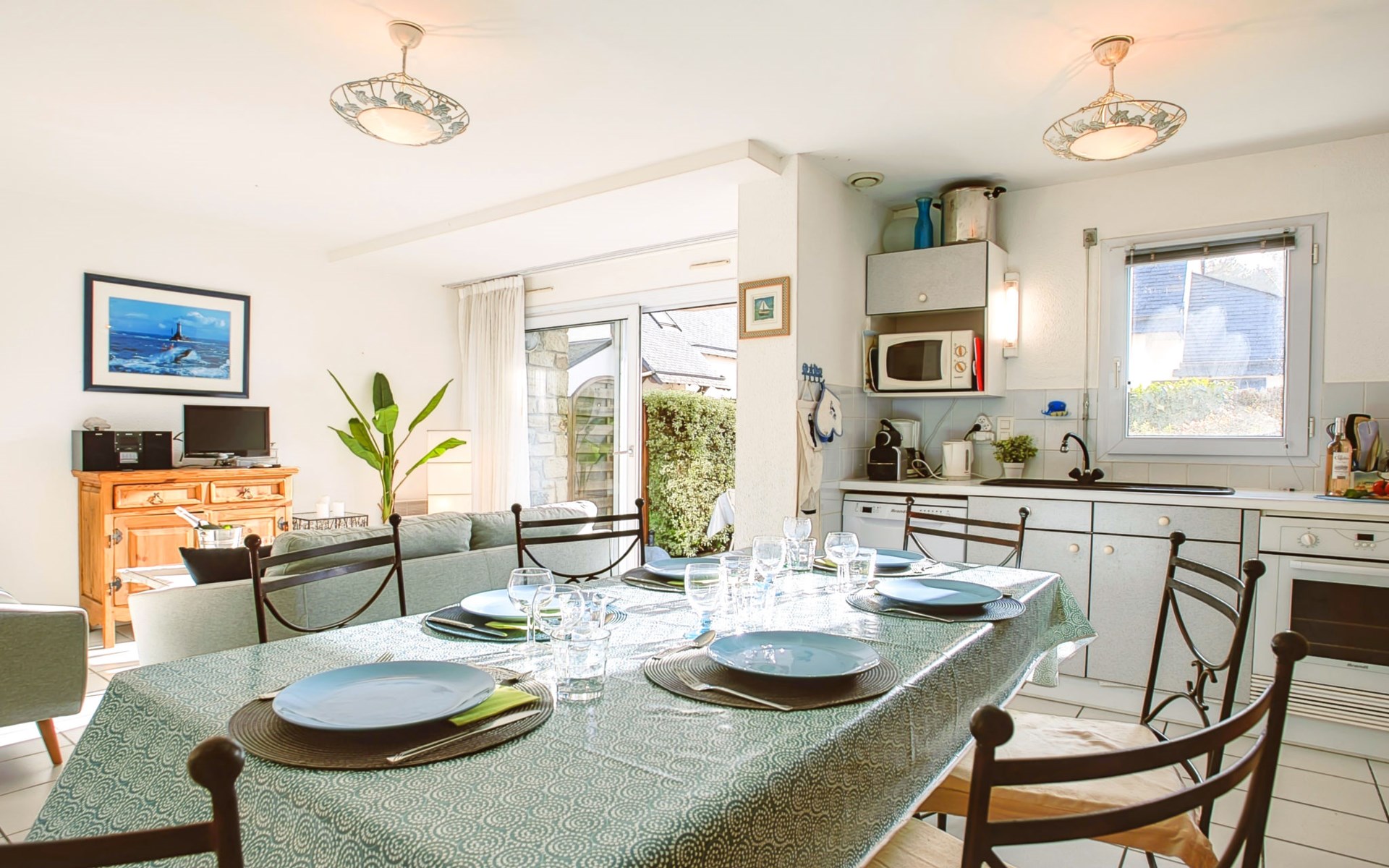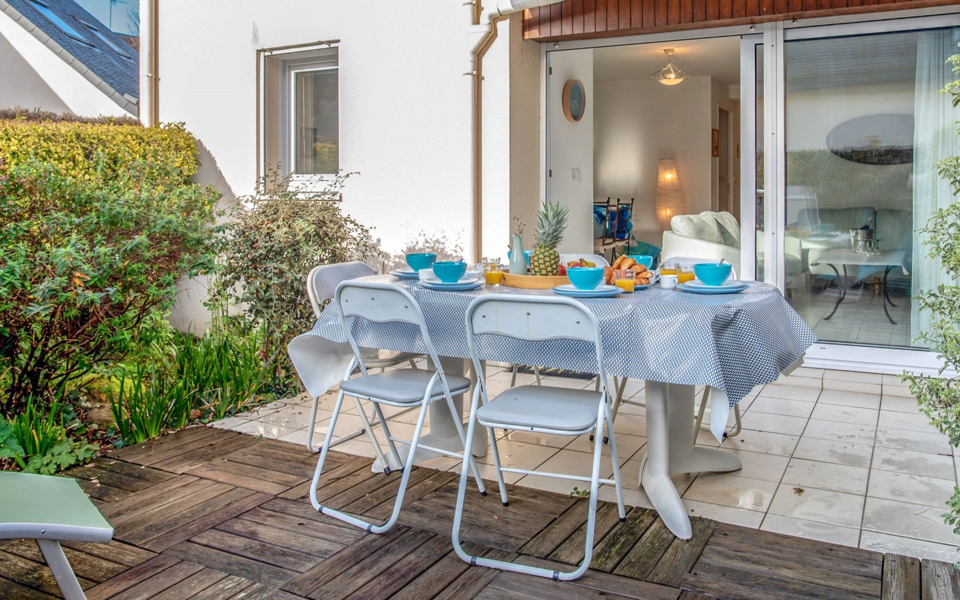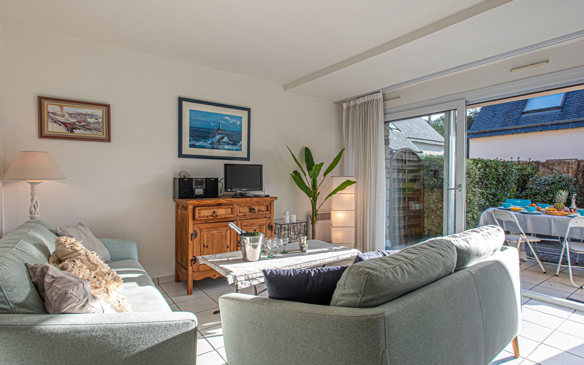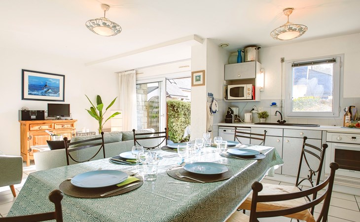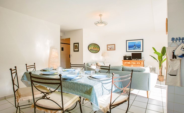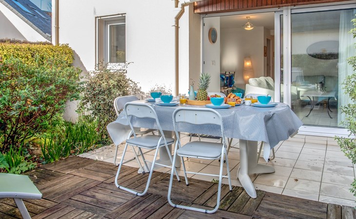 Flatgebouw "Le Parc des Druides", van 2 verdiepingen. In de plaats, rustige ligging in een woonwijk, 250 m van zee, 250 m van het strand. Winkel 900 m, supermarkt 200 m, restaurant 500 m, bakkerij 500 m, fietsverhuur 300 m, station 15 km, zandstrand "Grande Plage" 250 m, thermaalbad "Thalazur Carnac" 1.2 km. Golfterrein (18 holes) 12 km, zeilschool 1.4 km, tennis 900 m, manege 4 km. Attracties in de buurt: Alignements de Carnac 3.5 km, La Trinité sur Mer 4 km, Presqu'ile de Quiberon 15 km, Vannes 35 km, Lorient 52 km. Wandelgebied Golfe du Morbihan.