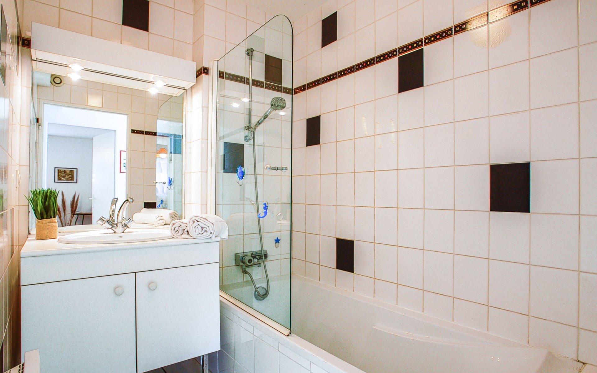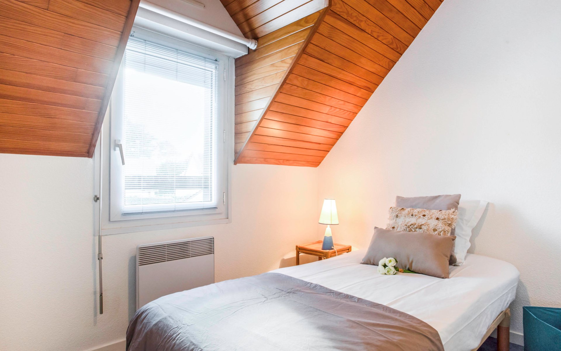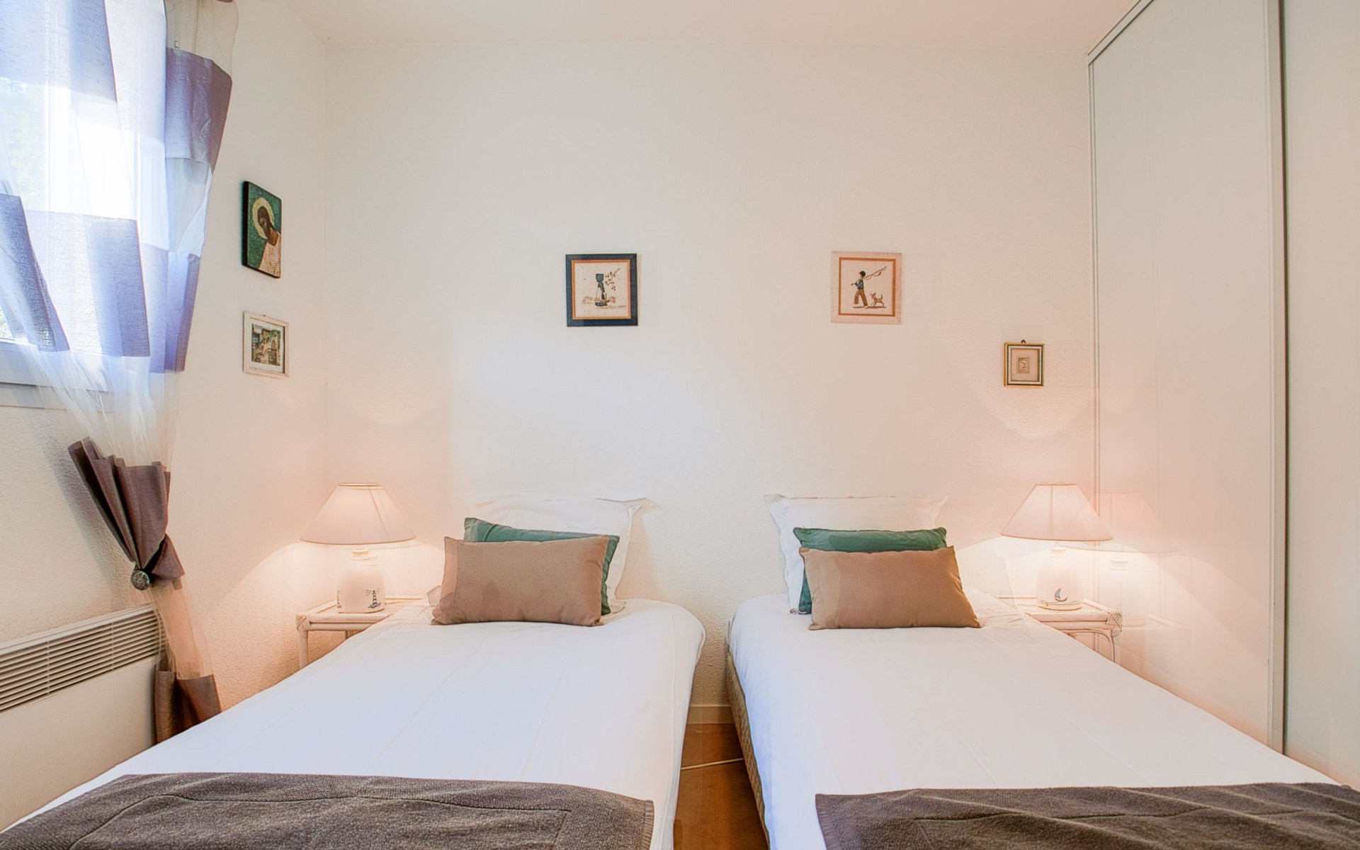 Flatgebouw "Le Parc des Druides", van 2 verdiepingen. In de plaats, rustige ligging in een woonwijk, 250 m van zee, 250 m van het strand. Winkel 900 m, supermarkt 200 m, restaurant 500 m, bakkerij 500 m, fietsverhuur 300 m, station 15 km, zandstrand "Grande Plage" 250 m, thermaalbad "Thalazur Carnac" 1.2 km. Golfterrein (18 holes) 12 km, zeilschool 1.4 km, tennis 900 m, manege 4 km. Attracties in de buurt: Alignements de Carnac 3.5 km, La Trinité sur Mer 4 km, Presqu'ile de Quiberon 15 km, Vannes 35 km, Lorient 52 km. Wandelgebied Golfe du Morbihan.