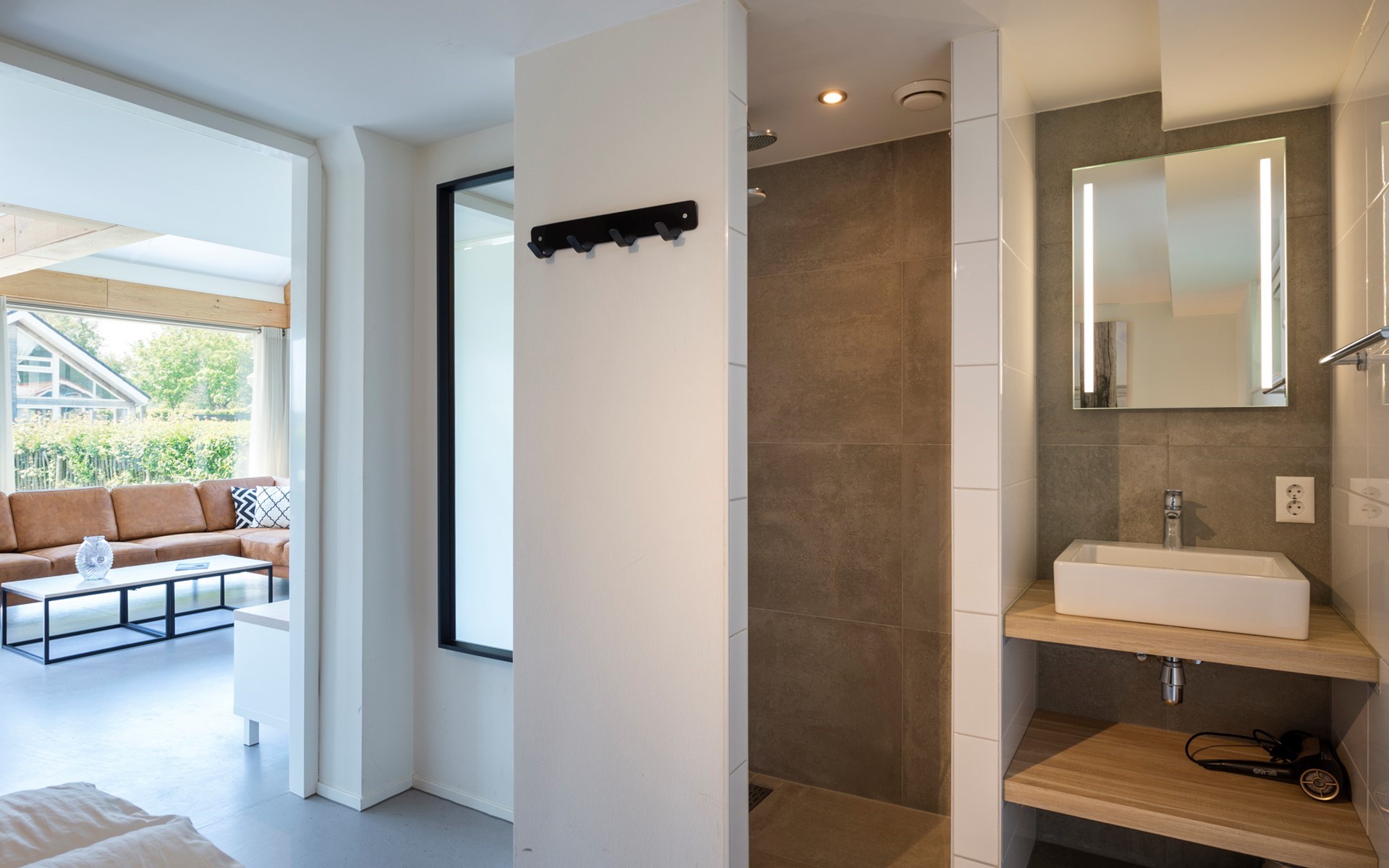 De moderne en luxe woning is van alle gemakken voorzien en heeft een lichte woonkamer met een gezellige zithoek en een sfeervolle openhaard. De open keuken grenst direct aan de woonkamer en de eethoek. In de woning zijn drie slaapkamers aanwezig waarvan één op de begane grond. Daarnaast zijn er twee badkamers met douche en aparte toiletten aanwezig.