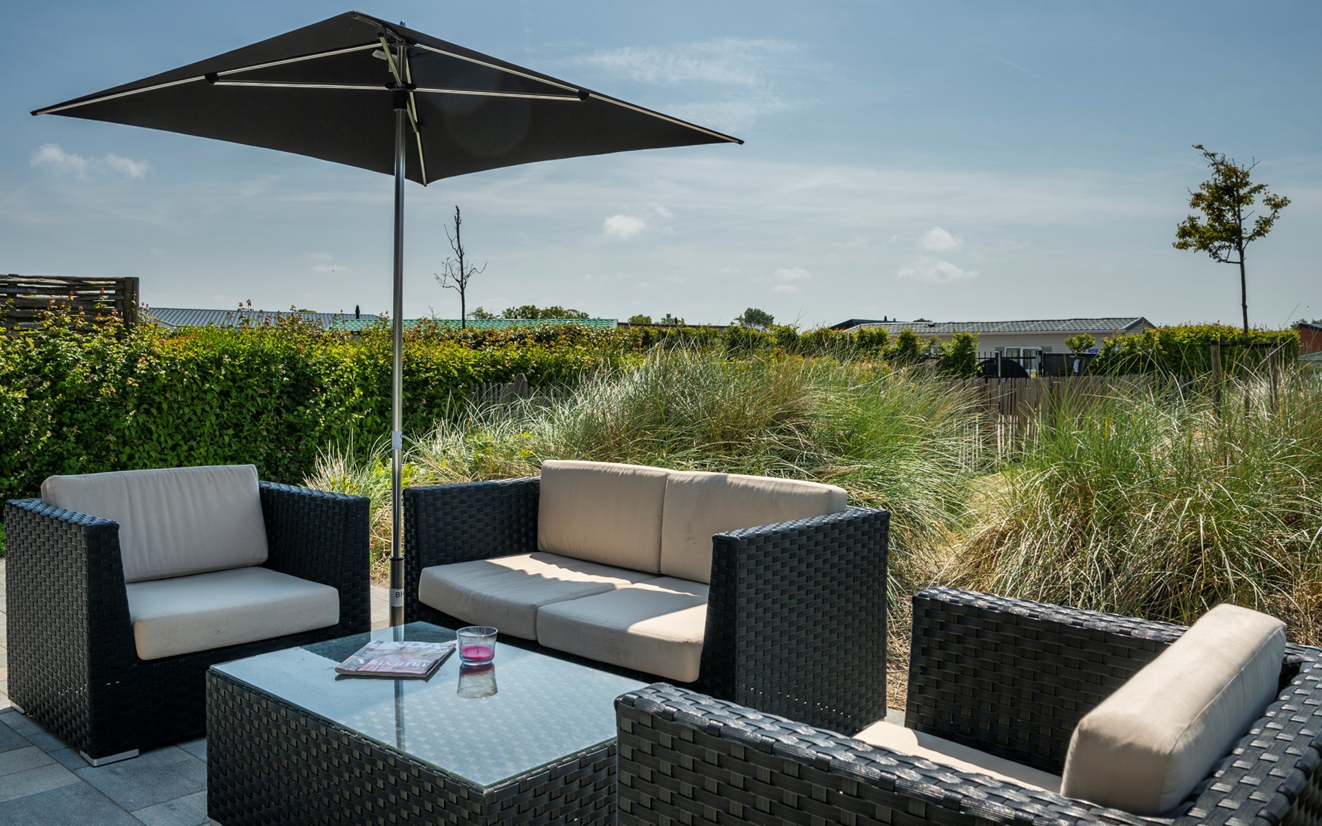 Een keertje niet naar het strand? Dan kunt u lekker relaxen in de veilige en afgesloten tuin die ideaal op het zuiden gelegen is waardoor er ook van een late zomerzon genoten kan worden. Tijdens de warme dagen zoekt u verkoeling onder het overdekte terras of onder de luxe buitendouche. Tijdens uw verblijf kunt u gebruik maken van de faciliteiten van Camping Zonnedorp. Voor vragen verwijzen wij u graag door naar de receptie van de camping.