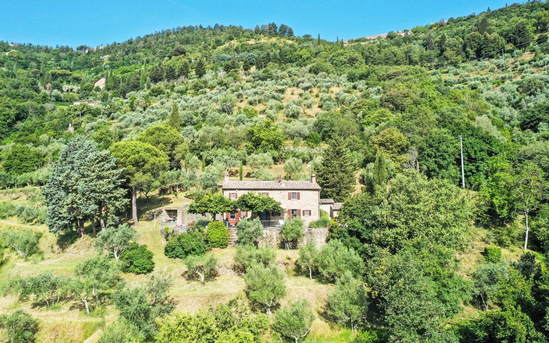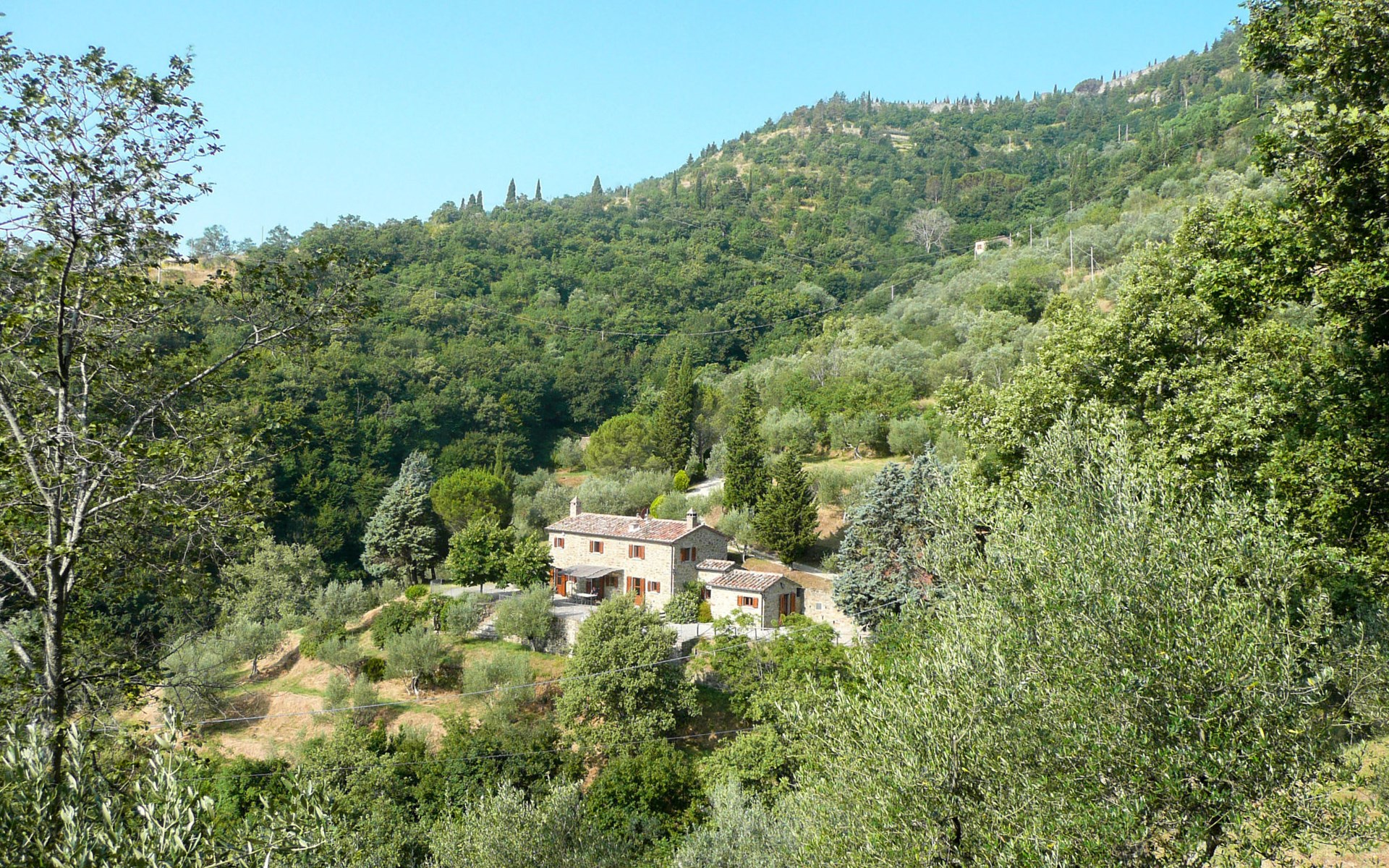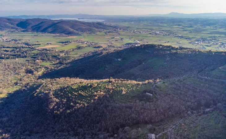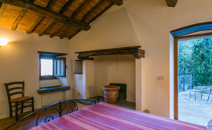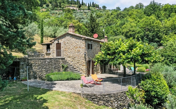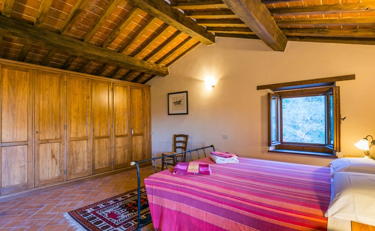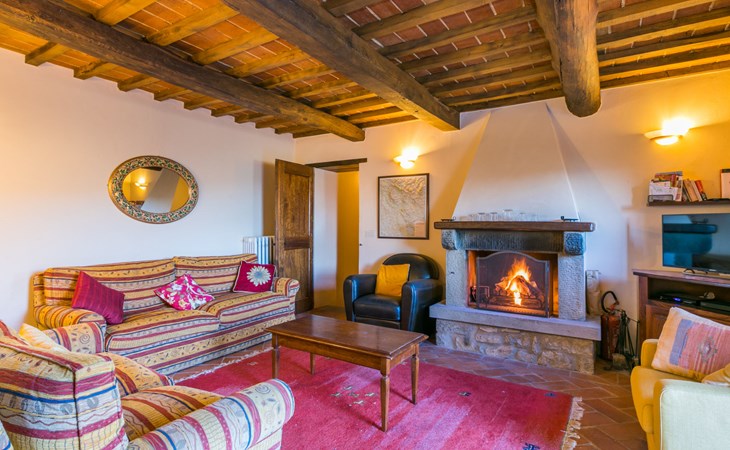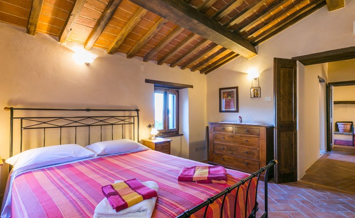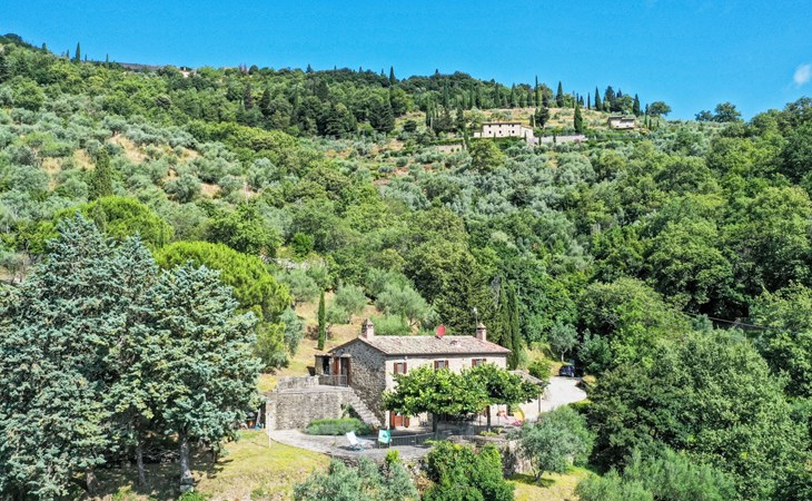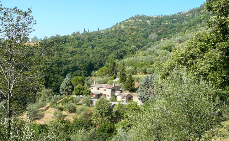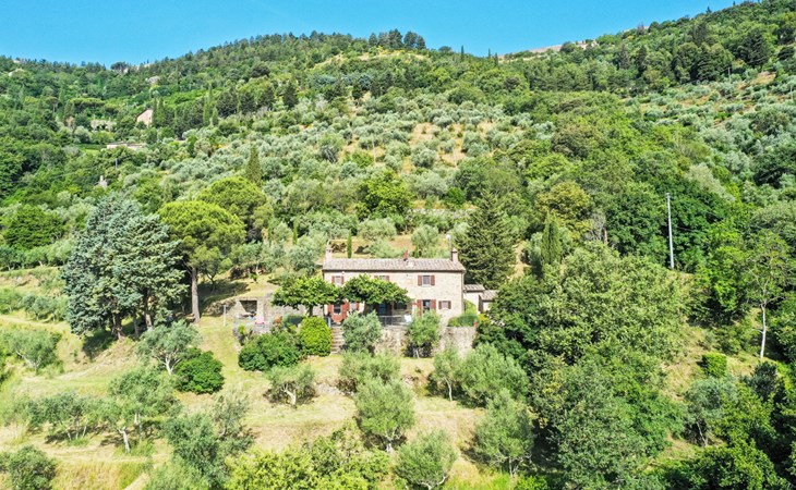 Gezellige rustieke woning "Bramasole", gerenoveerd in 2006, omgeven door bomen. 2 km van het centrum van Cortona, geïsoleerde, verhoogde ligging, 22 km van het meer, op het zuidwesten. Voor alleengebruik: wild terrein 25.000 m2, tuin op verschillende niveaus met bomen, boomgaard. Prieel, terras, tuinmeubelen, barbecue. Smalle toegangsweg (300 m onverharde weg). Parkeerplaats op het terrein. Supermarkt 8 km, restaurant 1.5 km, bar 1.5 km, bushalte 1.8 km, treinstation "Cortona Camucia" 5 km, openluchtzwembad 1 km, meer (zwemmen) "Trasimeno" 22 km. Golfterrein (9 holes) 23 km, tennis 1 km, wandelroutes 100 m vanaf het huis. Attracties in de buurt: Arezzo 35 km, Montepulciano 35 km, Pienza 52 km, Perugia 55 km, Assisi 73 m. Baby uitrusting (incl.). Het objekt is geschikt voor 6 volwassenen groepen jongeren uitsluitend op aanvraag.
