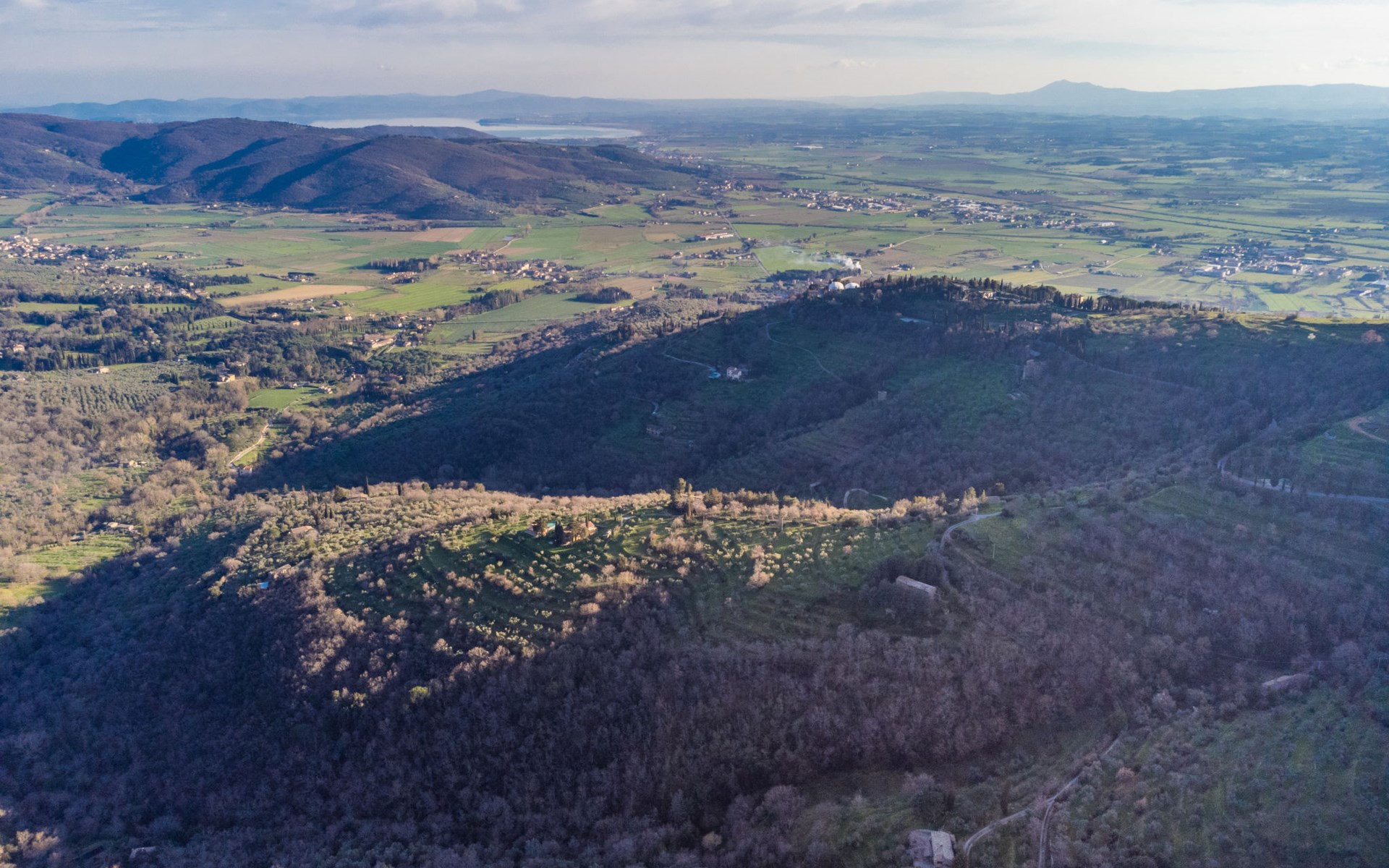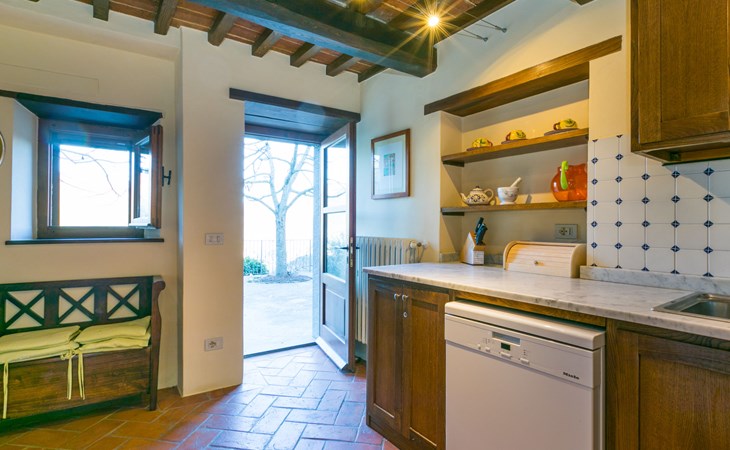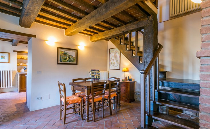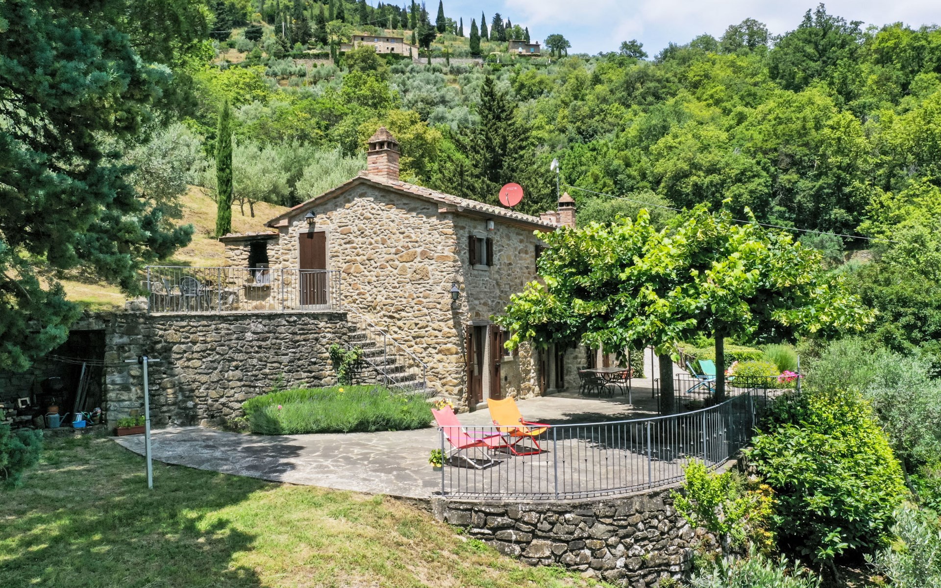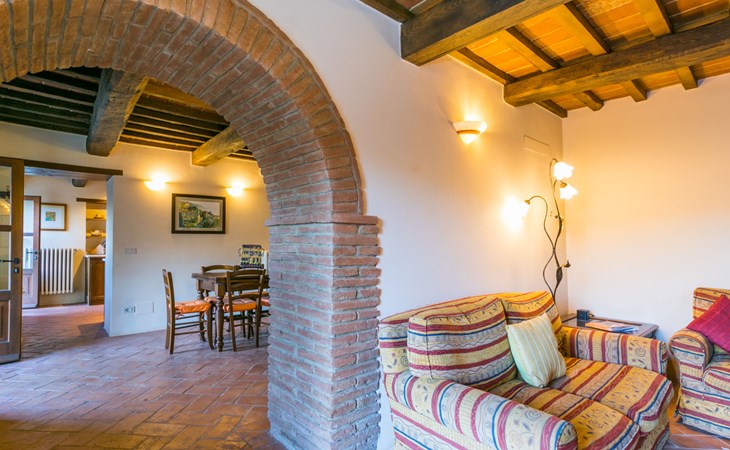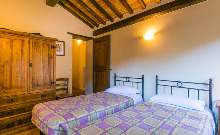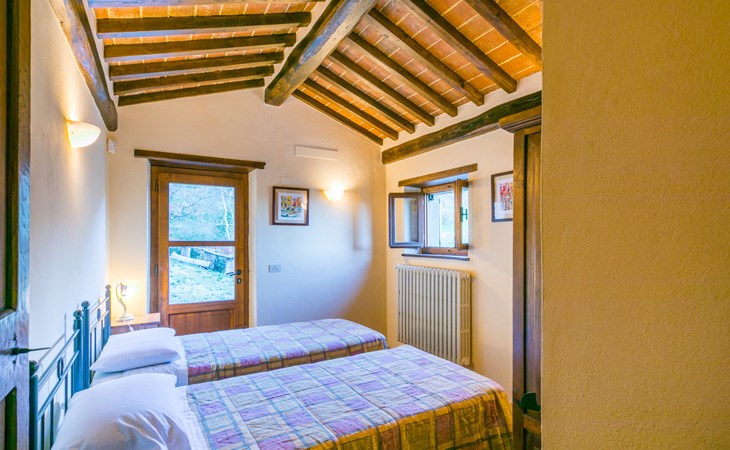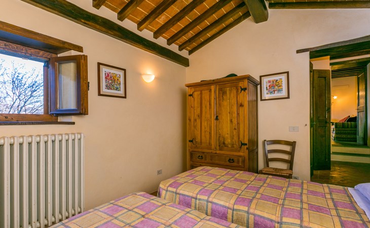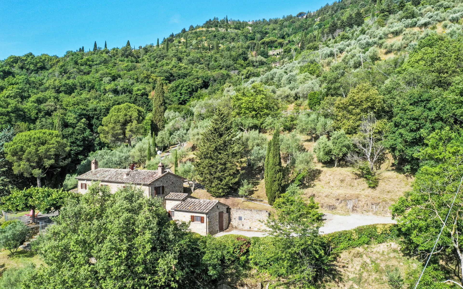 Gezellige rustieke woning "Bramasole", gerenoveerd in 2006, omgeven door bomen. 2 km van het centrum van Cortona, geïsoleerde, verhoogde ligging, 22 km van het meer, op het zuidwesten. Voor alleengebruik: wild terrein 25.000 m2, tuin op verschillende niveaus met bomen, boomgaard. Prieel, terras, tuinmeubelen, barbecue. Smalle toegangsweg (300 m onverharde weg). Parkeerplaats op het terrein. Supermarkt 8 km, restaurant 1.5 km, bar 1.5 km, bushalte 1.8 km, treinstation "Cortona Camucia" 5 km, openluchtzwembad 1 km, meer (zwemmen) "Trasimeno" 22 km. Golfterrein (9 holes) 23 km, tennis 1 km, wandelroutes 100 m vanaf het huis. Attracties in de buurt: Arezzo 35 km, Montepulciano 35 km, Pienza 52 km, Perugia 55 km, Assisi 73 m. Baby uitrusting (incl.). Het objekt is geschikt voor 6 volwassenen groepen jongeren uitsluitend op aanvraag.