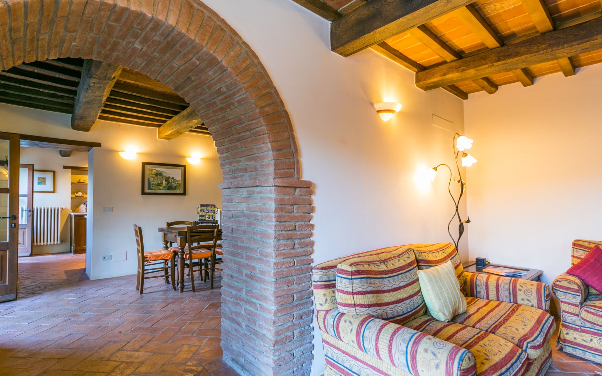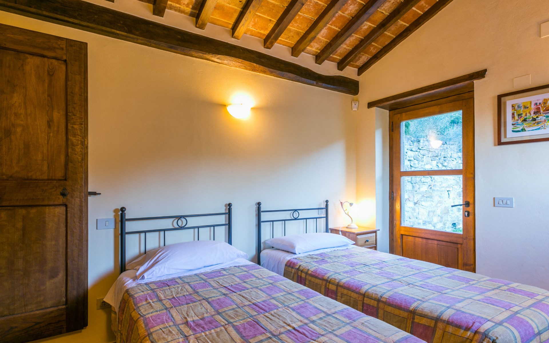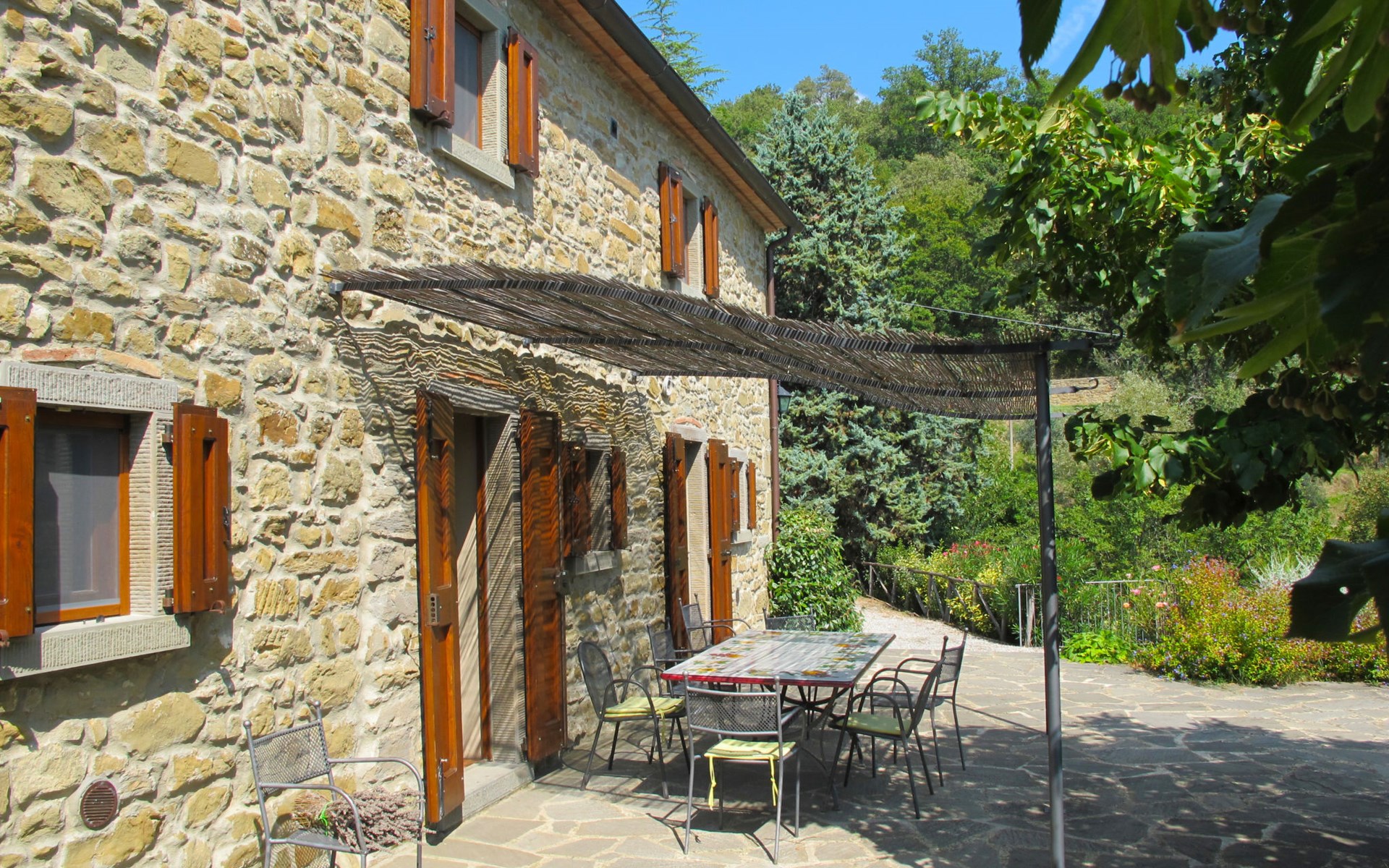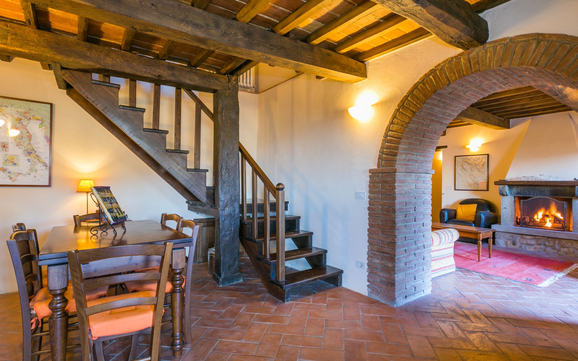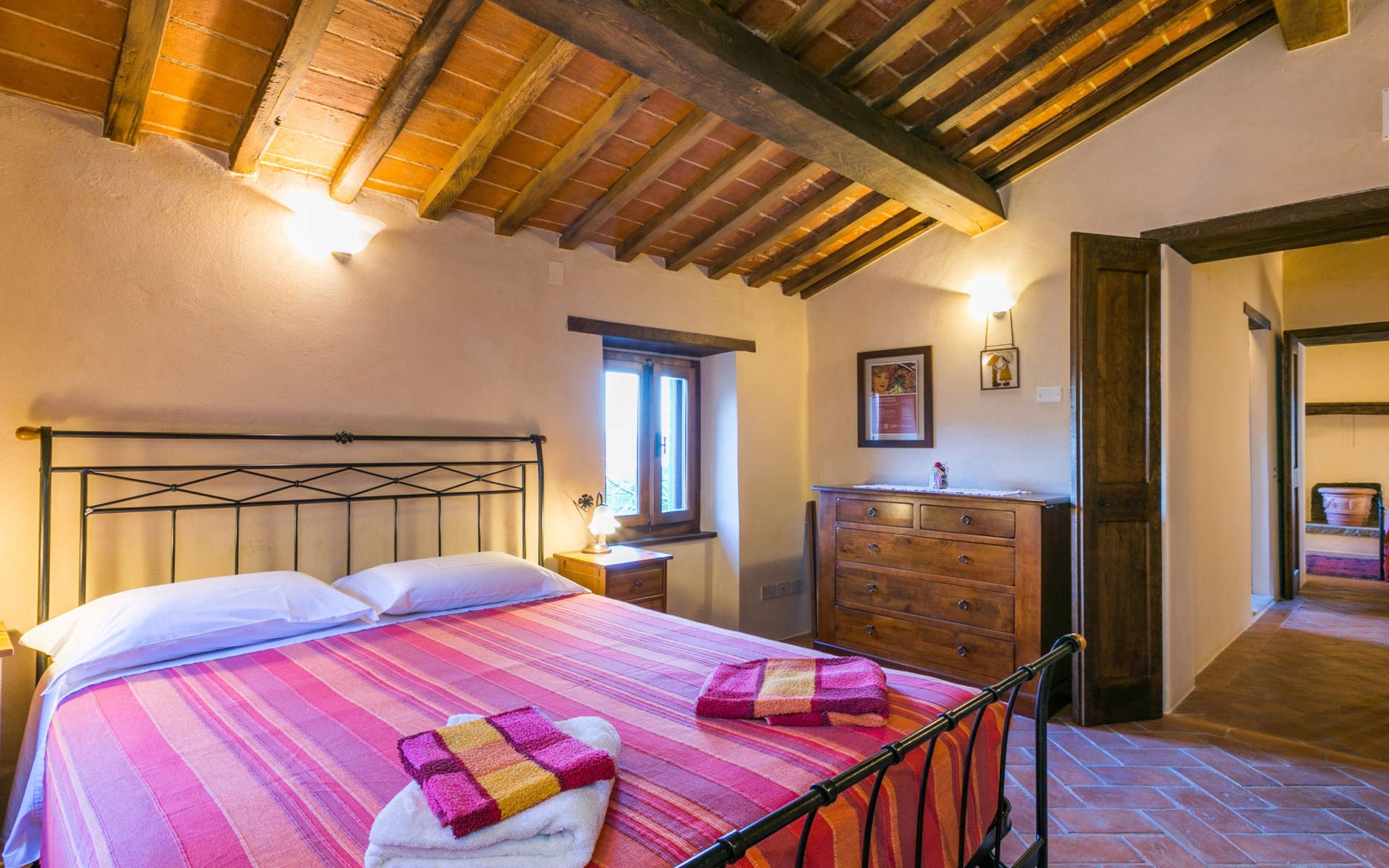 Gezellige rustieke woning "Bramasole", gerenoveerd in 2006, omgeven door bomen. 2 km van het centrum van Cortona, geïsoleerde, verhoogde ligging, 22 km van het meer, op het zuidwesten. Voor alleengebruik: wild terrein 25.000 m2, tuin op verschillende niveaus met bomen, boomgaard. Prieel, terras, tuinmeubelen, barbecue. Smalle toegangsweg (300 m onverharde weg). Parkeerplaats op het terrein. Supermarkt 8 km, restaurant 1.5 km, bar 1.5 km, bushalte 1.8 km, treinstation "Cortona Camucia" 5 km, openluchtzwembad 1 km, meer (zwemmen) "Trasimeno" 22 km. Golfterrein (9 holes) 23 km, tennis 1 km, wandelroutes 100 m vanaf het huis. Attracties in de buurt: Arezzo 35 km, Montepulciano 35 km, Pienza 52 km, Perugia 55 km, Assisi 73 m. Baby uitrusting (incl.). Het objekt is geschikt voor 6 volwassenen groepen jongeren uitsluitend op aanvraag.
