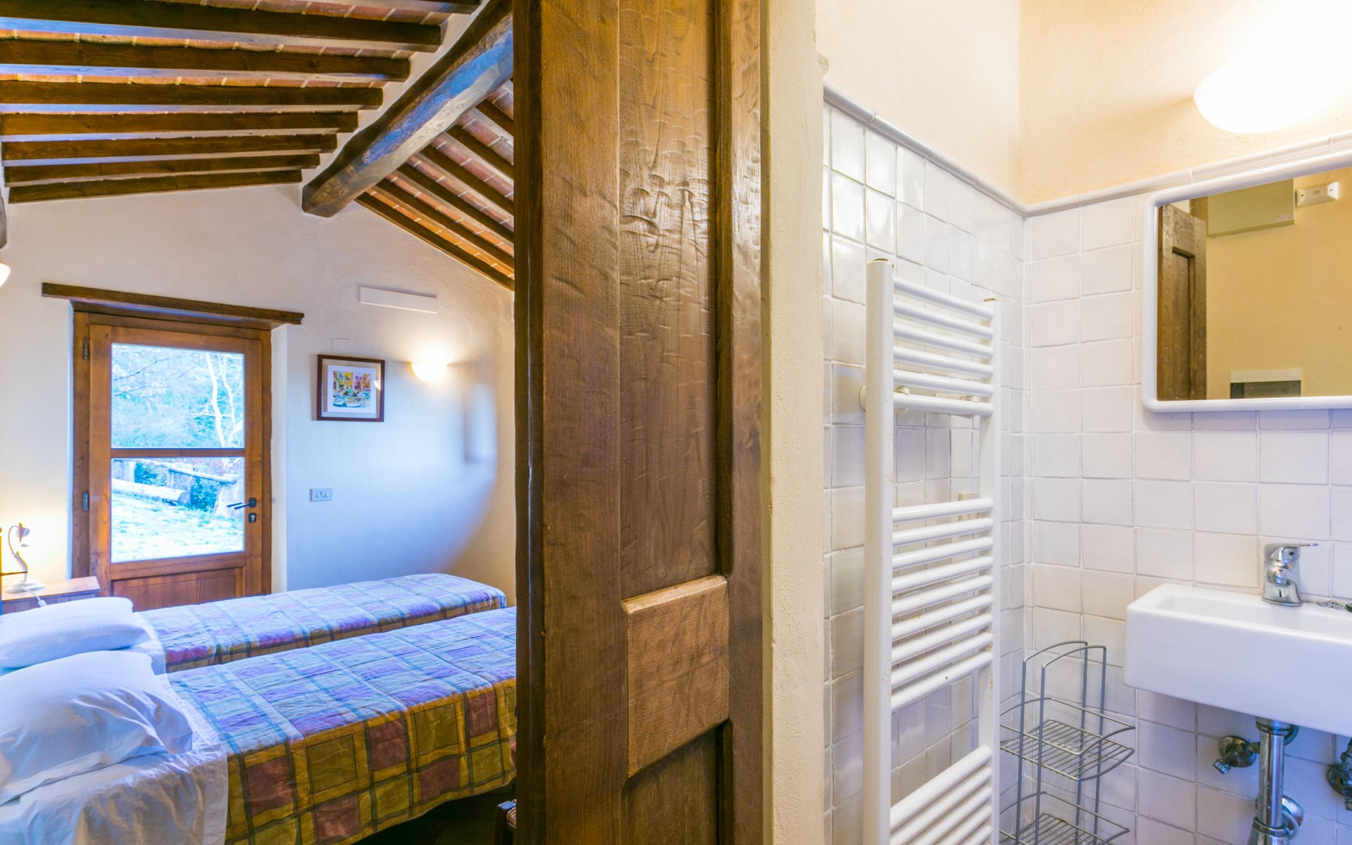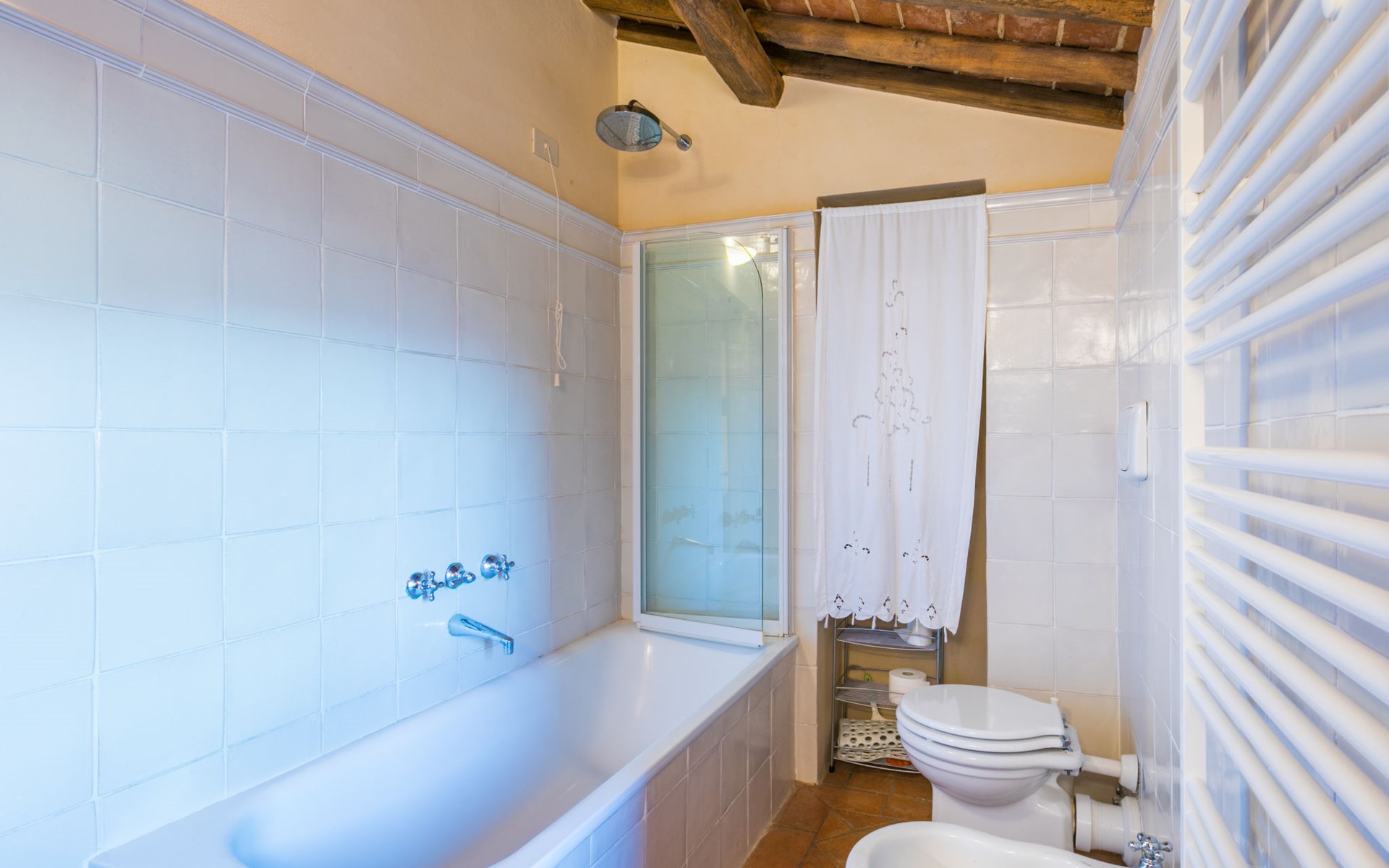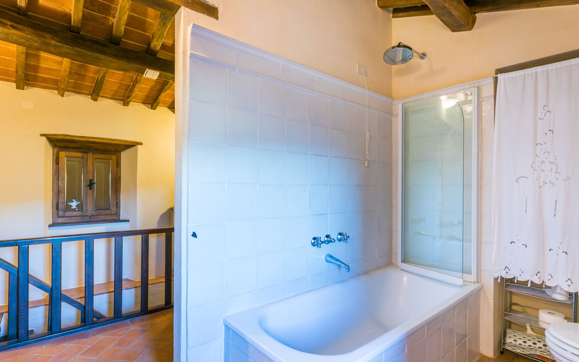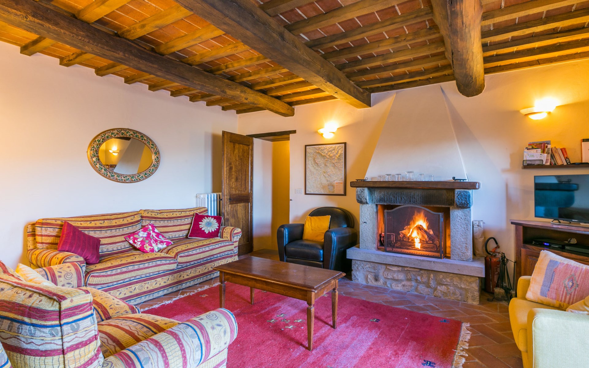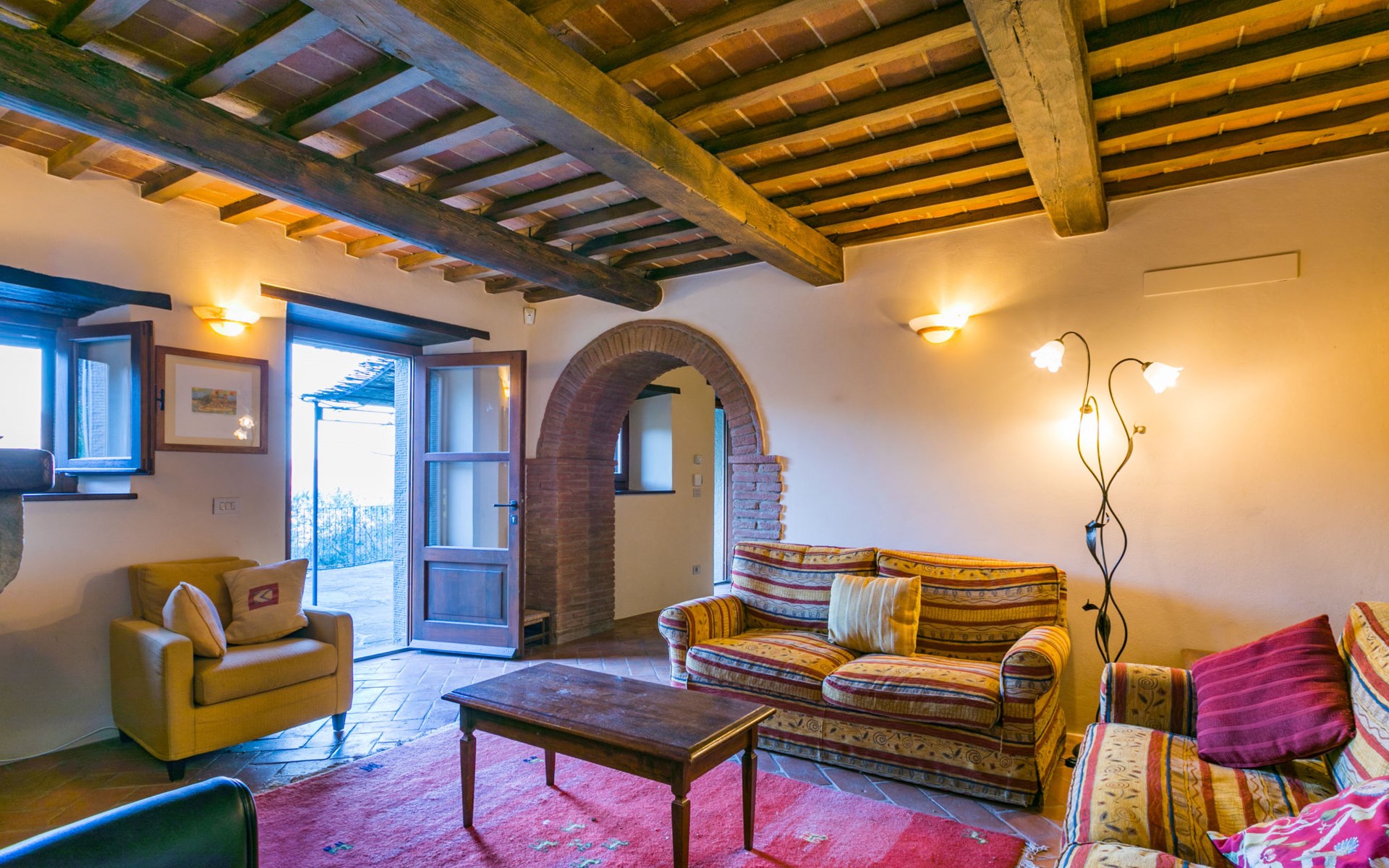 Gezellige rustieke woning "Bramasole", gerenoveerd in 2006, omgeven door bomen. 2 km van het centrum van Cortona, geïsoleerde, verhoogde ligging, 22 km van het meer, op het zuidwesten. Voor alleengebruik: wild terrein 25.000 m2, tuin op verschillende niveaus met bomen, boomgaard. Prieel, terras, tuinmeubelen, barbecue. Smalle toegangsweg (300 m onverharde weg). Parkeerplaats op het terrein. Supermarkt 8 km, restaurant 1.5 km, bar 1.5 km, bushalte 1.8 km, treinstation "Cortona Camucia" 5 km, openluchtzwembad 1 km, meer (zwemmen) "Trasimeno" 22 km. Golfterrein (9 holes) 23 km, tennis 1 km, wandelroutes 100 m vanaf het huis. Attracties in de buurt: Arezzo 35 km, Montepulciano 35 km, Pienza 52 km, Perugia 55 km, Assisi 73 m. Baby uitrusting (incl.). Het objekt is geschikt voor 6 volwassenen groepen jongeren uitsluitend op aanvraag.