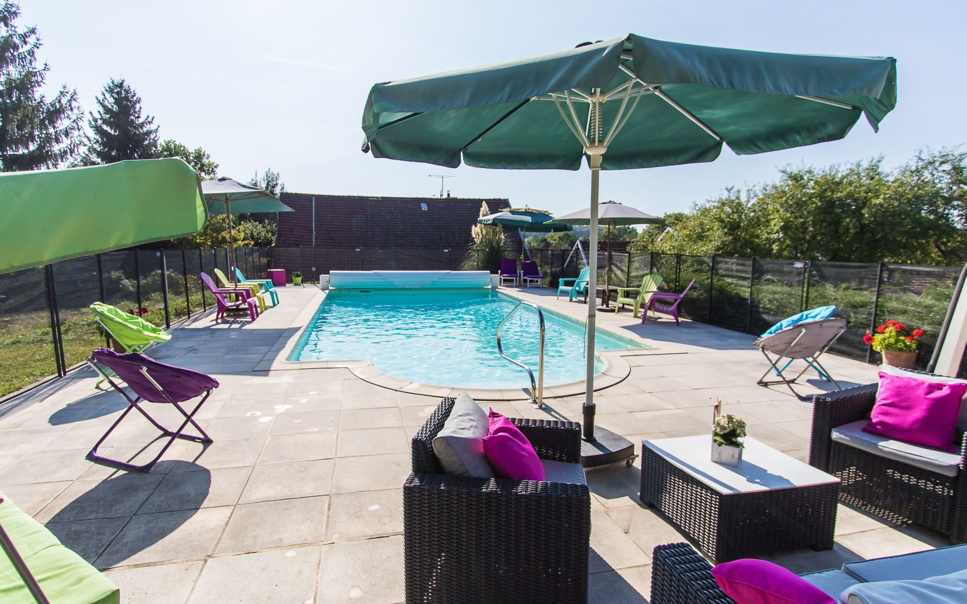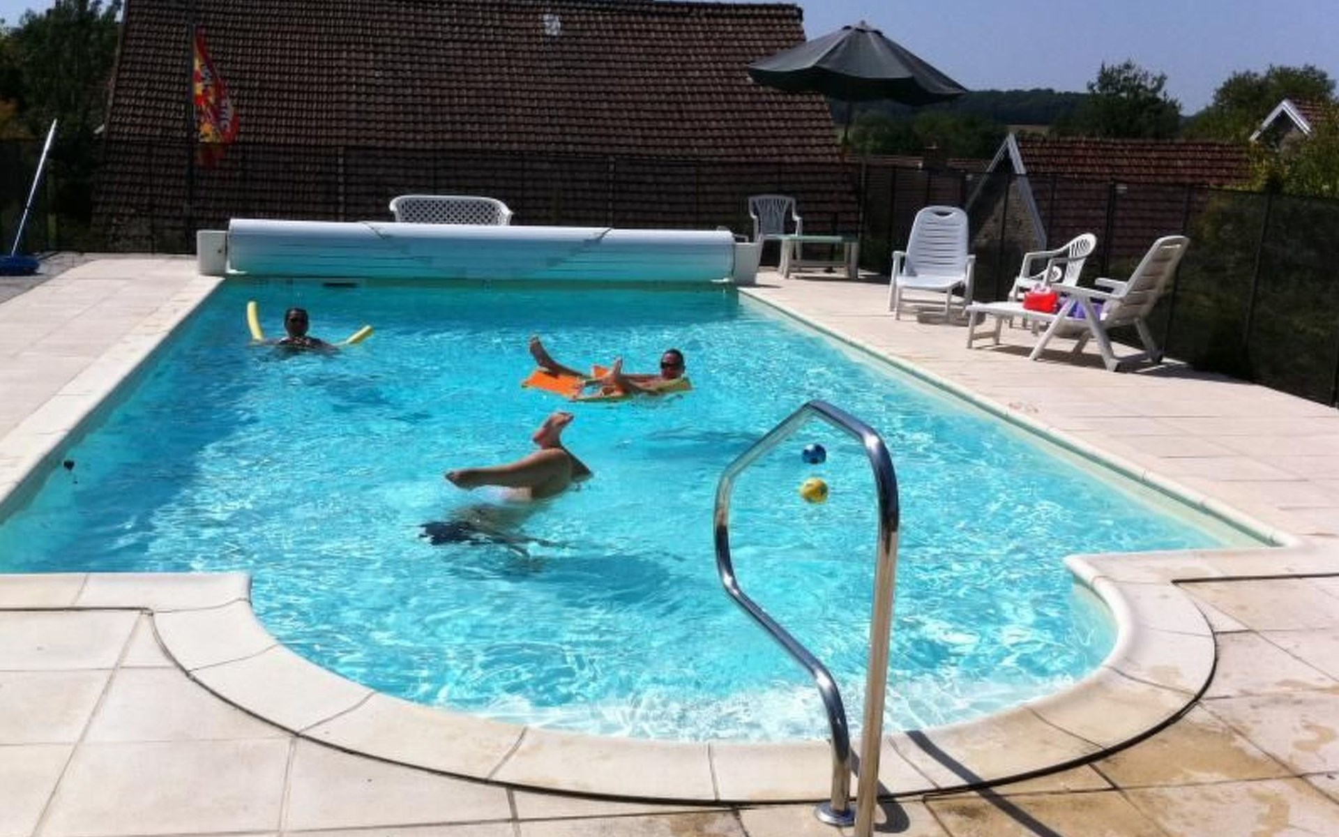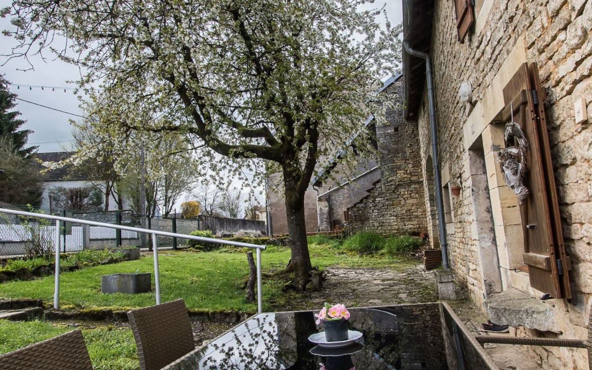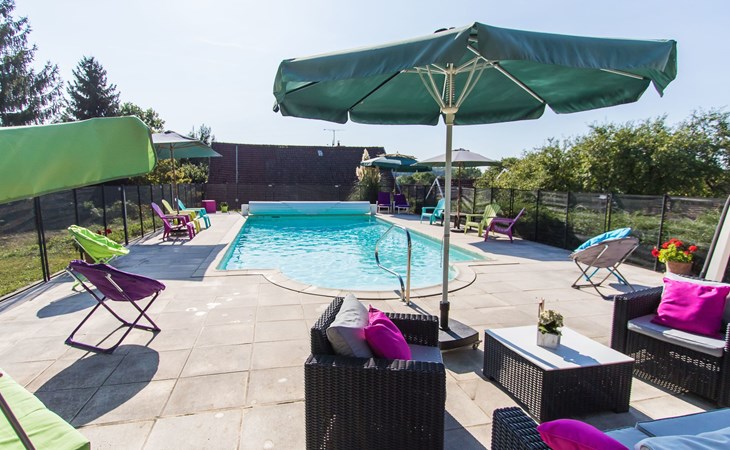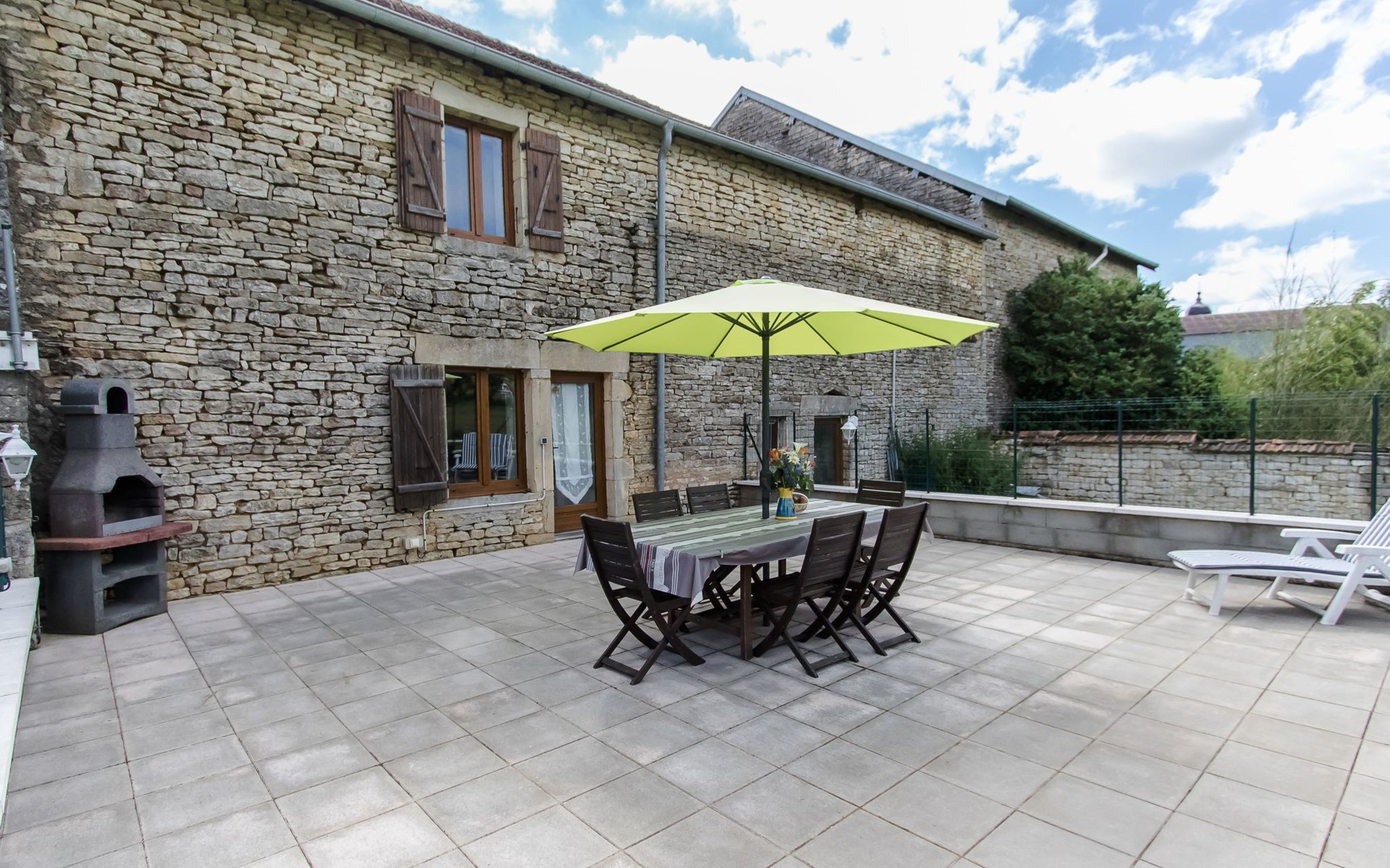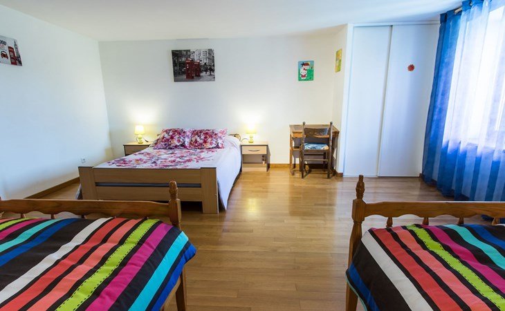 The house, decorated with three stars and three Wallonian Ears, is centrally located in the small town of Brotte-lès-Ray in the Franche-Comté. It is surrounded by meadows and forests where you can enjoy long walks and go mushrooming. It is an ideal property for nature lovers and families with children, who will get enjoyment out of the playground on the property. Pets are welcome and will love the opportunity for long walks.Outside, there is a 50 m² sunny patio, furnished with wooden outdoor furniture, two lawn chairs and a barbecue. Enjoy the beautiful views over the surrounding fields and meadows from your patio. The 10 x 5 m community pool is shared with the owner (two adults), who live across from the holiday home. The pool is available from May 1st through September 30th. It is heated to a comfortable temperature of 27 °C. The kids will enjoy the playground with a trampoline, a ping pong table and toys. Since the property, as well as the patio is enclosed, this house is ideal for families with children and/or pets. At the front of the house you will find an enclosed yard with a lawn and two parking spots.The detached 150 m² stone house, which offers a community pool, can accommodate up to six people. Upon request, 4 additional guests can be accommodated on two sofa beds. The house can be heated centrally from the ground floor with either the wood burning stove or an electric heater. This is also where the dining room with a large dining table is situated. Additionally, you will find a 27 m² living room with two sofa beds that can accommodate two and a half people each, two recliner chairs, a TV (TNT), a DVD player and a telephone (provider: orange). From here you have access to the furnished patio. The kitchen is furnished with modern equipment, such as, a stove, a microwave, a dishwasher, a refrigerator, a freezer, a coffee maker, a kettle, a raclette and a fondue set. The bathroom boasts two sinks, a shower and a hair dryer. An iron and an ironing board are also available. The toilet is separate. The two bedrooms are located on the top floor. One of the bedrooms is furnished with a double bed (1.40x1.90m), a child's cot (1.40x70m), as well as wardrobes and a wall mirror. The second bedroom is furnished with a double (1.40x1.90m) and two single (1.90x0.90m) beds, as well as wardrobes and a desk.The vicinity offers wonderful opportunities for extended walks in the gorgeous landscape. The river Vannon, which runs past the house, offers fishing opportunities. There is also an 18th century chapel with a well and a washhouse. It is six kilometres to the nearest supermarket and two kilometres to the nearest restaurants.Mountain bikes are available upon request (until end of 2020). If the weather is poor, the owner offers beginner's courses in fabric painting or does other crafts with the children (until end of 2020). Internet via WLAN is available throughout the house. FR2023BFC