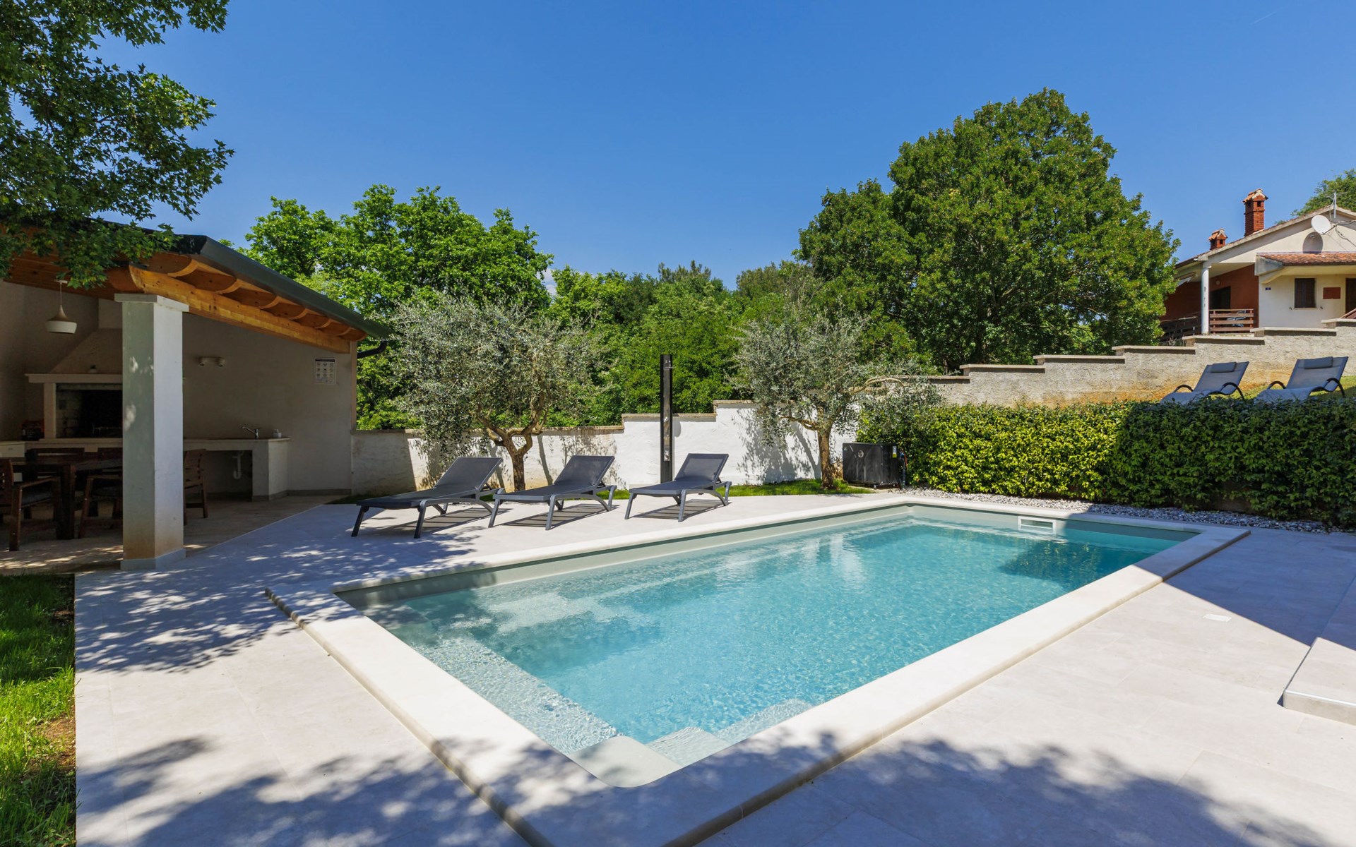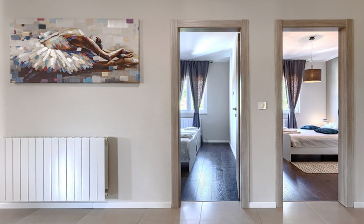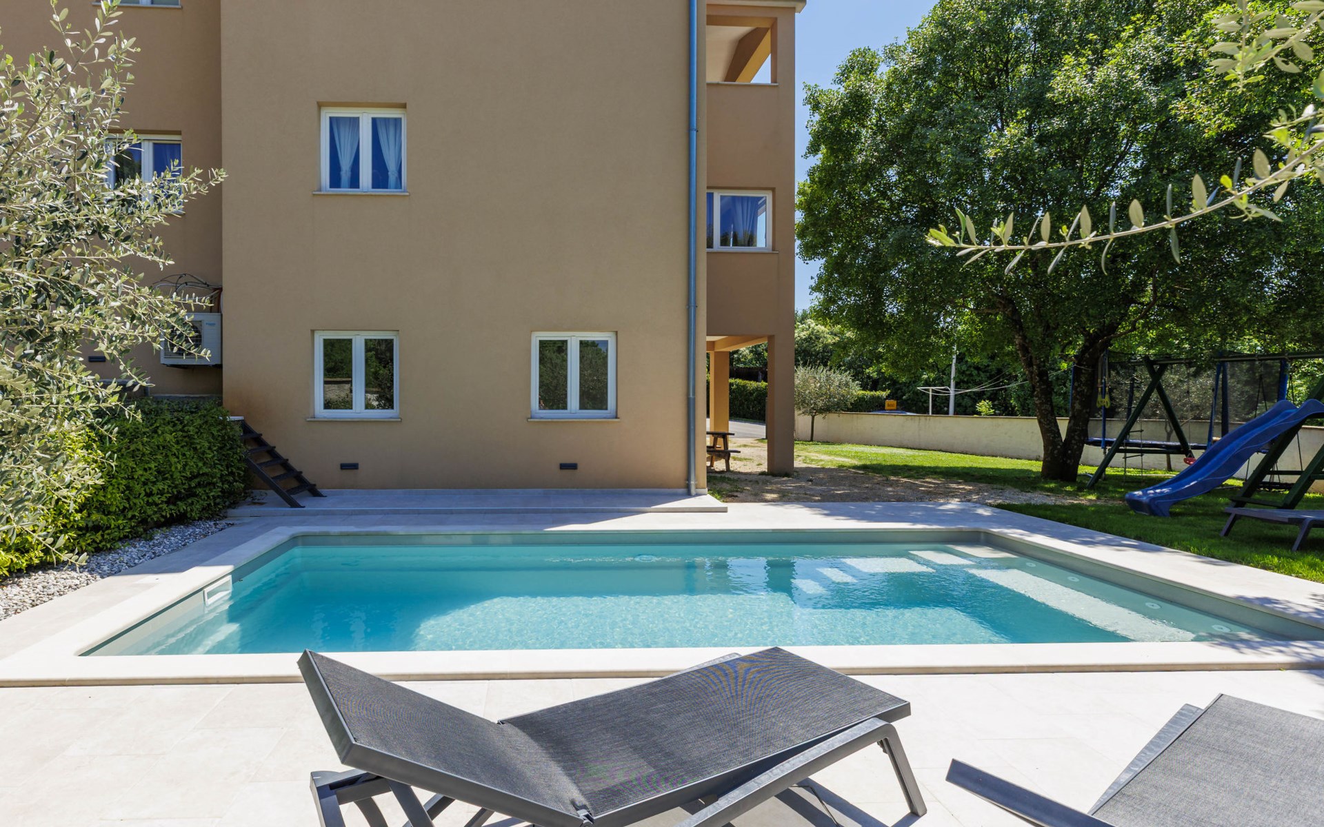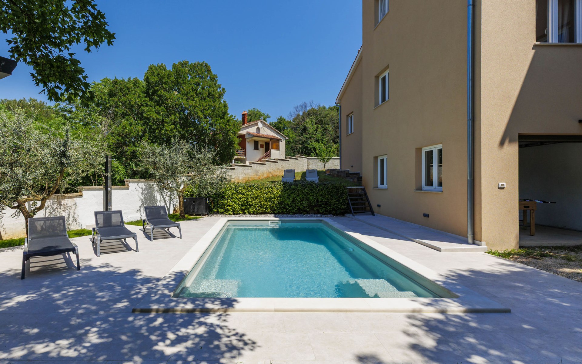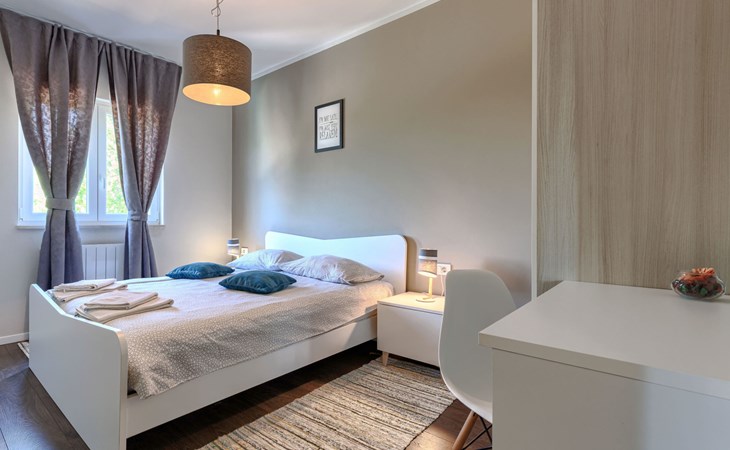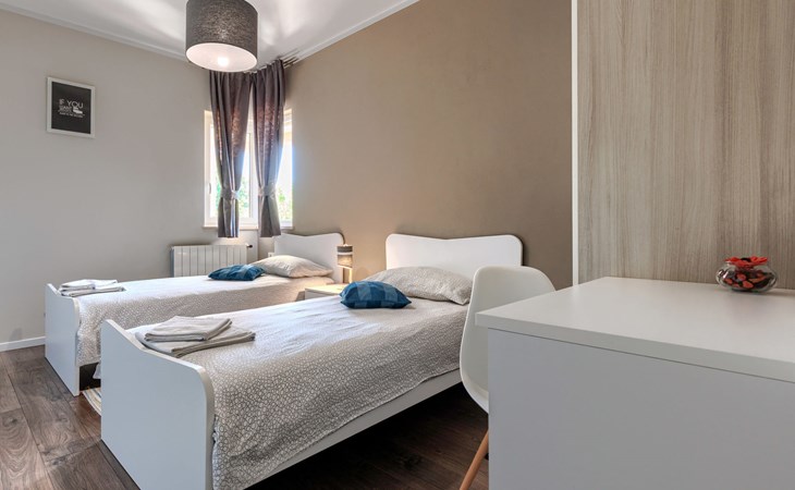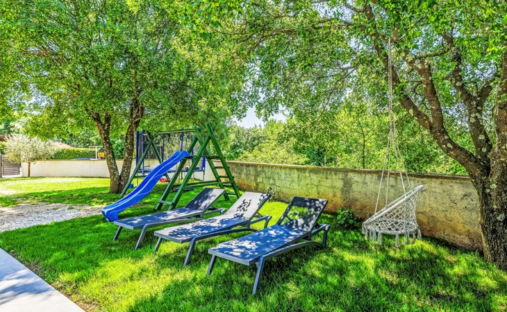 Krnica 22 km van Pula: Huis met 2 woningen "Ana". In het gehucht Beloći, 7 km van het centrum van Krnica, 7 km van het centrum van Barban, 26 km van het centrum van Rabac, rustige, zonnige ligging, 4 km van zee, 4 km van het strand. Voor medegebruik: terrein 800 m2 (omheind), tuin met gazon en planten. Voor alleengebruik: openluchtzwembad hoekig, verwarmd (7 x 4 m, 140 cm diepte, seizoensgebonden beschikbaarheid: 01.Apr. - 01.Nov.) met trap en zout-elektrolyse. Buitendouche, terras (20 m2), tuinmeubelen, barbecue (glijbaan, schommel), onderhoud zwembad door de eigenaar/tuinman. In het huis: internetaansluiting, trampoline, bergruimte voor fietsen. Beschikbaar: fietsen (4). Parkeerplaats bij het huis op het terrein. Oplaadstation. Winkel 2 km, supermarkt 7 km, restaurant 3 km, bushalte 1.4 km, kiezelstrand 4 km, rotsstrand 4 km, strandbad 16 km. Manege 500 m, wandelroutes 50 m vanaf het huis, fietspad 100 m. Attracties in de buurt: Amusement park 6 km. Vliegveld 20 km van het huis. Voor medegebruik: trampoline, fietsen (4), bergruimte voor fietsen. De huiseigenaar adviseert over excursies (op aanvraag, extra). Zwembad verwarmd (tegen betaling). Als er zwembad verwarming nodig is, is het noodzakelijk om dit 7 dagen van te voren aan te geven.